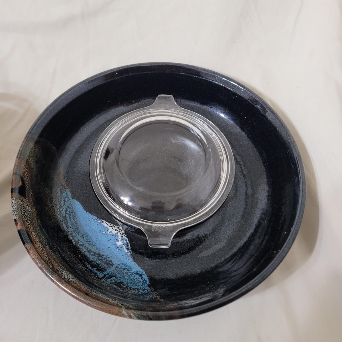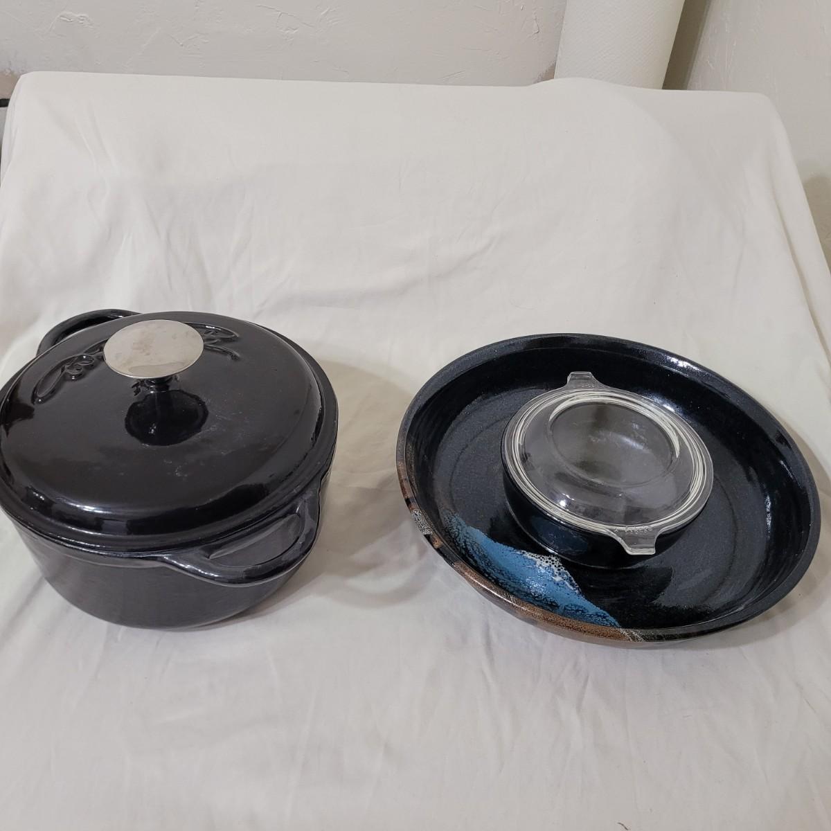 8" Wolfgang Puck Dutch oven and glazed ceramic chips and salsa serving platter