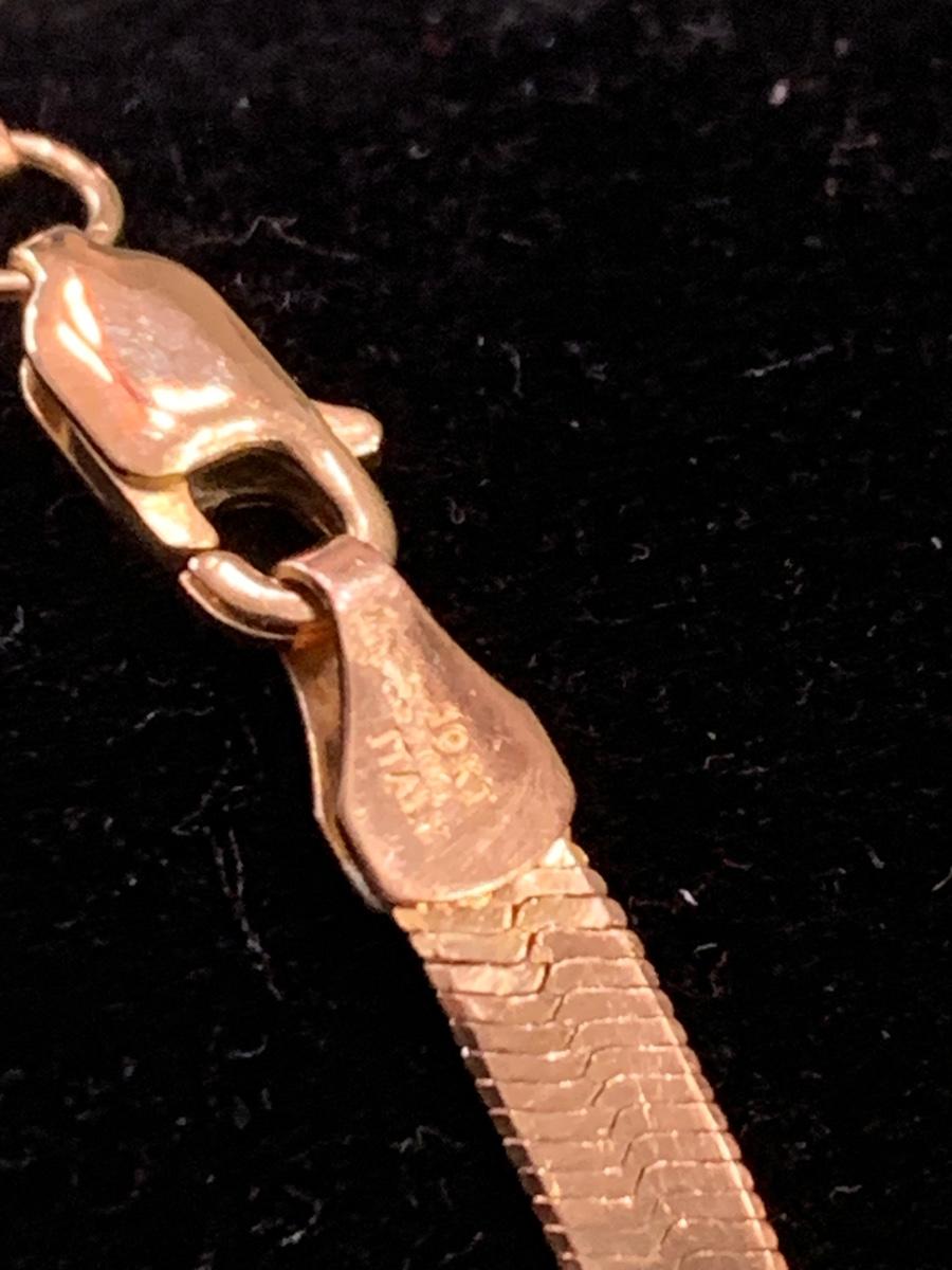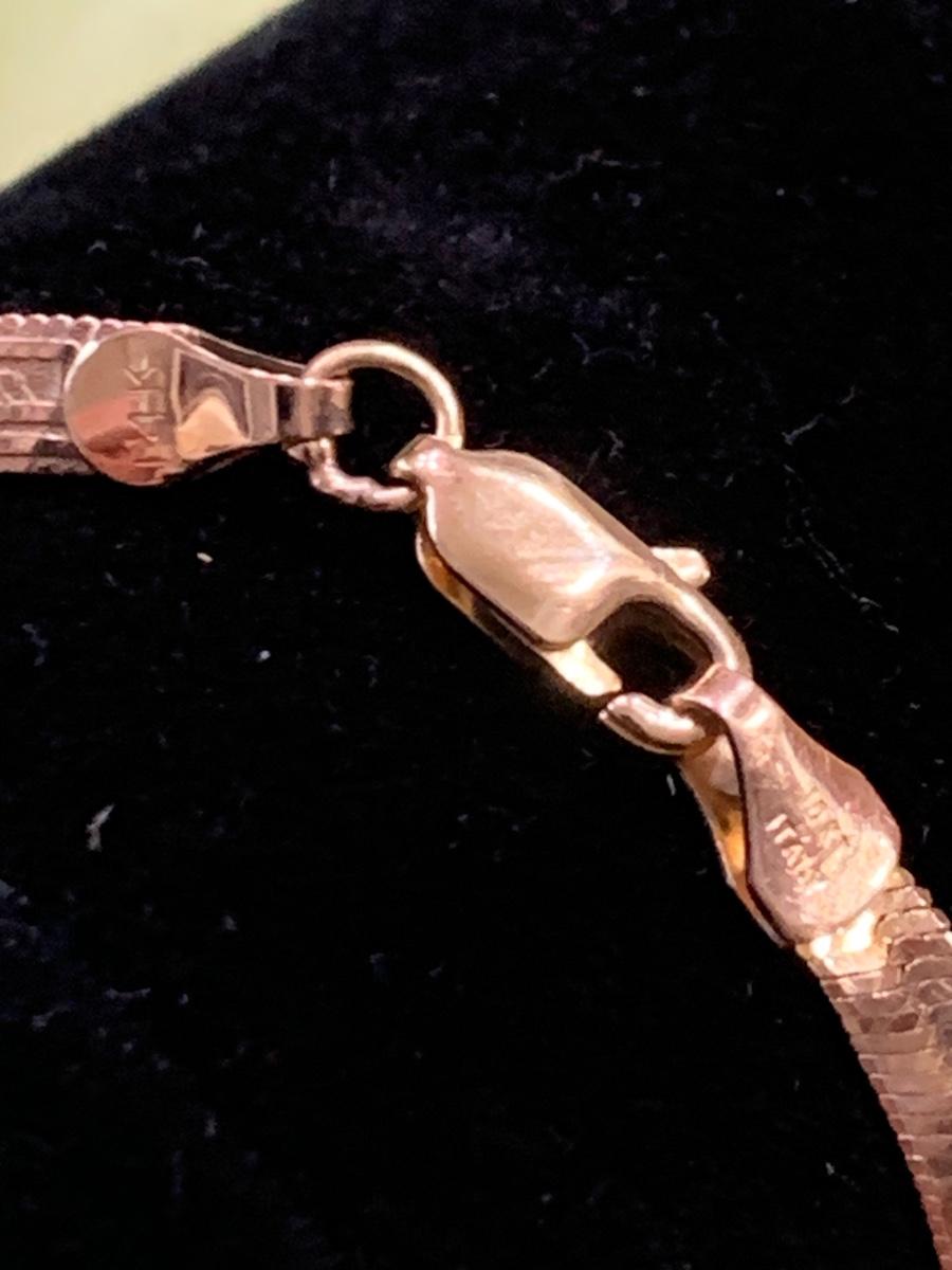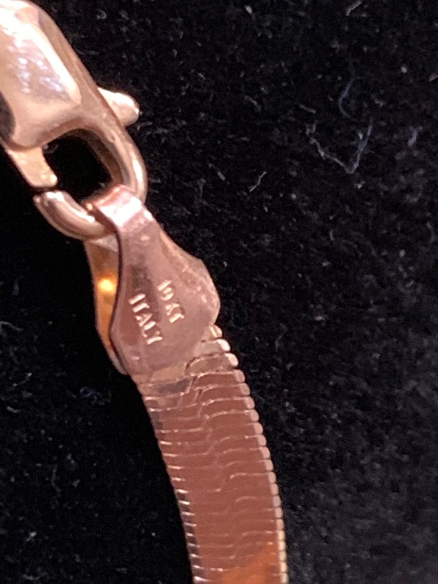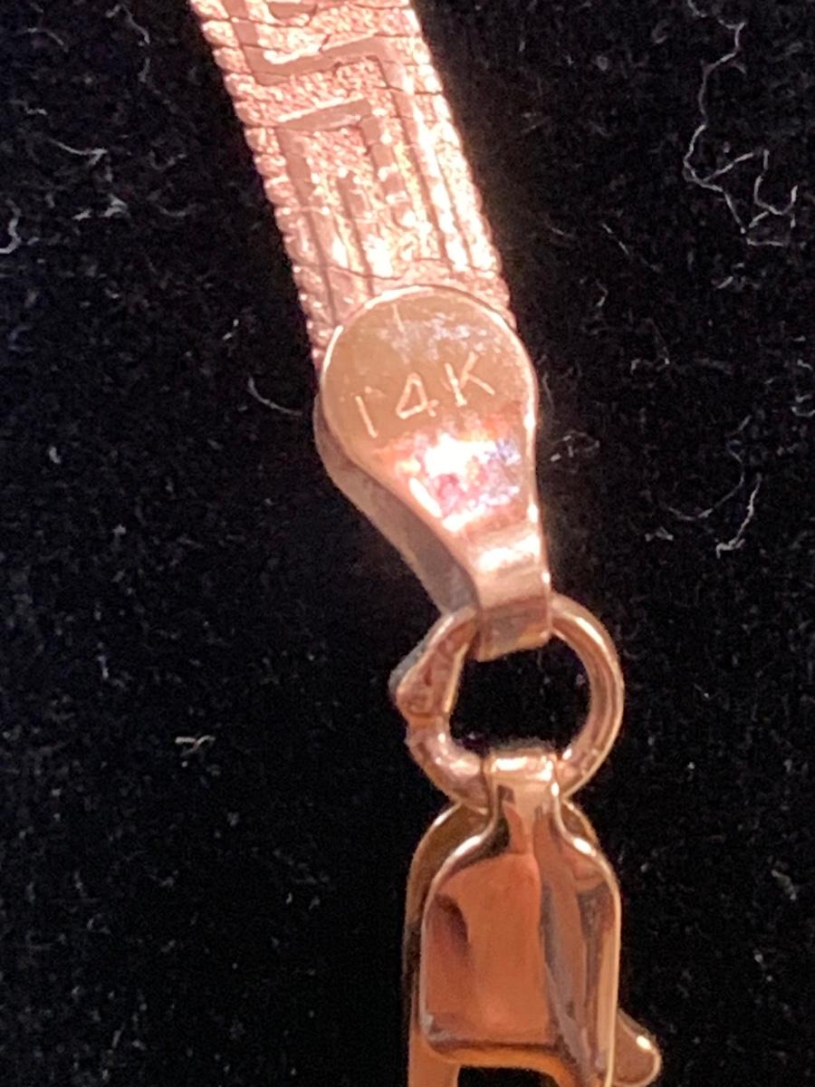 Bracelet tests as 14k yet one of the clasps is stamped 10k (probably a small repair? ). All other marks are 14k. See many photos.