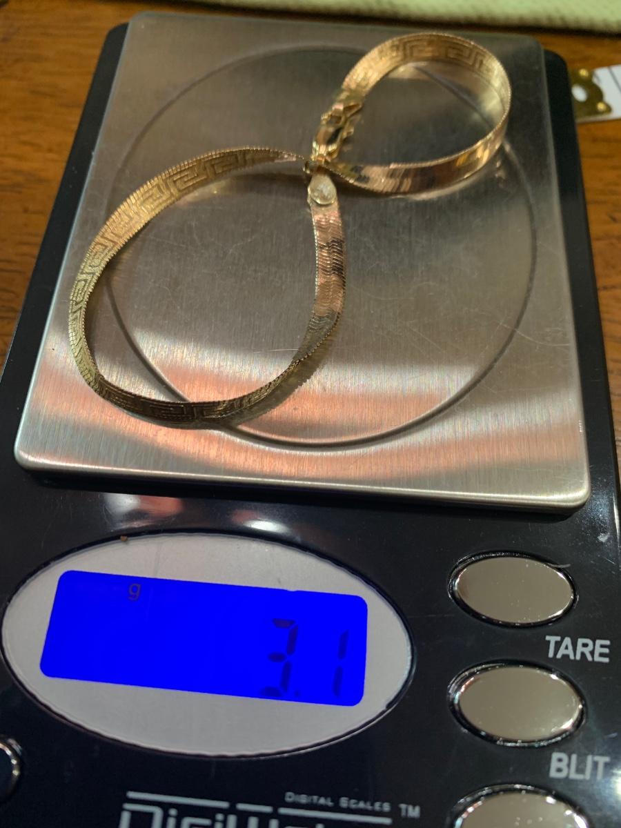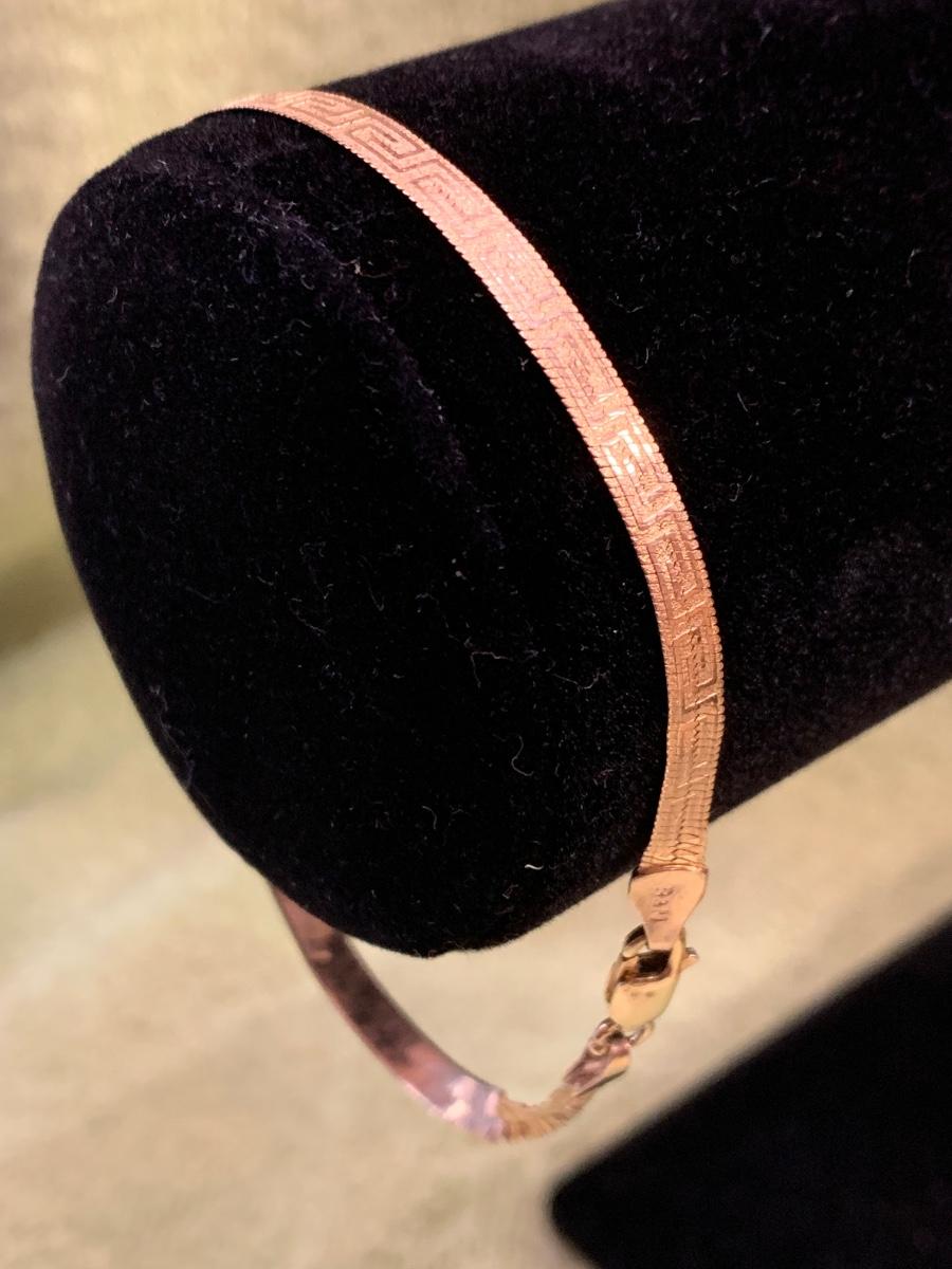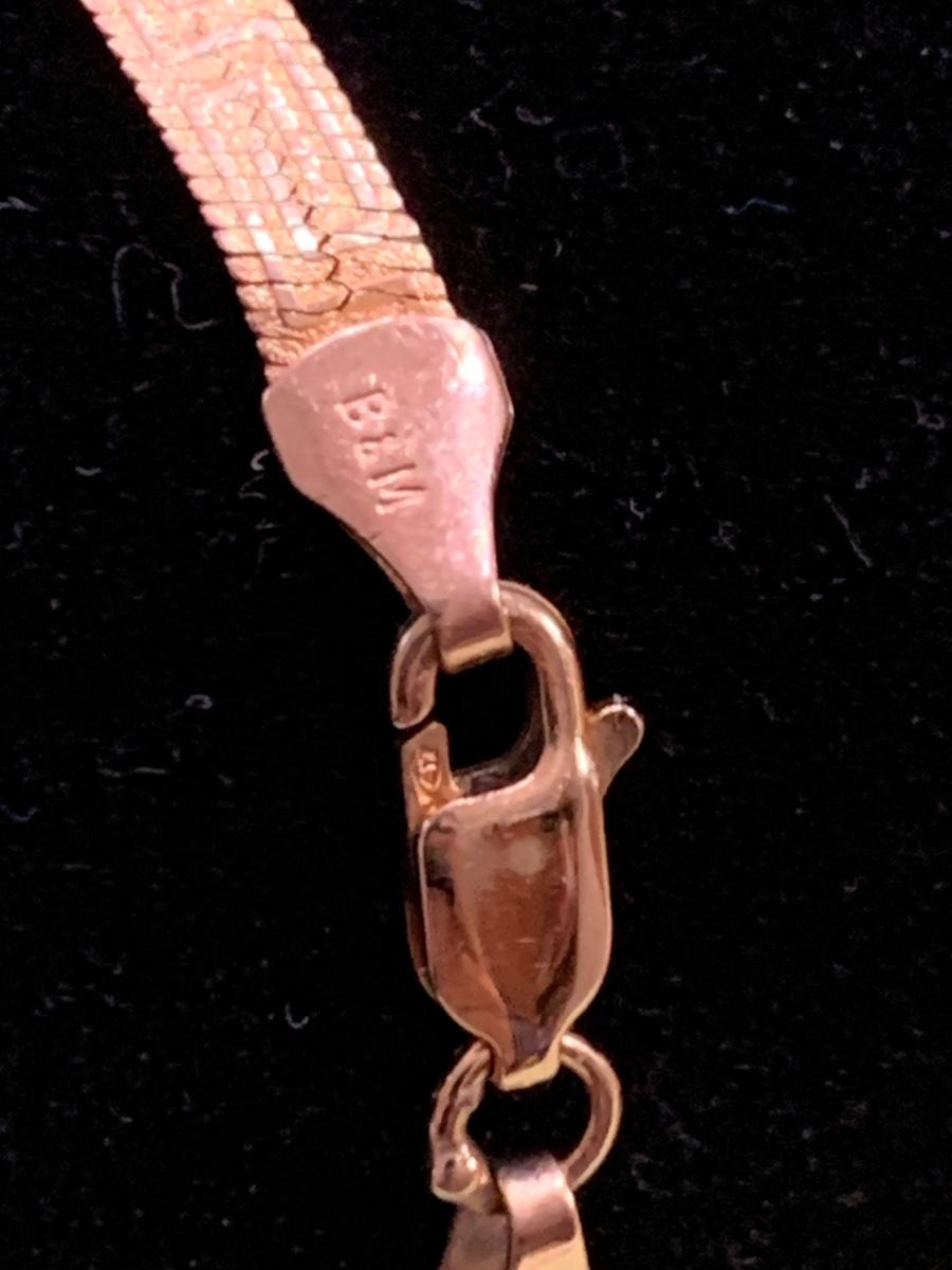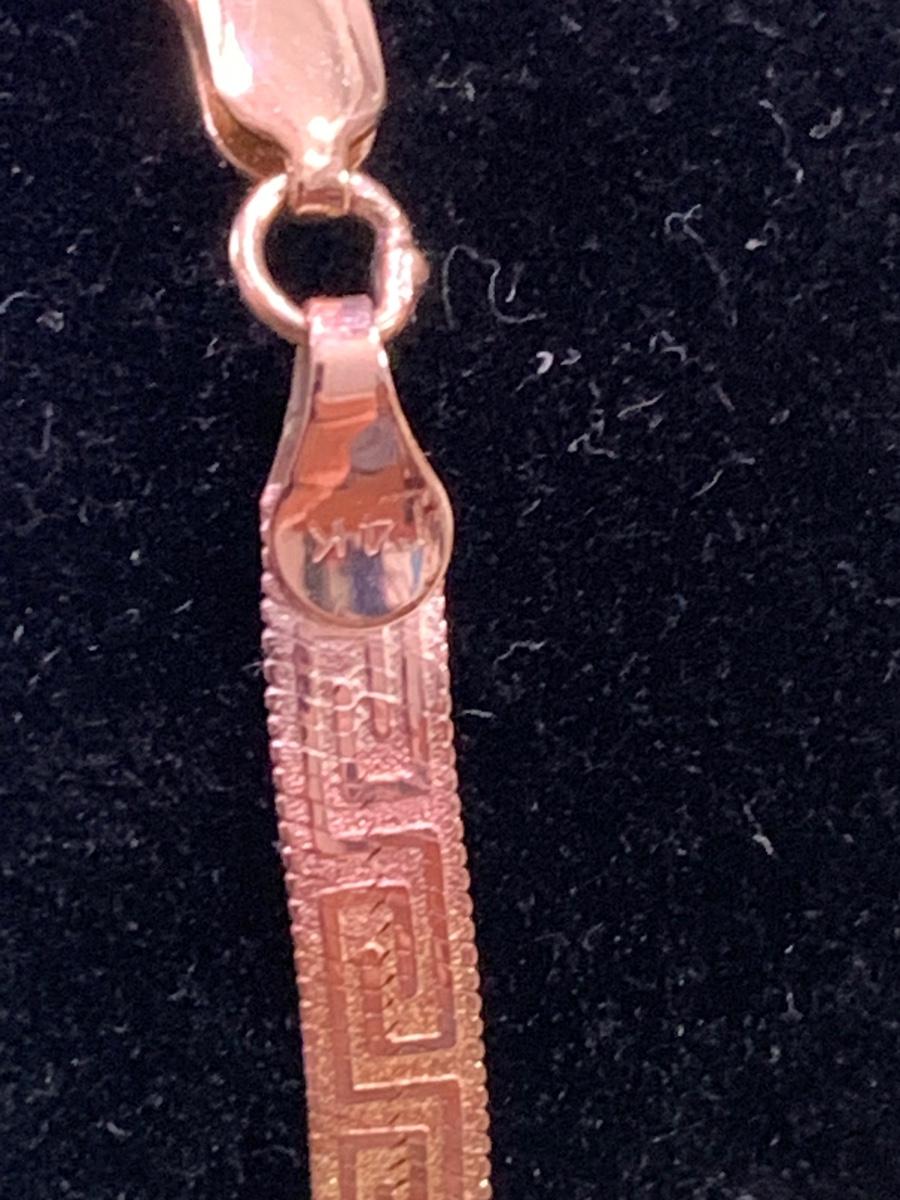 Bracelet tests as 14k yet one of the clasps is stamped 10k (probably a small repair? ). All other marks are 14k. See many photos.