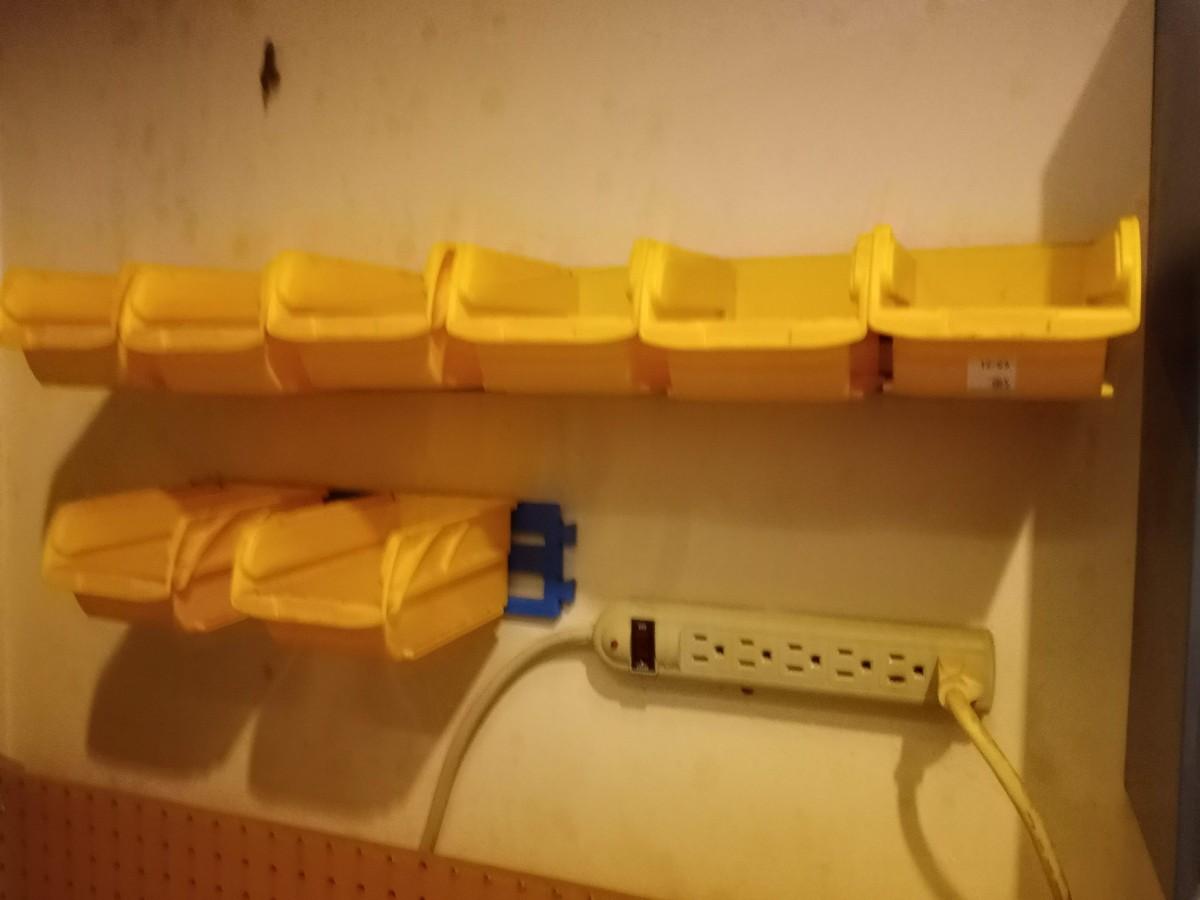 8 yellow storage bins