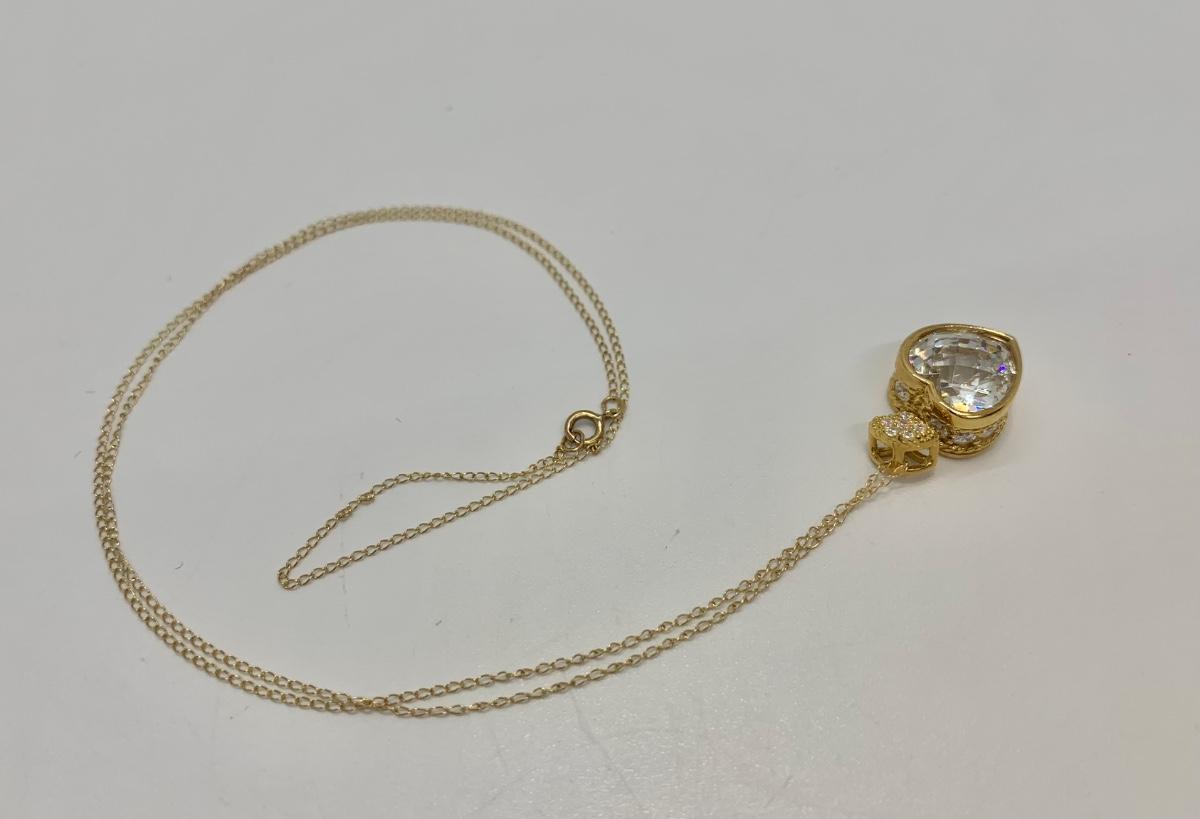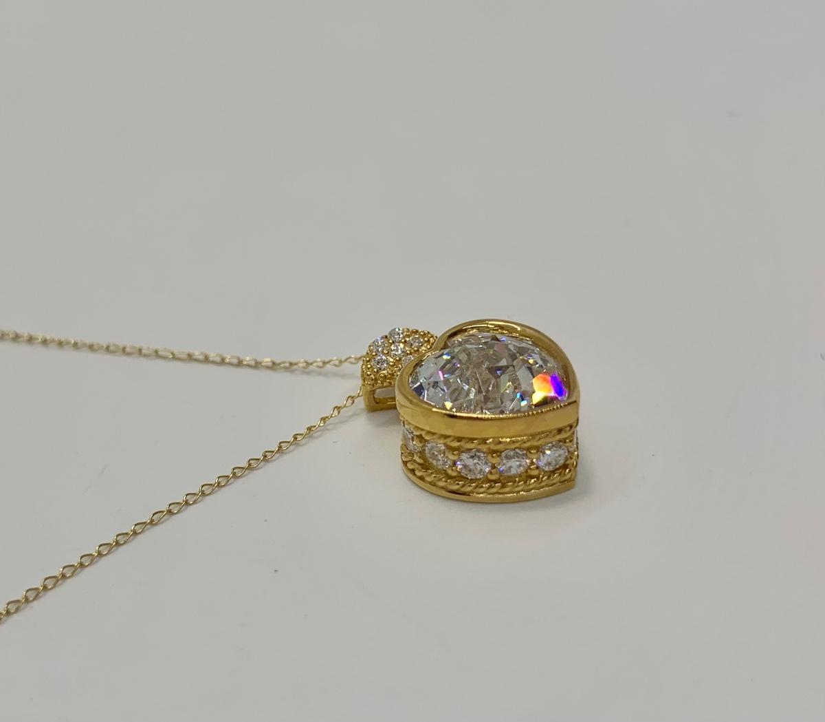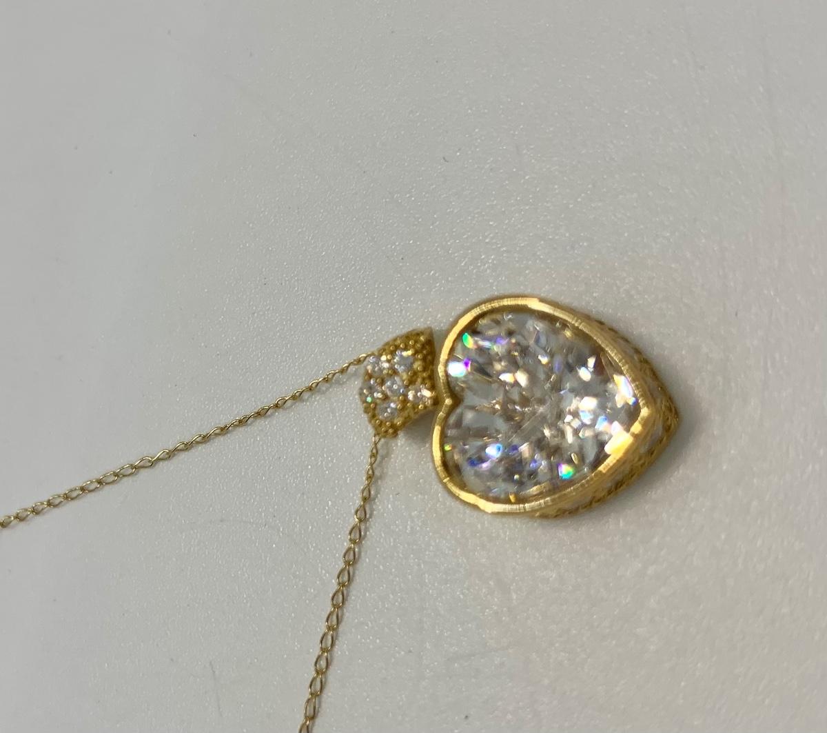 80: 14K HJS CZ Beautiful crystal heart pendant on 14K chain
