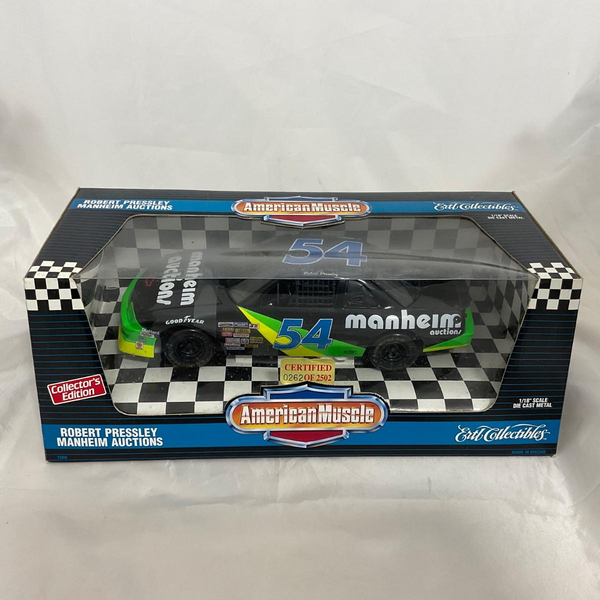 One NASCAR die cast 1:18 scale Manheim Robert Pressley in box. Please see photos for details and condition. ::: Shipping is available on this lot. If you require shipping you must let us know at the close of the auction. We will coordinate with you after the item has been won. Shipping fees will include insurance up to or exceeding the value of all items being mailed. If you have any questions regarding this lot please contact the auctioneer either via this website, by direct email or by phone. PICK UP TIMES and other important information can be found in the TERMS and DESCRIPTION of the auction. Please take a look for pertinent information. Thanks!