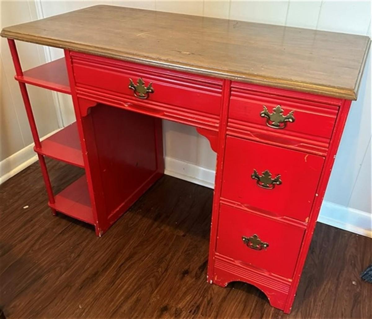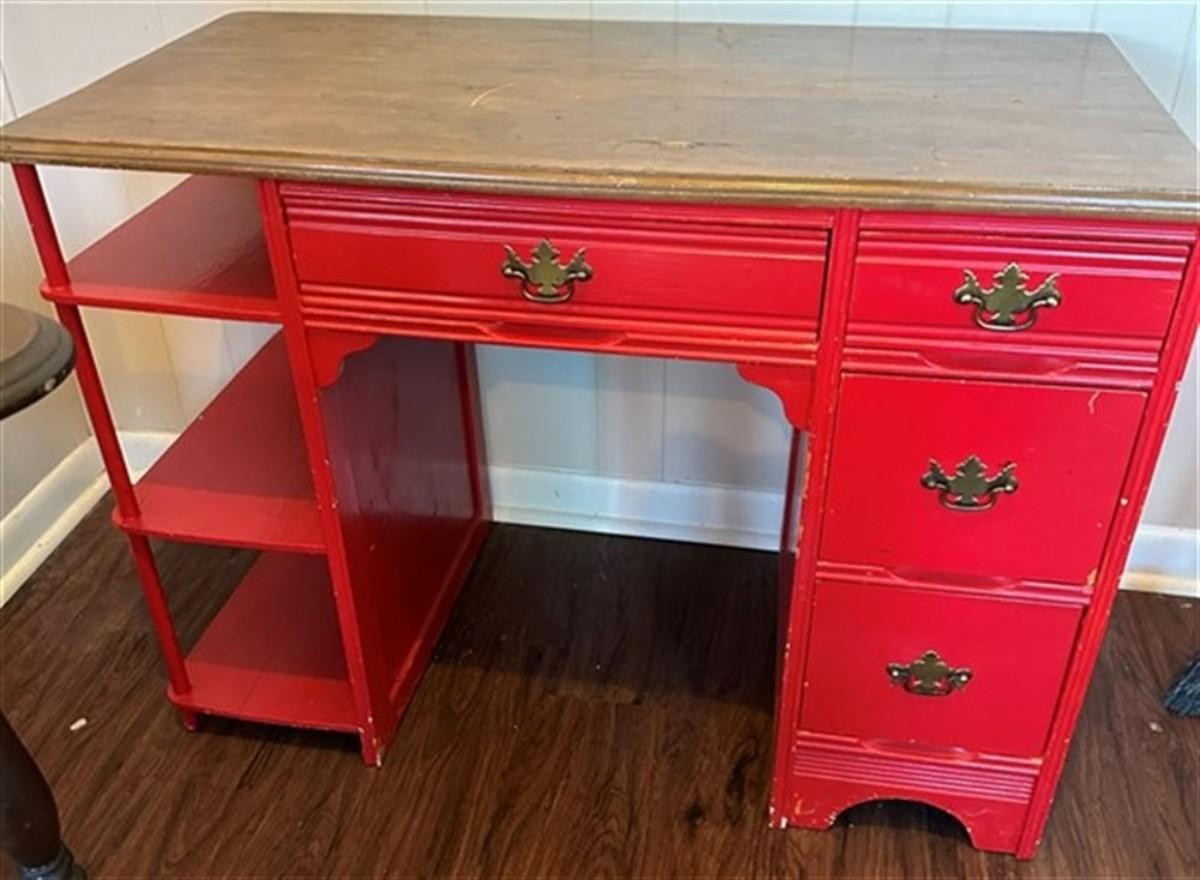 80 Red Student Desk w/Side Shelves