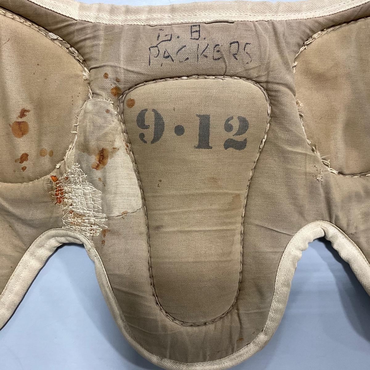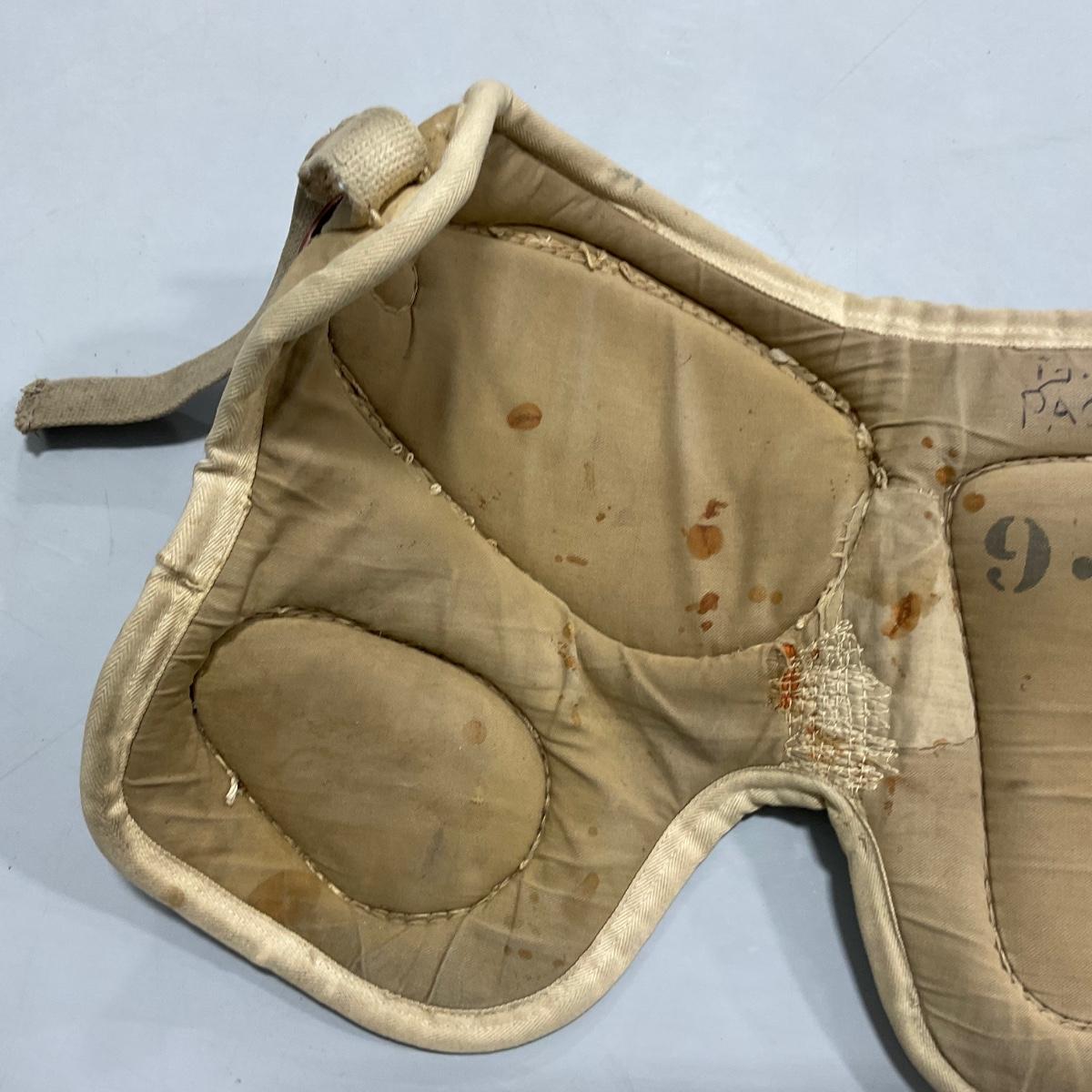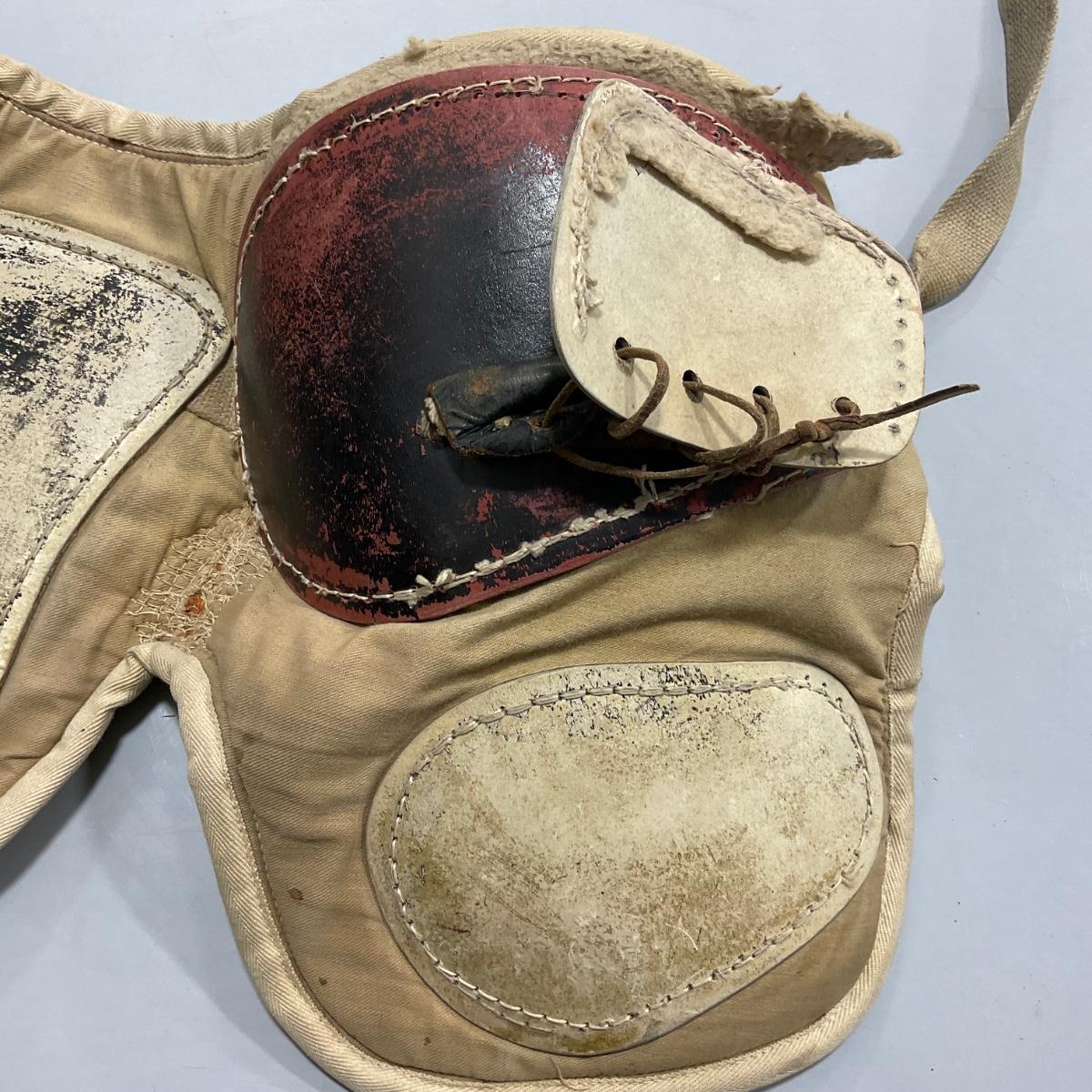 One 1940’s football hip pads, well worn. Please see photos for details and condition. ::: Shipping is available on this lot. If you require shipping you must let us know at the close of the auction. We will coordinate with you after the item has been won. Shipping fees will include insurance up to or exceeding the value of all items being mailed. If you have any questions regarding this lot please contact the auctioneer either via this website, by direct email or by phone. PICK UP TIMES and other important information can be found in the TERMS and DESCRIPTION of the auction. Please take a look for pertinent information. Thanks!