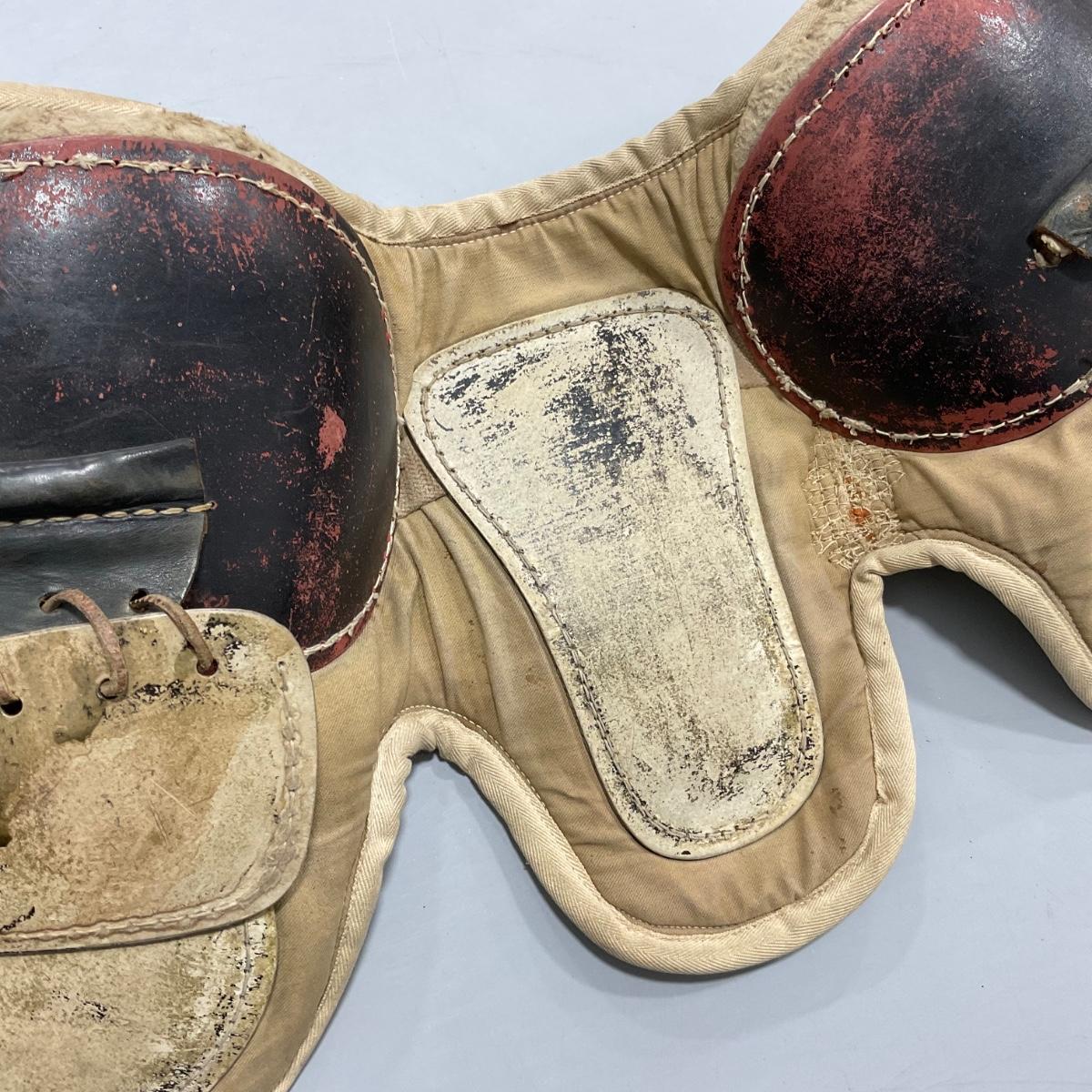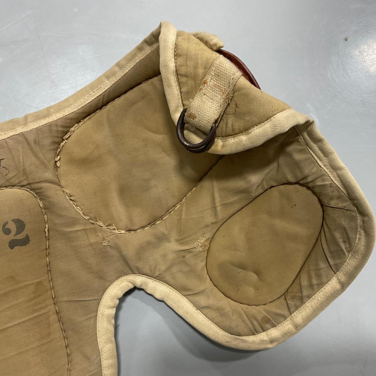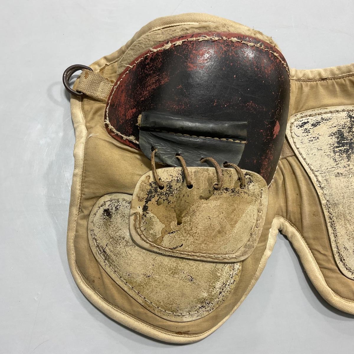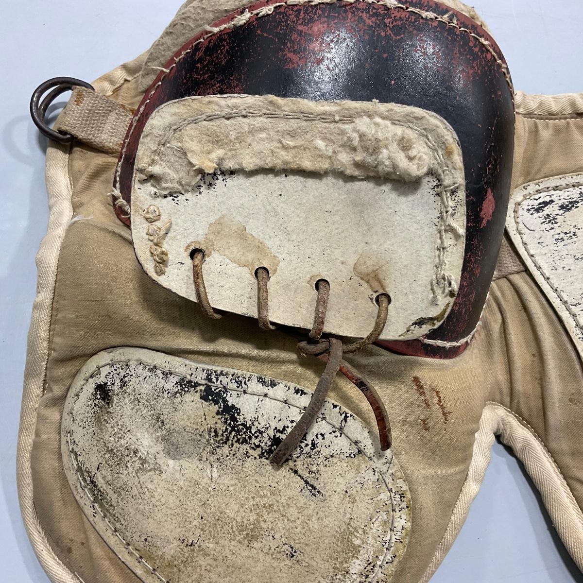 One 1940’s football hip pads, well worn. Please see photos for details and condition. ::: Shipping is available on this lot. If you require shipping you must let us know at the close of the auction. We will coordinate with you after the item has been won. Shipping fees will include insurance up to or exceeding the value of all items being mailed. If you have any questions regarding this lot please contact the auctioneer either via this website, by direct email or by phone. PICK UP TIMES and other important information can be found in the TERMS and DESCRIPTION of the auction. Please take a look for pertinent information. Thanks!