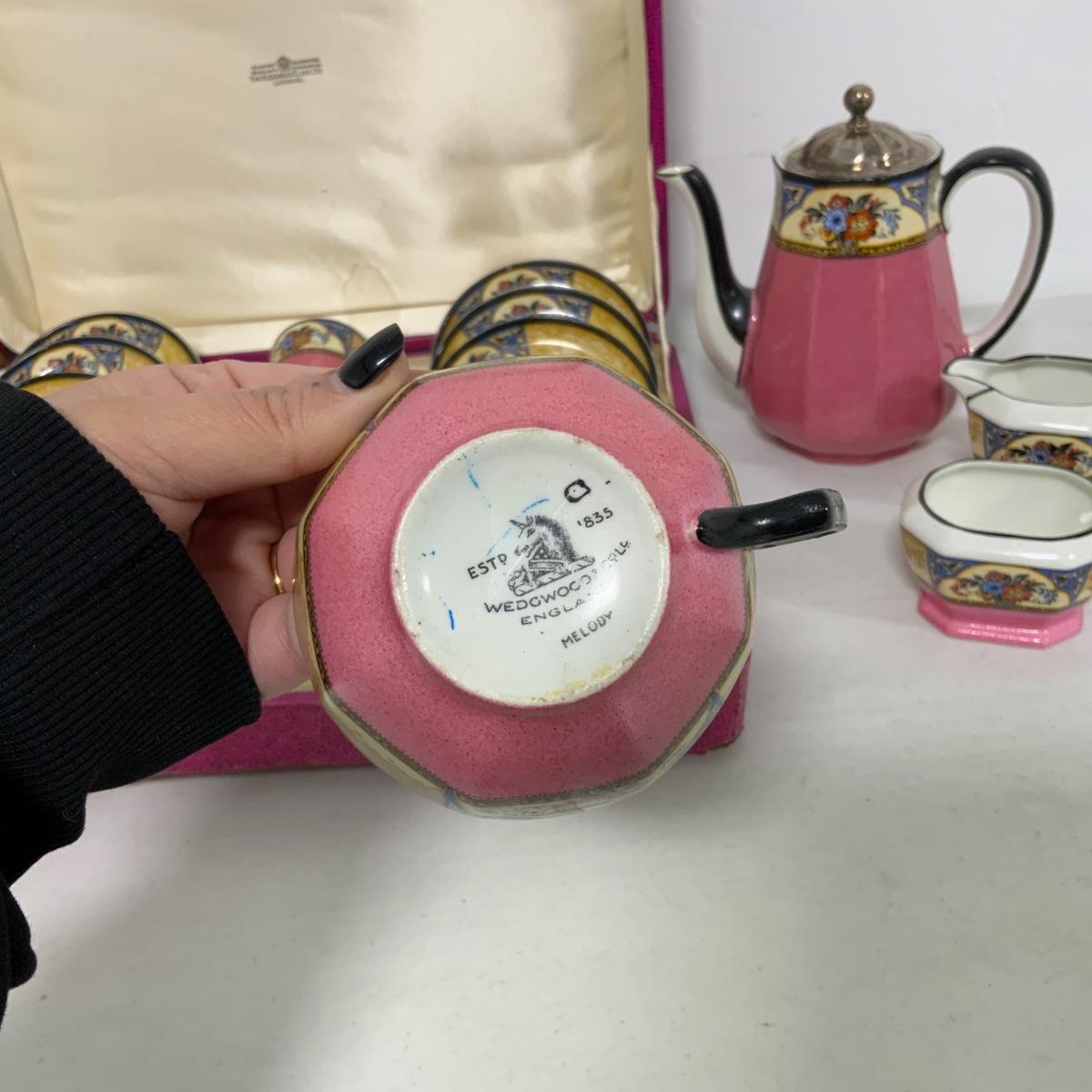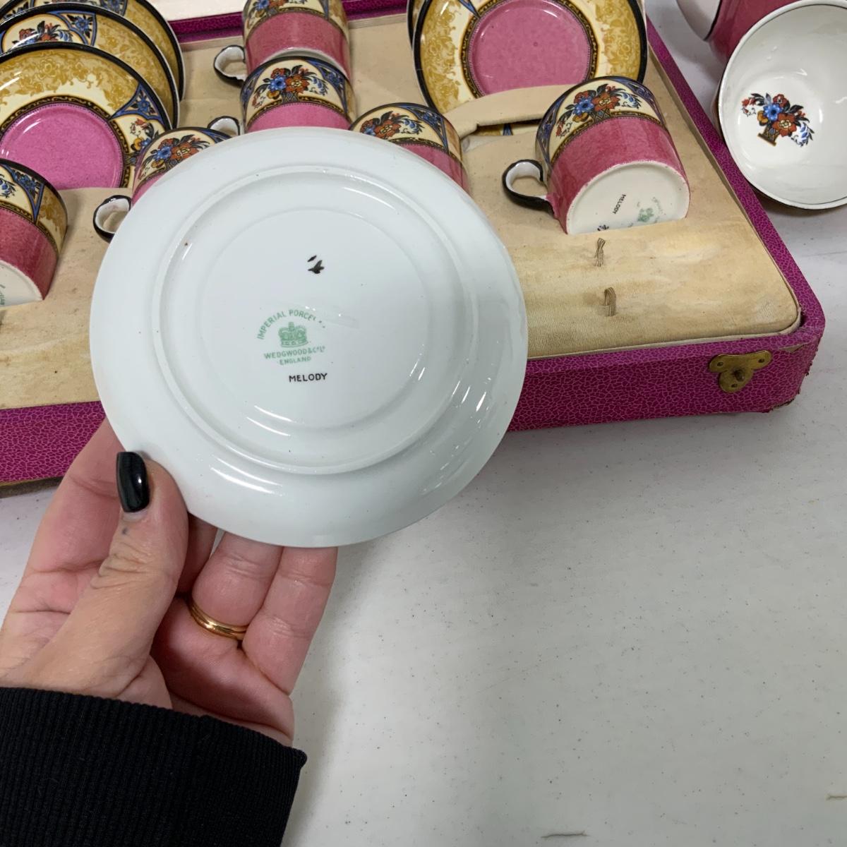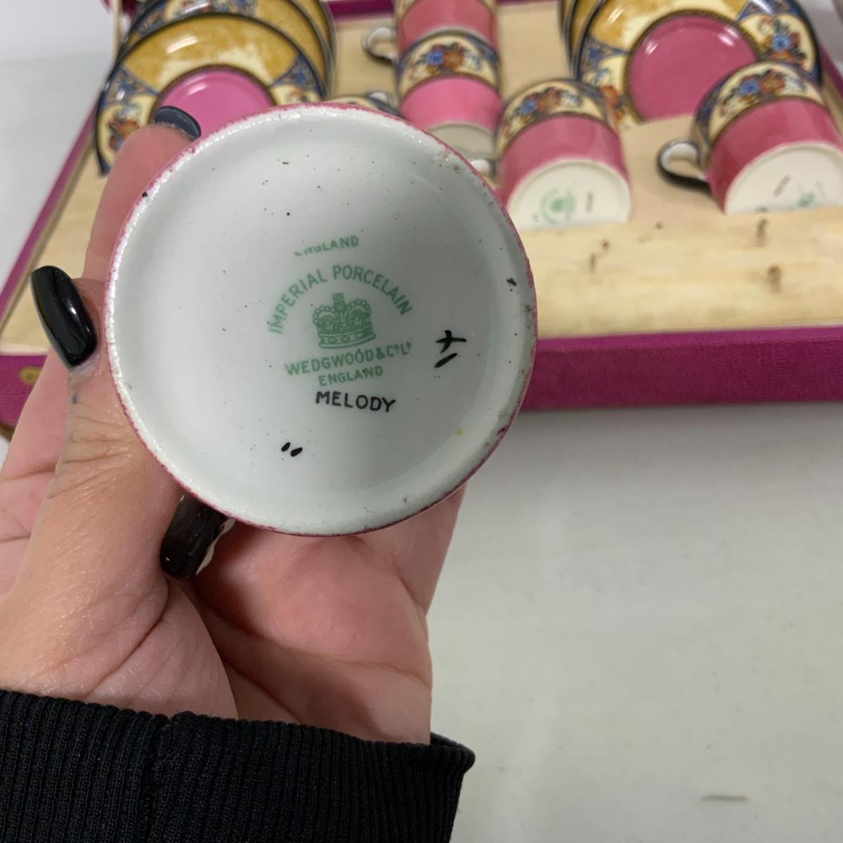 From the Estate of Peter and Alice Radovanovich: Wedgwood Pink Melody Teaset. Box is in poor condition, but the cups and saucers inside are great. Teapot and accessory pieces on the side are nice too. Please see photos for details and condition. ::: Shipping is NOT available on this lot. If you have any questions regarding this lot please contact the auctioneer either via this website, by direct email or by phone. PICK UP TIMES and other important information can be found in the TERMS and DESCRIPTION of the auction. Please take a look for pertinent information. Thanks!