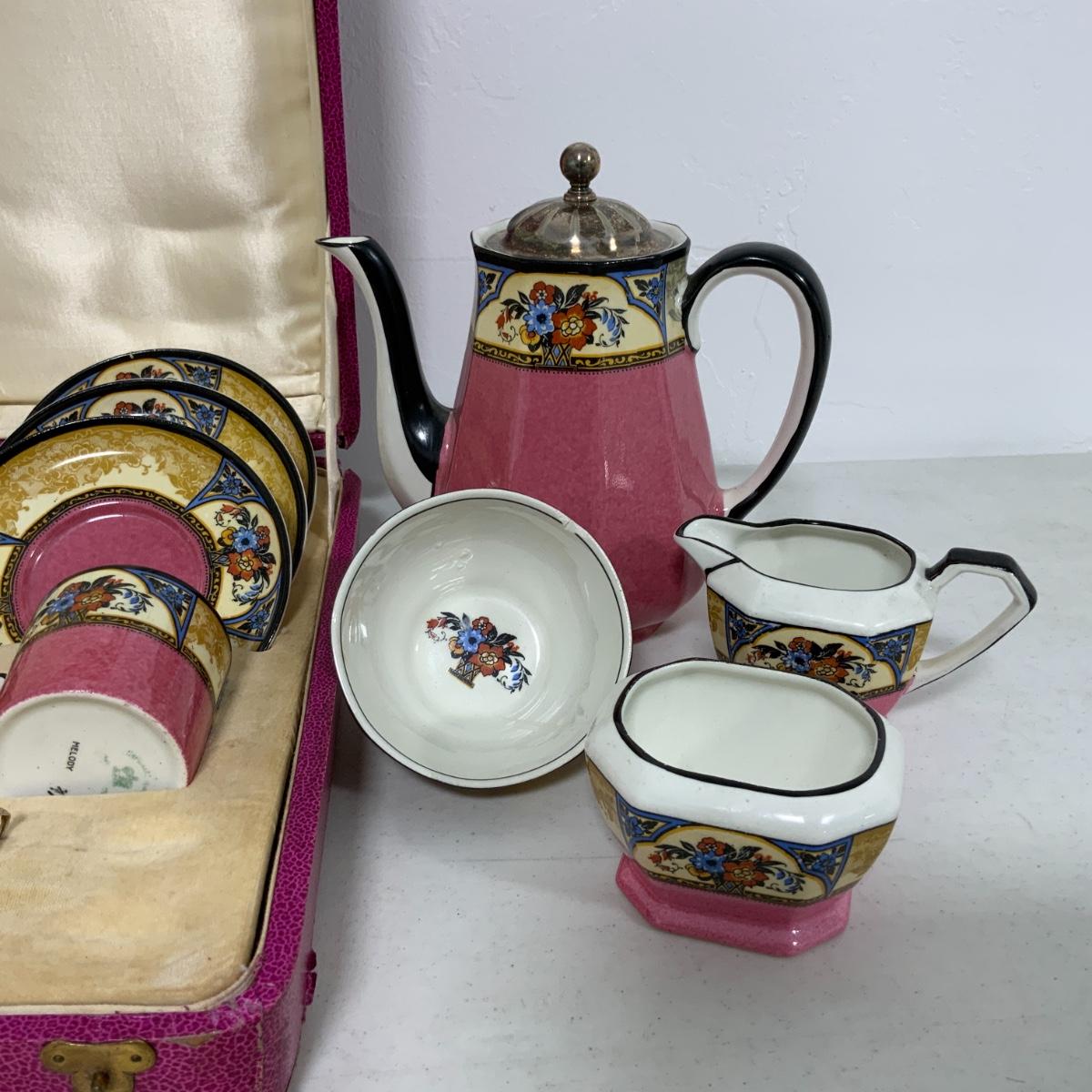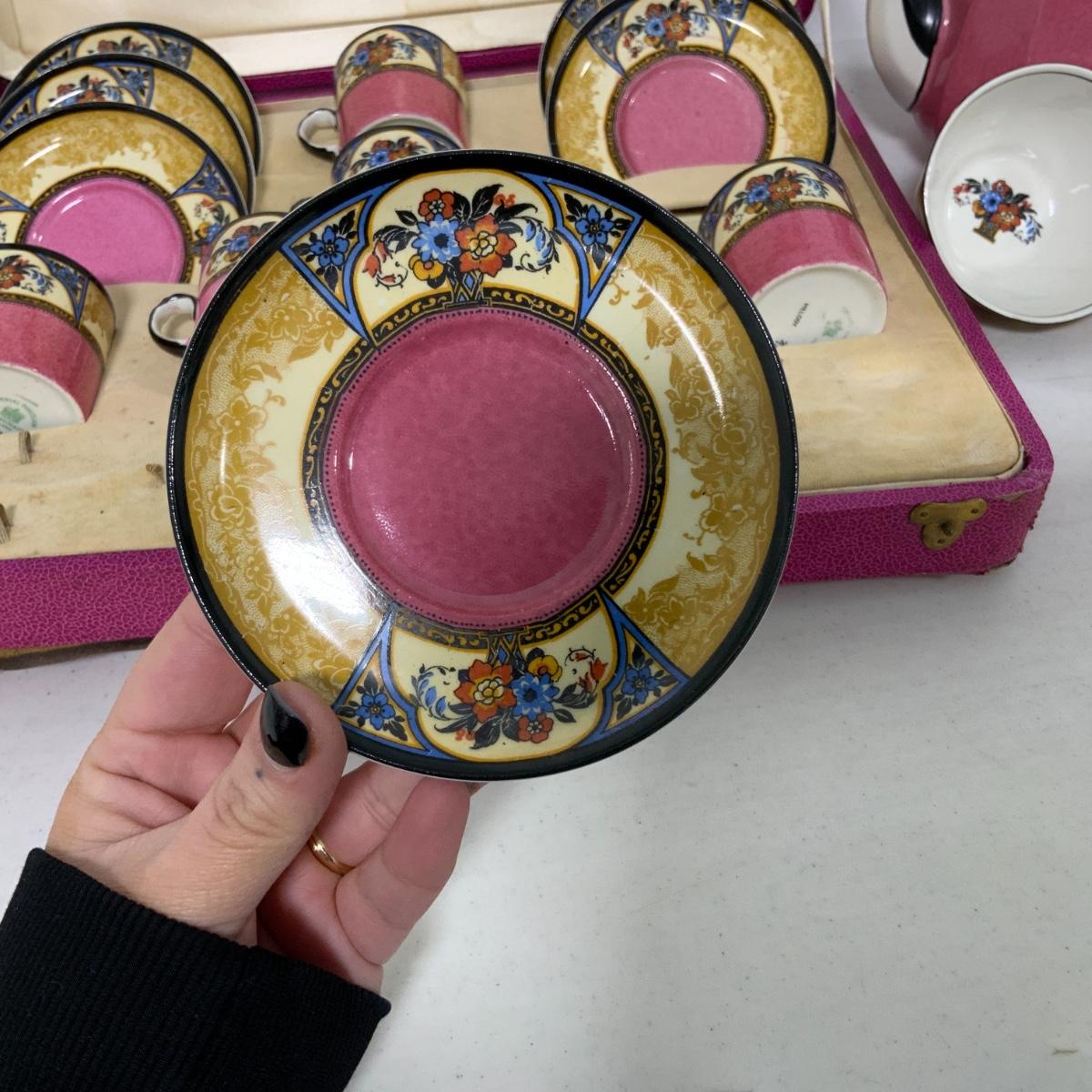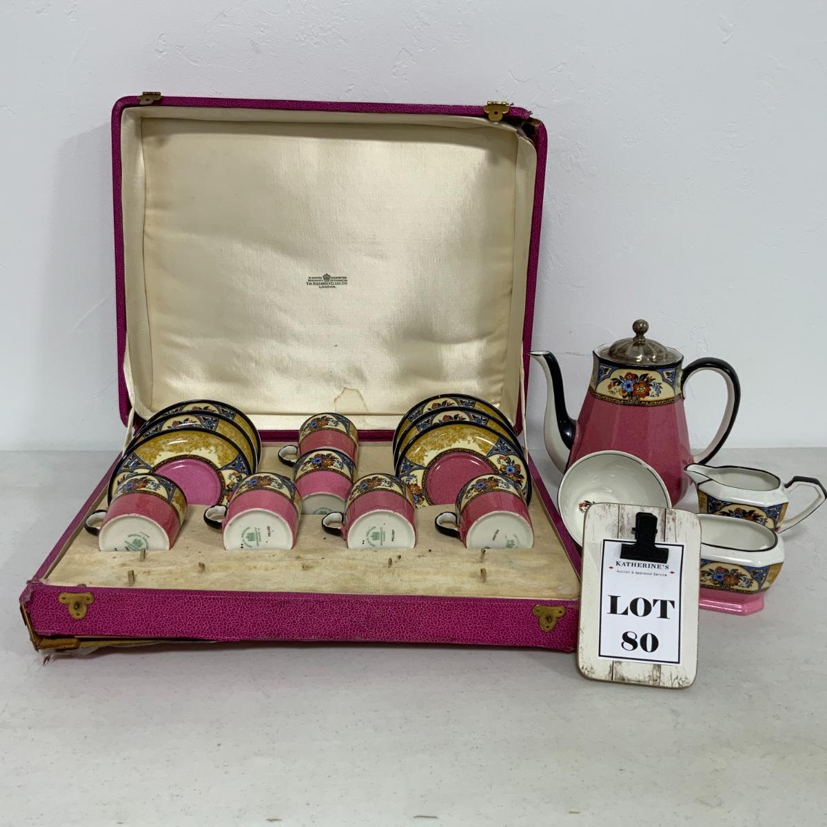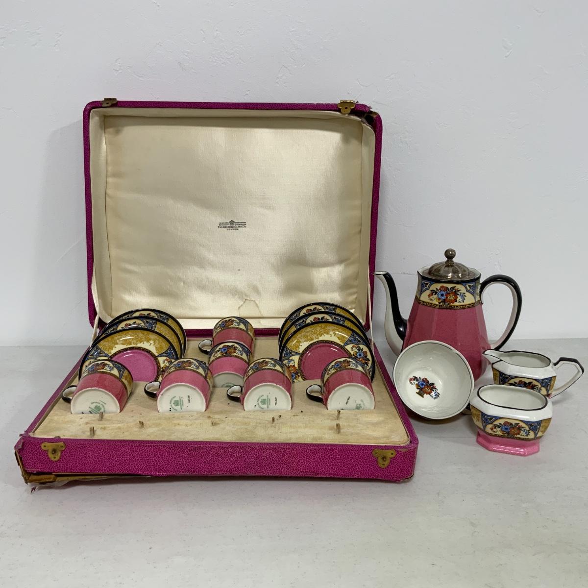 From the Estate of Peter and Alice Radovanovich: Wedgwood Pink Melody Teaset. Box is in poor condition, but the cups and saucers inside are great. Teapot and accessory pieces on the side are nice too. Please see photos for details and condition. ::: Shipping is NOT available on this lot. If you have any questions regarding this lot please contact the auctioneer either via this website, by direct email or by phone. PICK UP TIMES and other important information can be found in the TERMS and DESCRIPTION of the auction. Please take a look for pertinent information. Thanks!