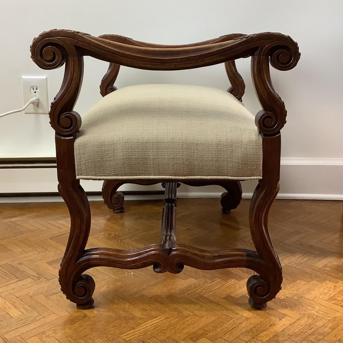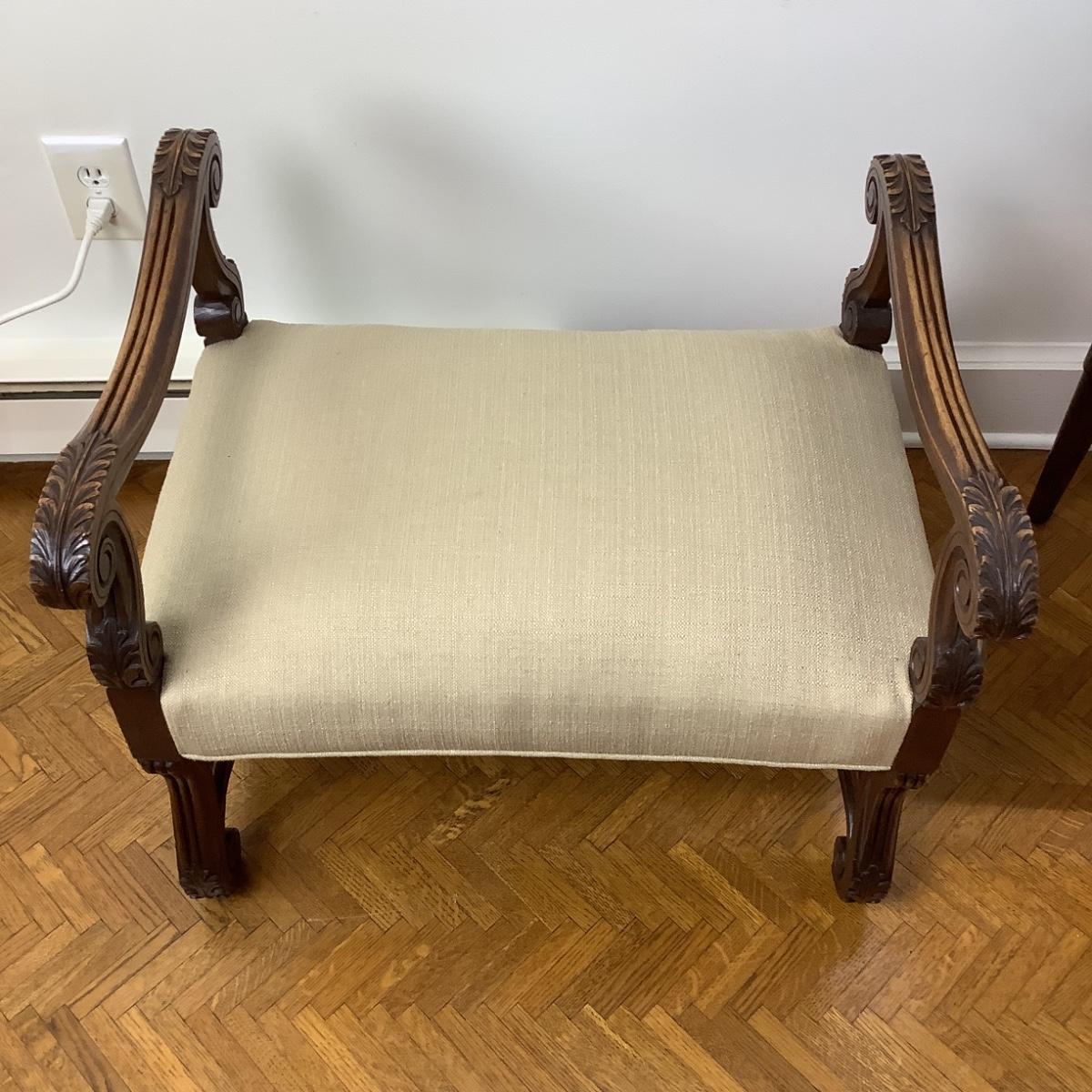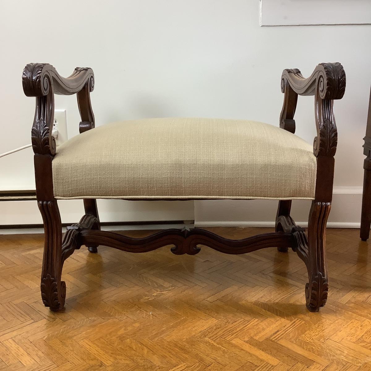 8010 Antique French Style Upholstered Bench with Stretcher
