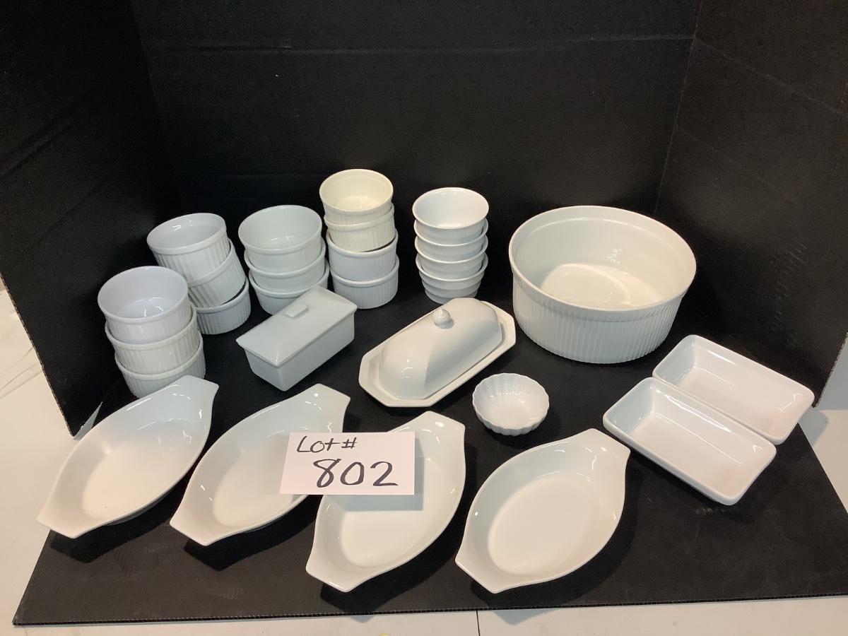17 Ramekins, 4 Au Gratins, 4 Butter Dishes, Etc.