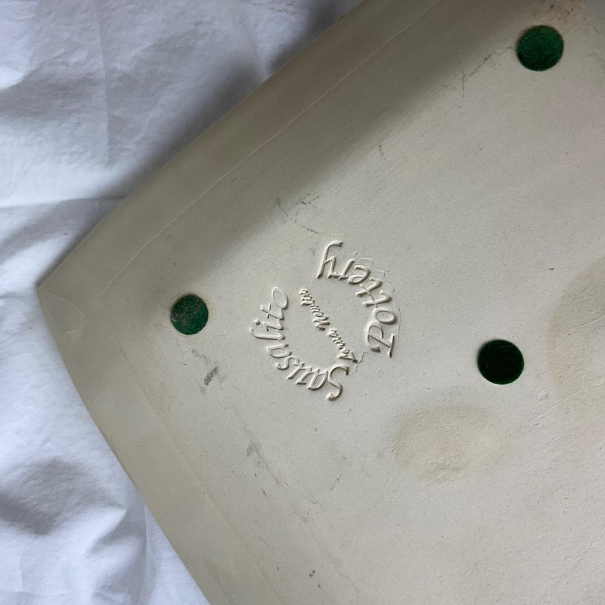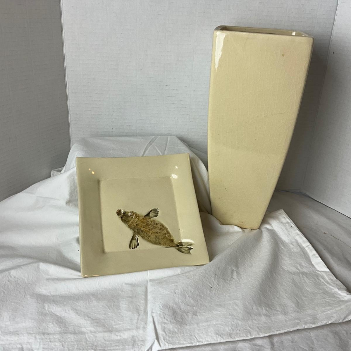 Plate measures 7" square with seal and vase is unmarked and measures 12" high