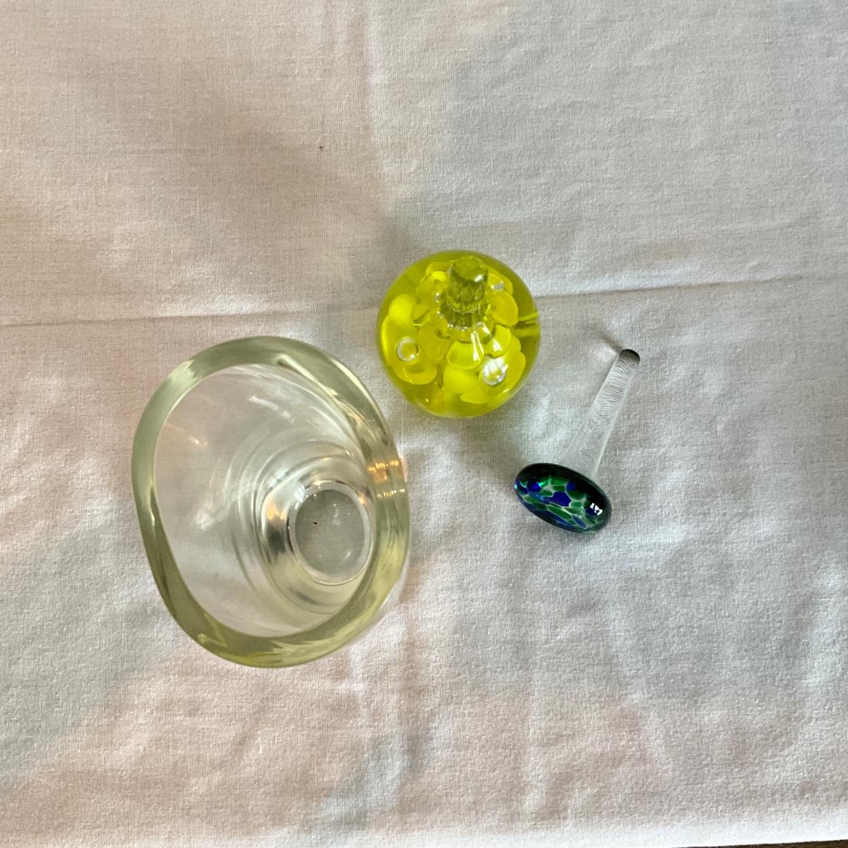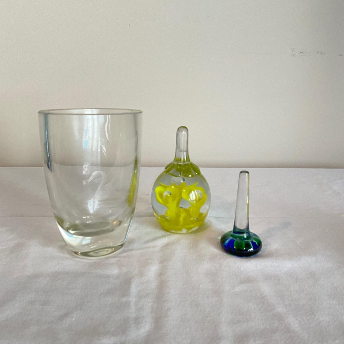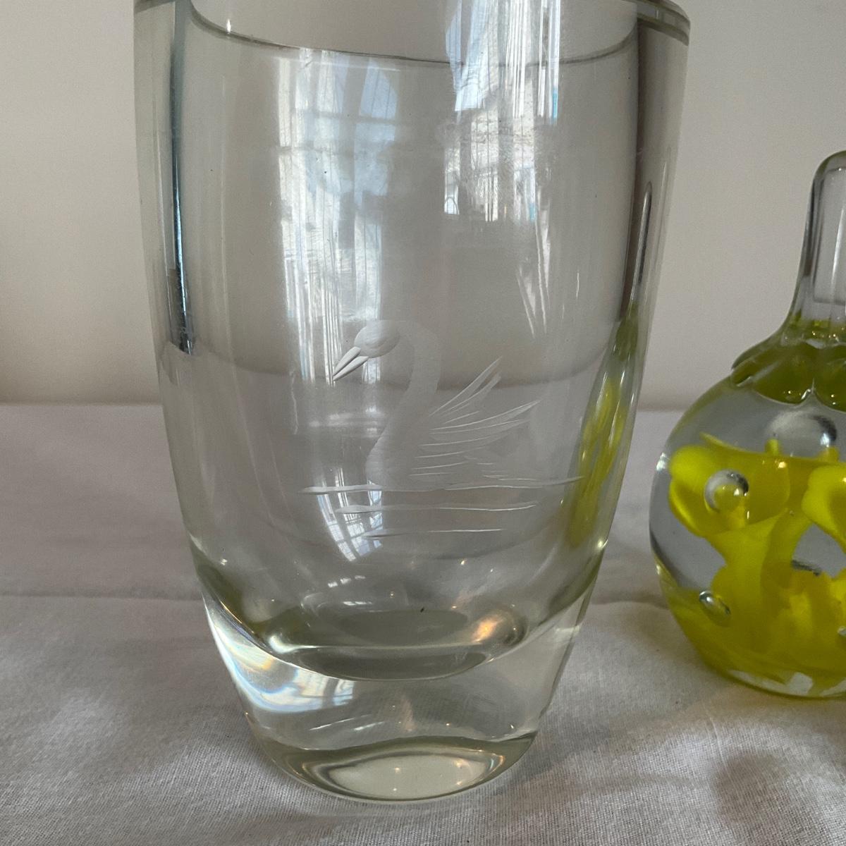 803 St Clair Floral Paperweight , Stopper and Swan Etched Vase