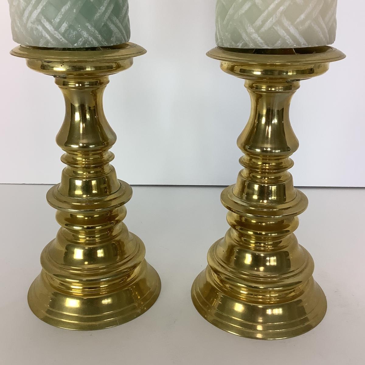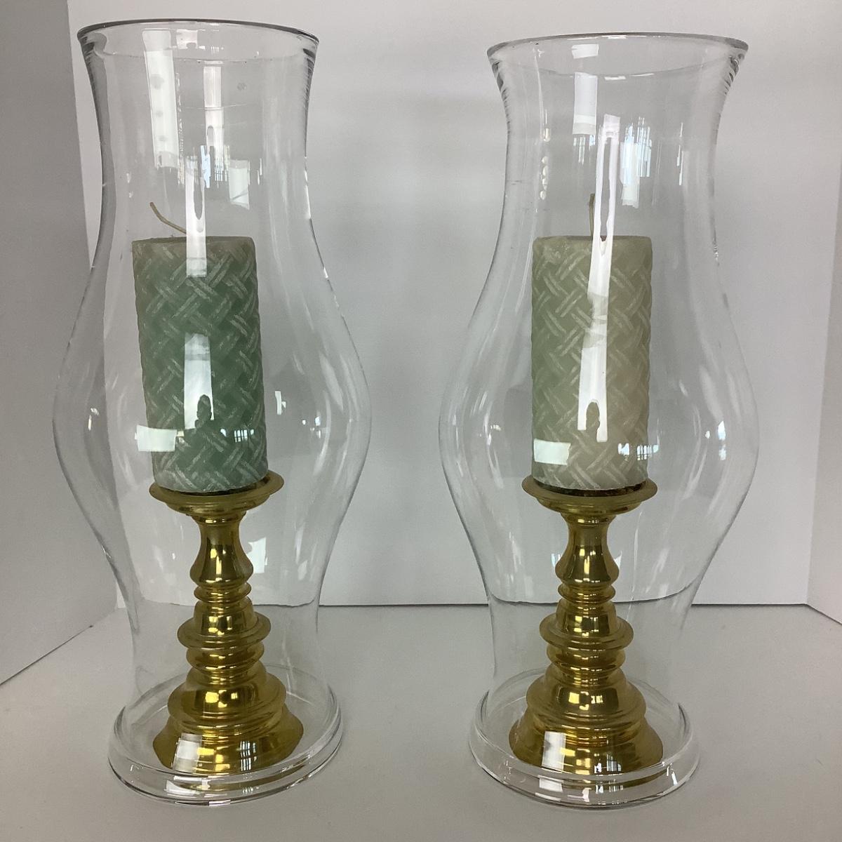 8038 Pair of Vintage Brass Large Hurricane Globes