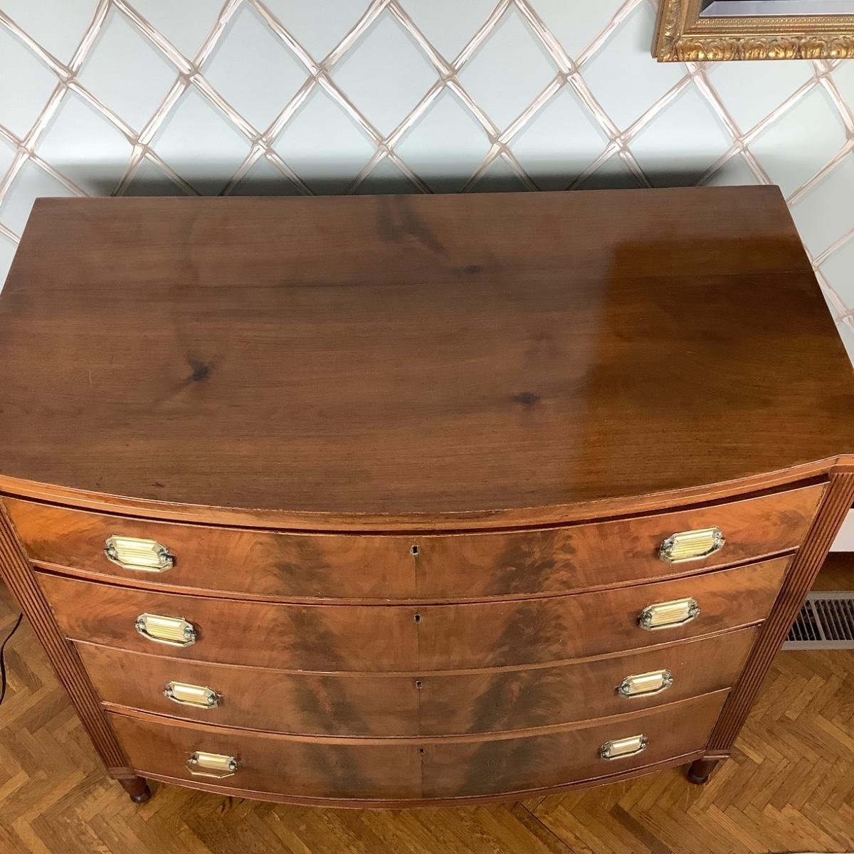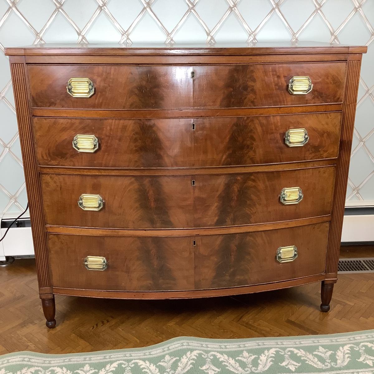 8041 Antique Sheraton Bow Front Paneled End Chest of Drawer