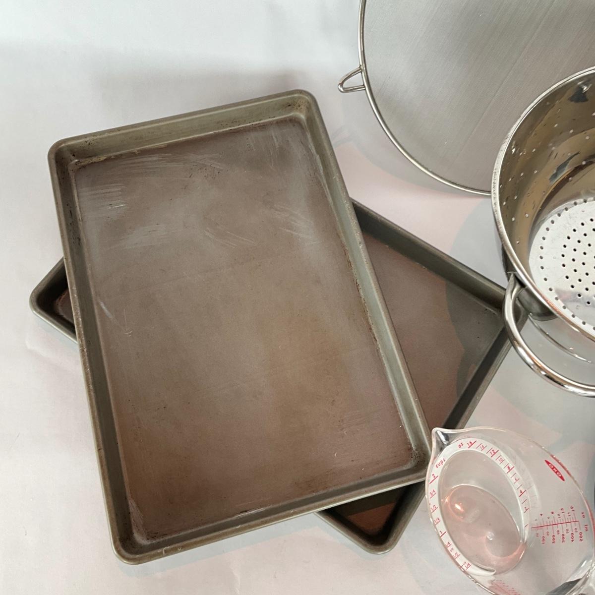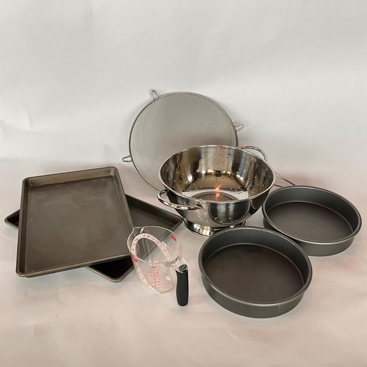 2- 9" round bake pans, 2- 10.5" wide x 15.5" long