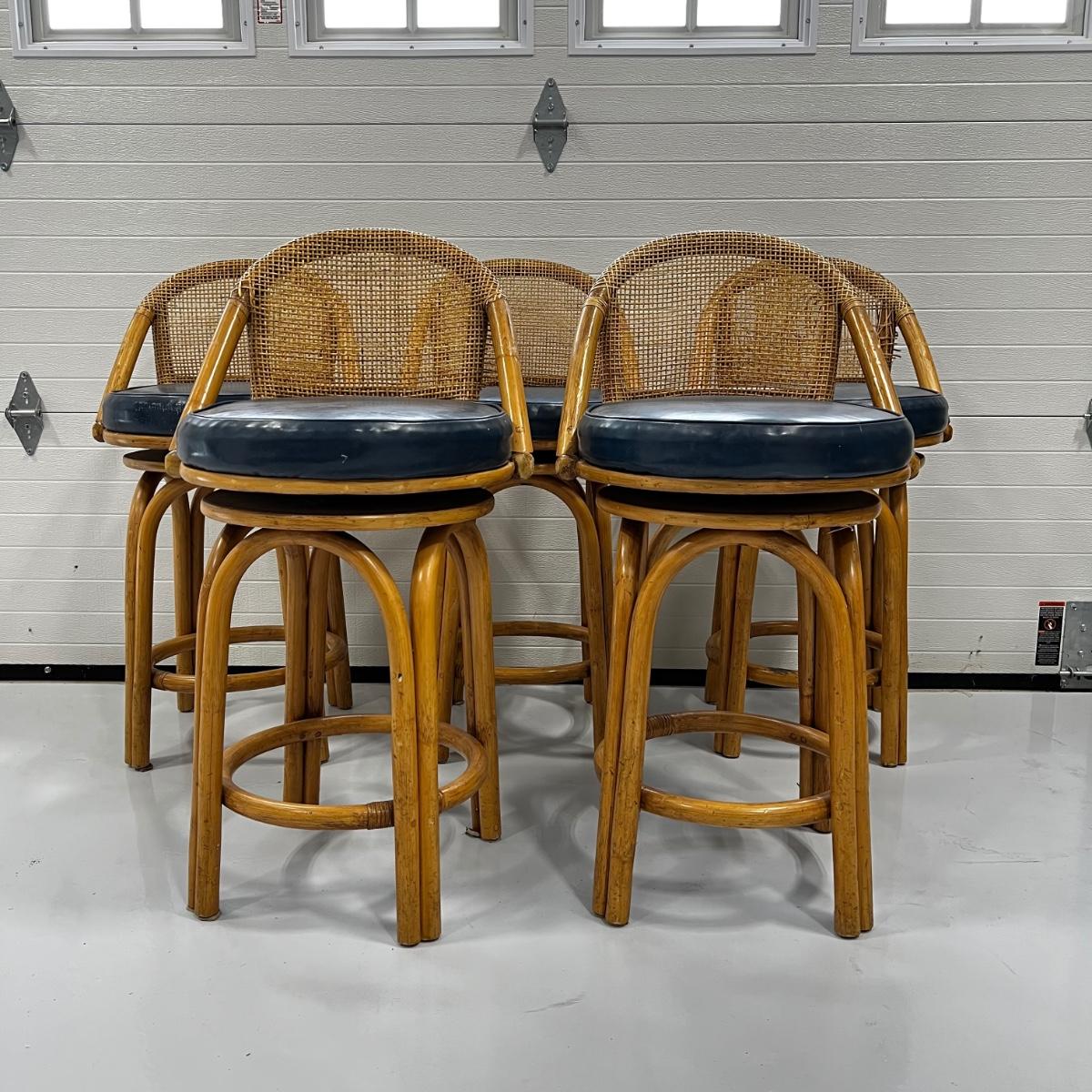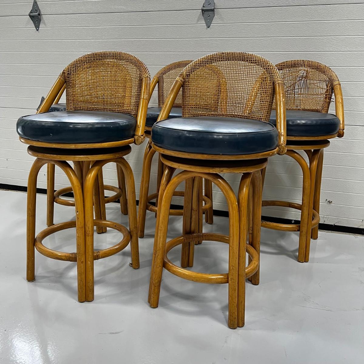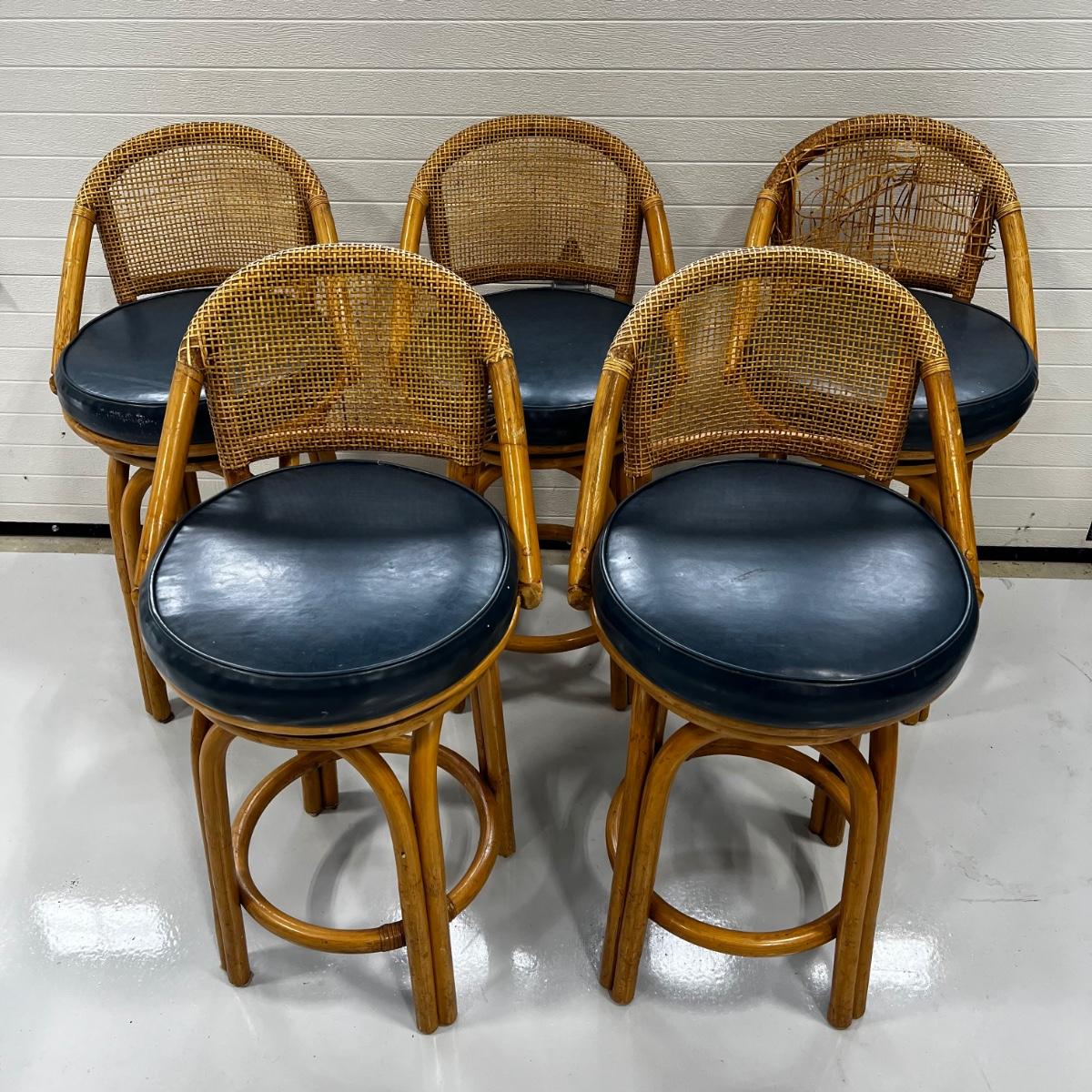 805 Set of Five Rattan Swivel Stools