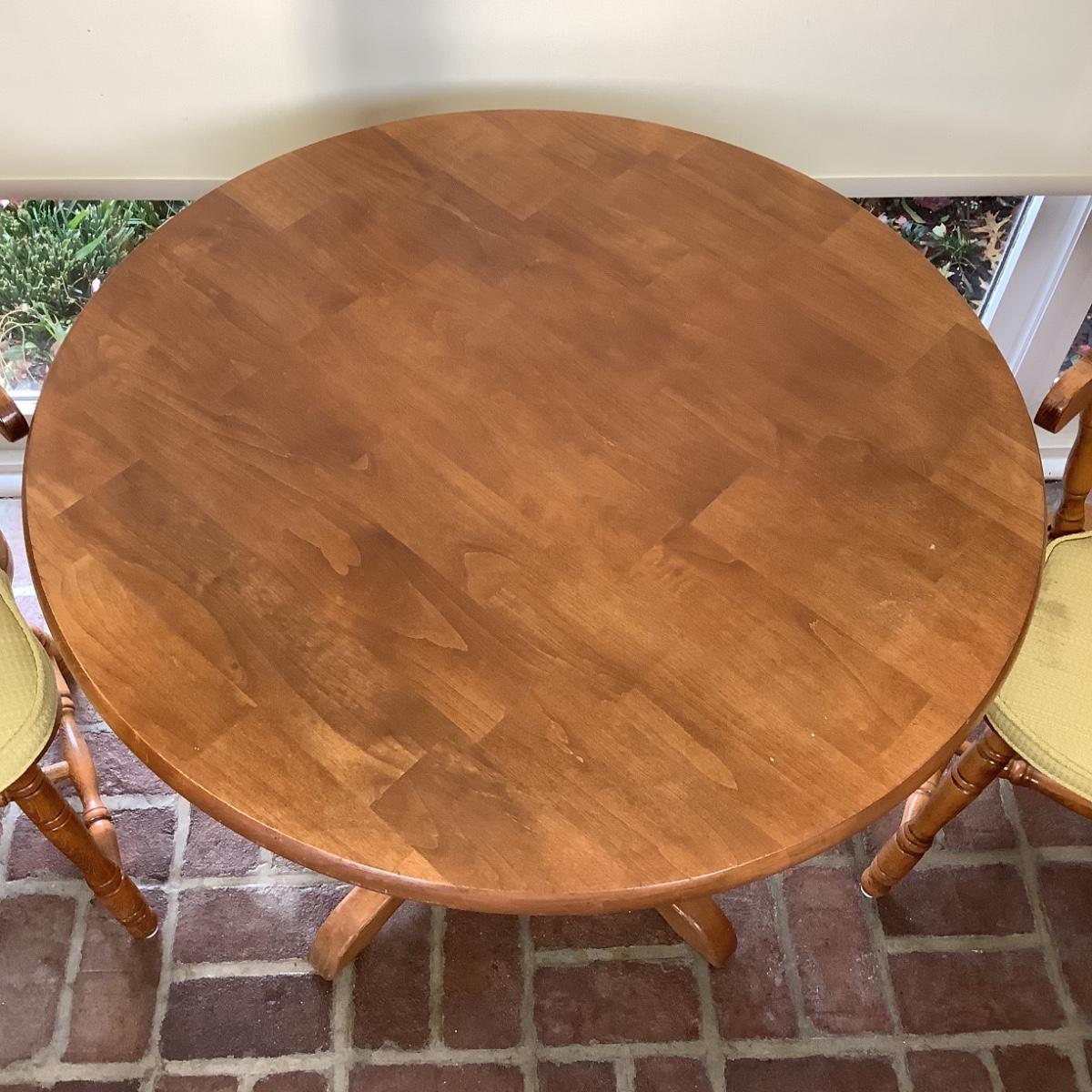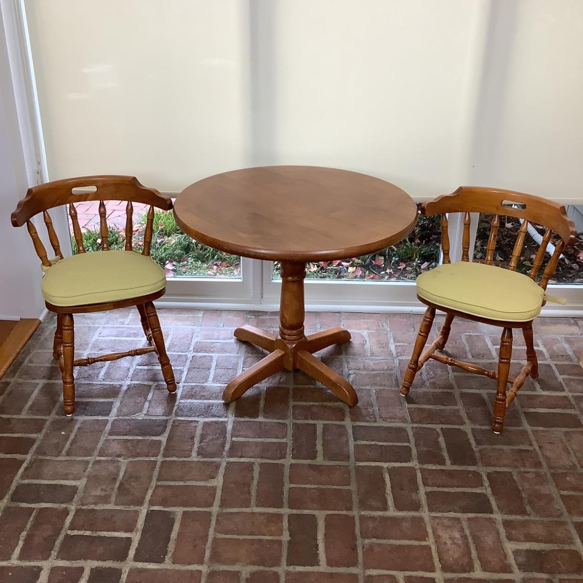 Round Maple Kitchen Table w/ Two Captains Chairs.