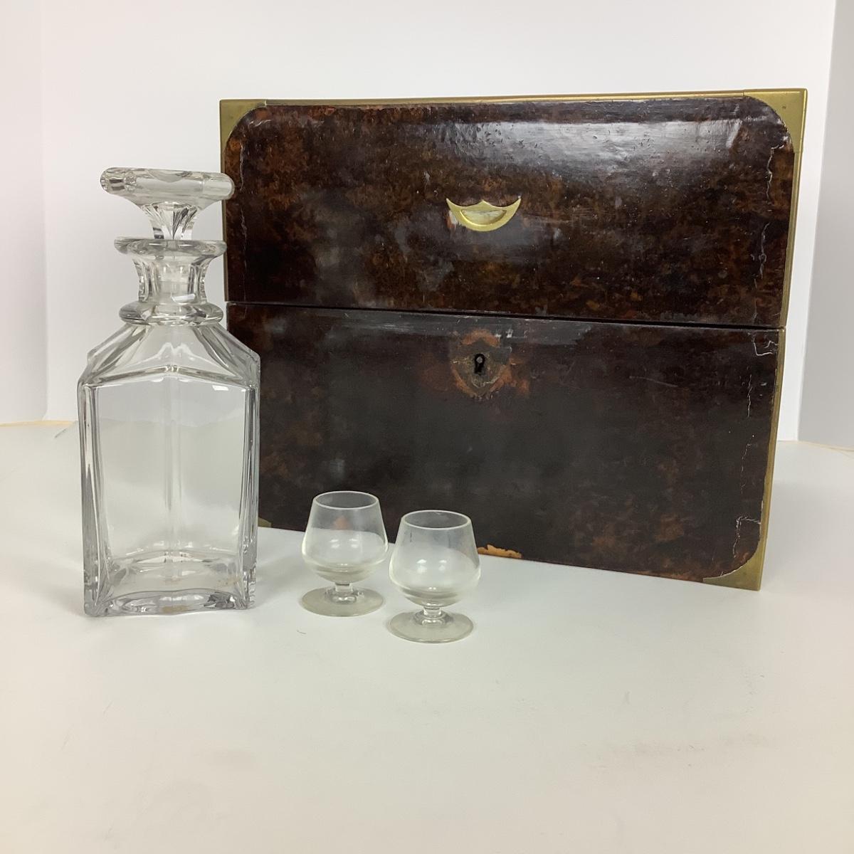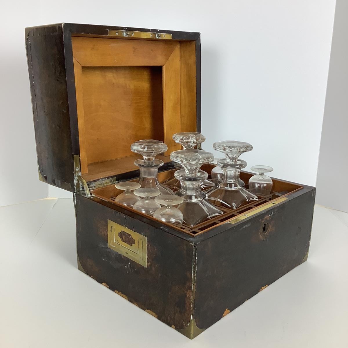 8058 Antique Wooden Liquor Decanter Set with Brass Trim and Handles