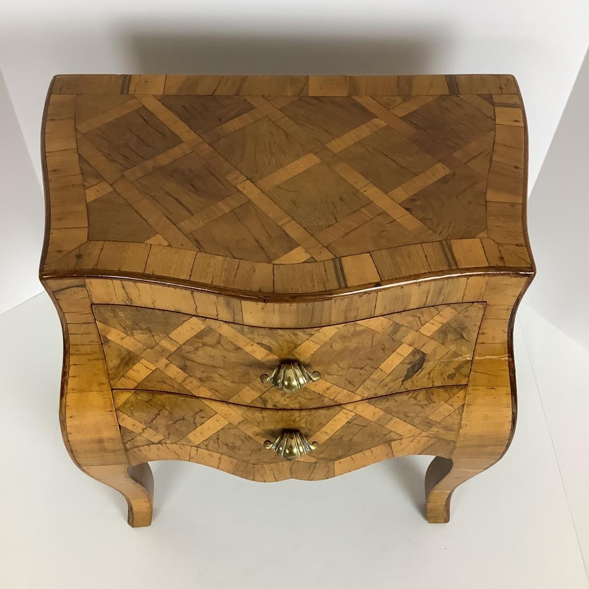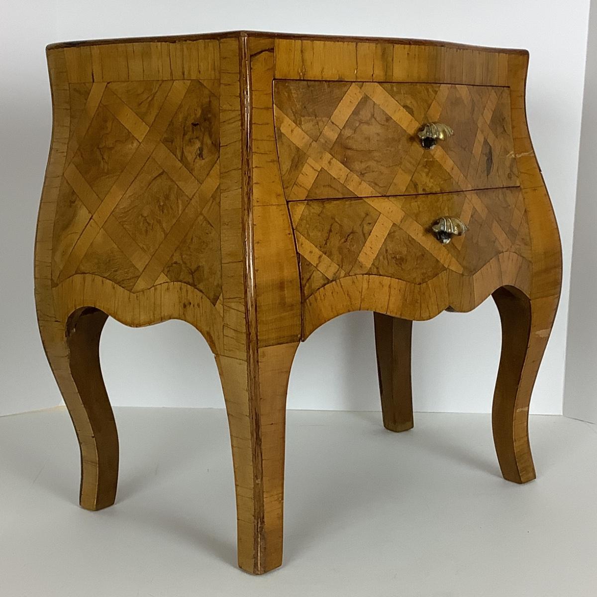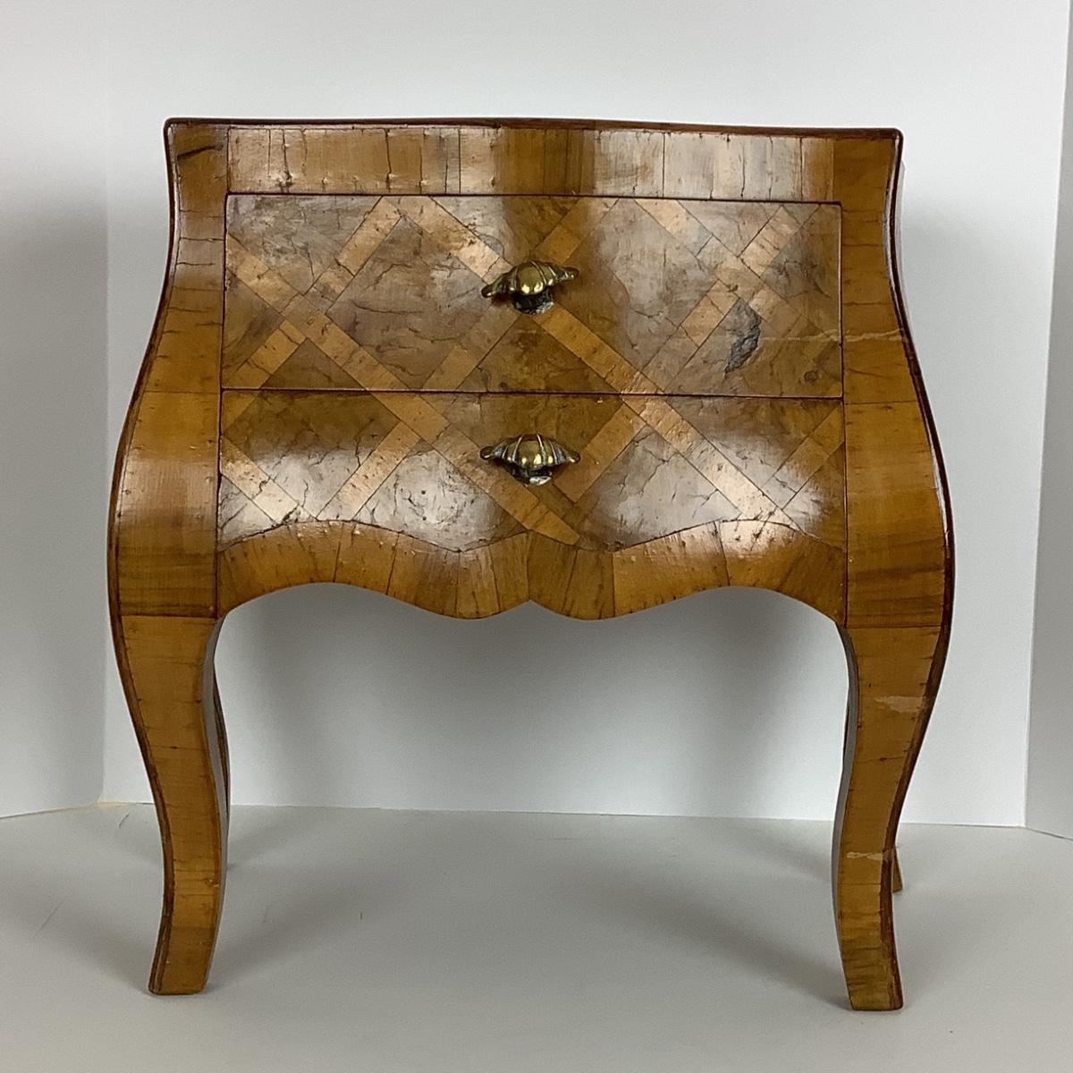 8066 Antique Small Petite Italian Marquetry Bombay Two Drawer Chest