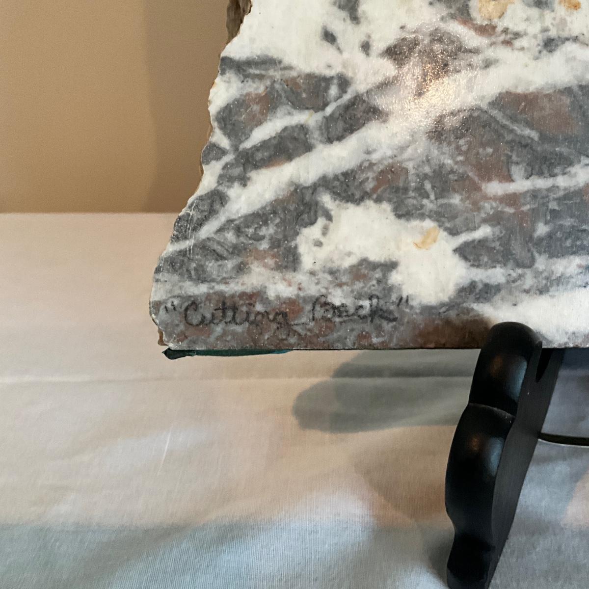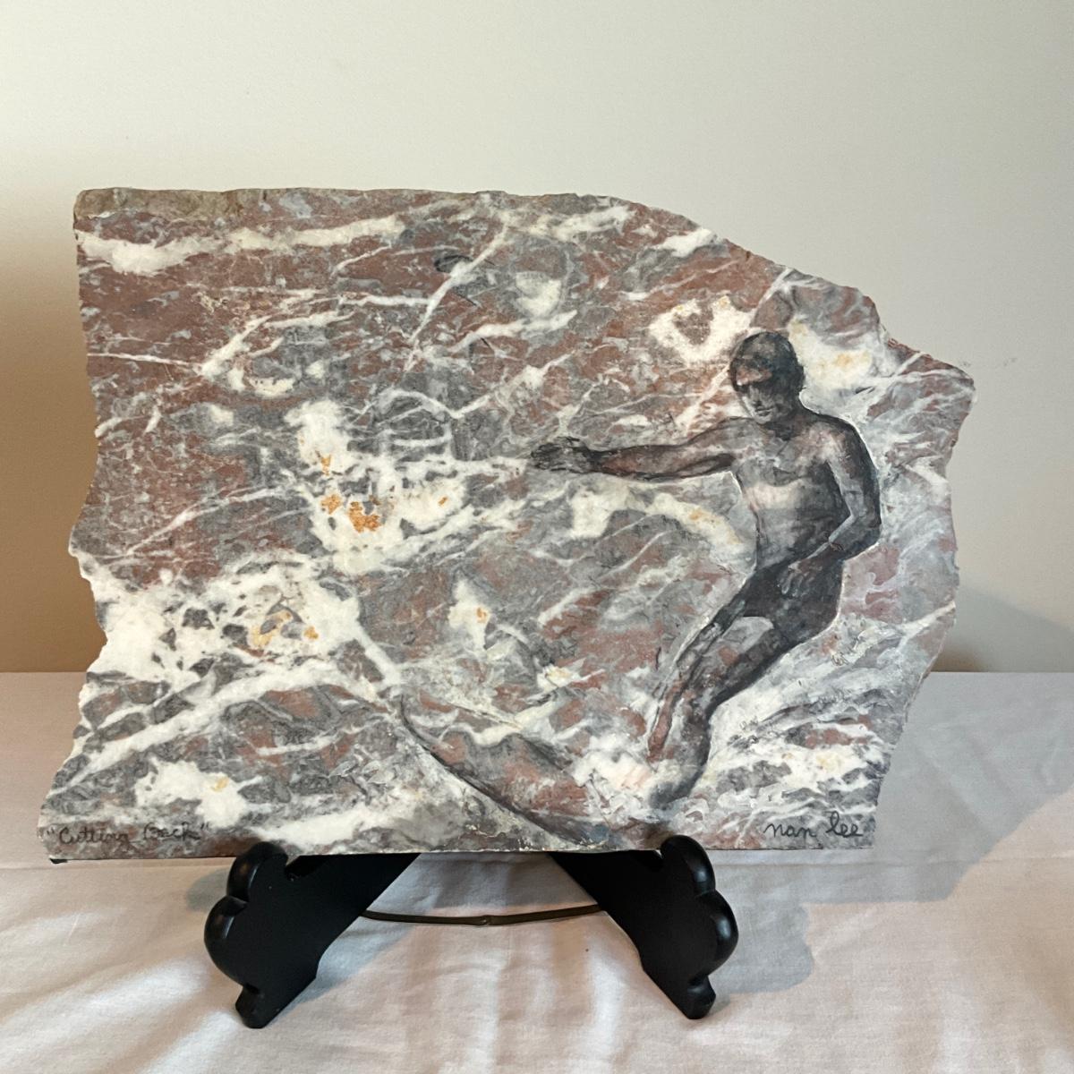 807 Large Nan Lee Painting on Stone of Surfer "Cutting Conch"