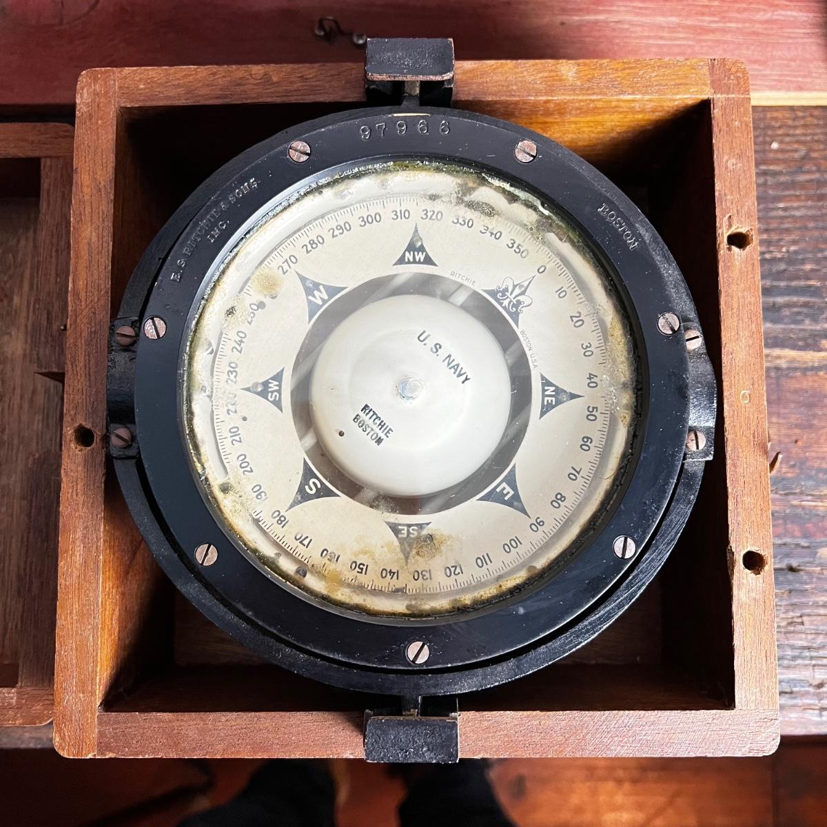 E.S. Ritchie & Sons Inc. #97966 compass, brass, in case. 1942.