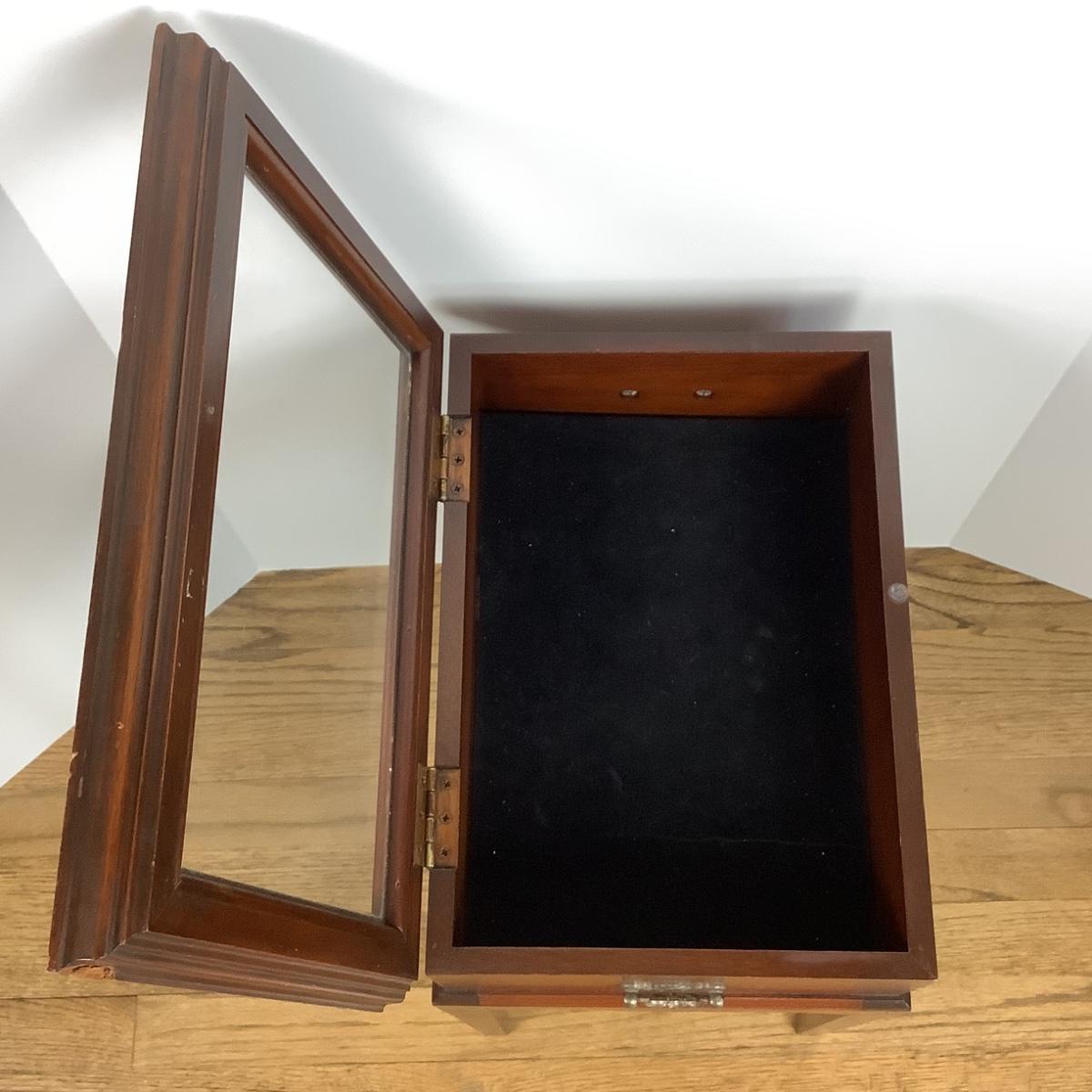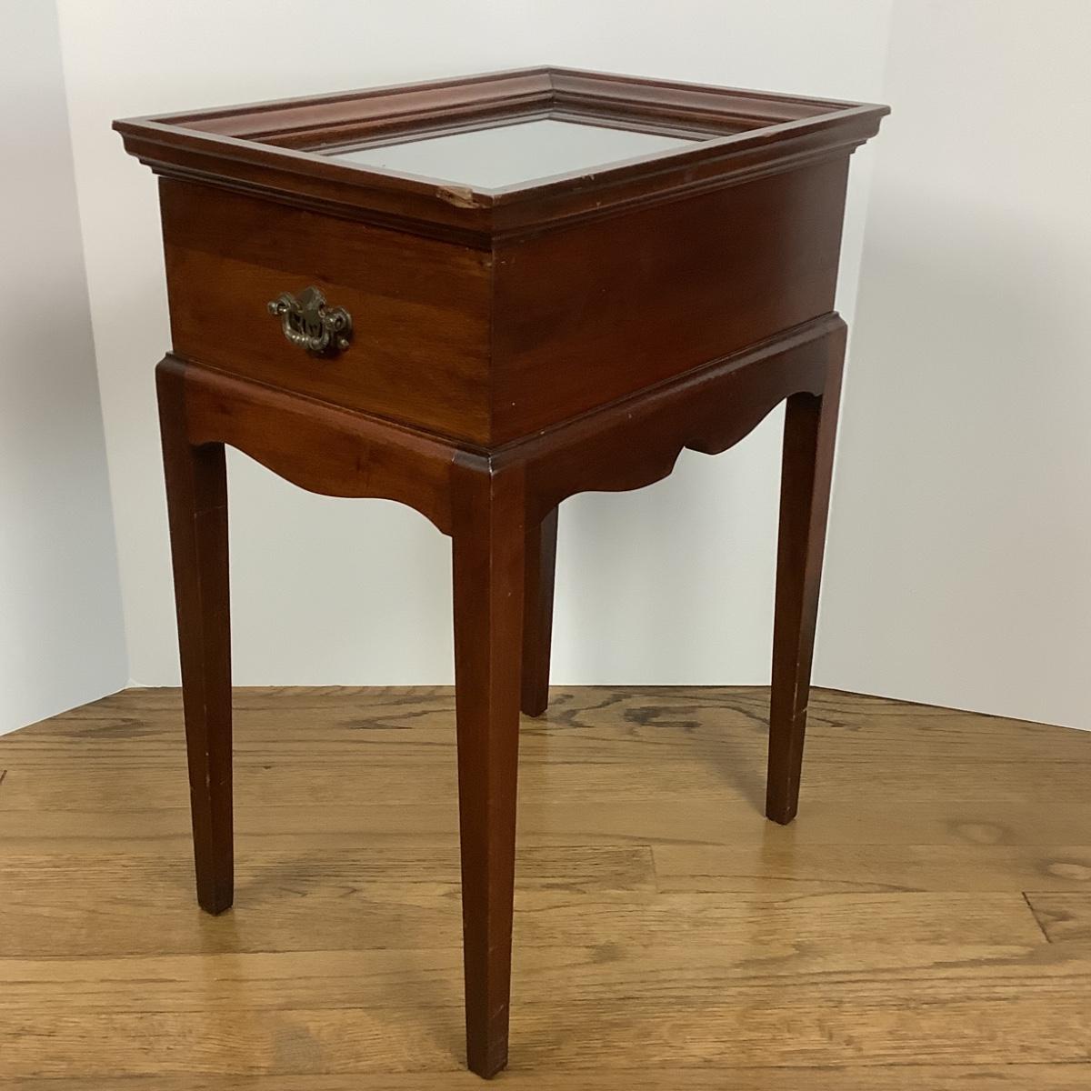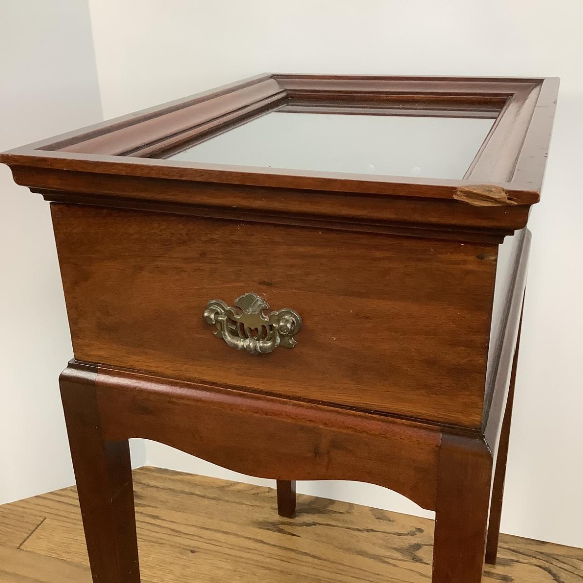 8079 Vintage Mahogany Glass top Display/ Speciman Table