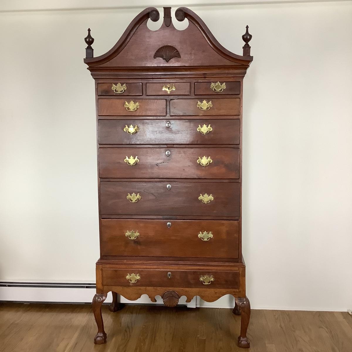 8085 Antique Mahogany Chippendale Graduated Drawer Highboy