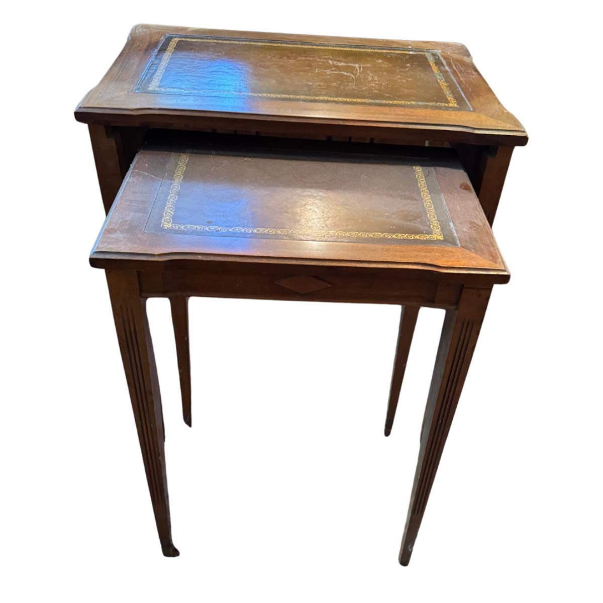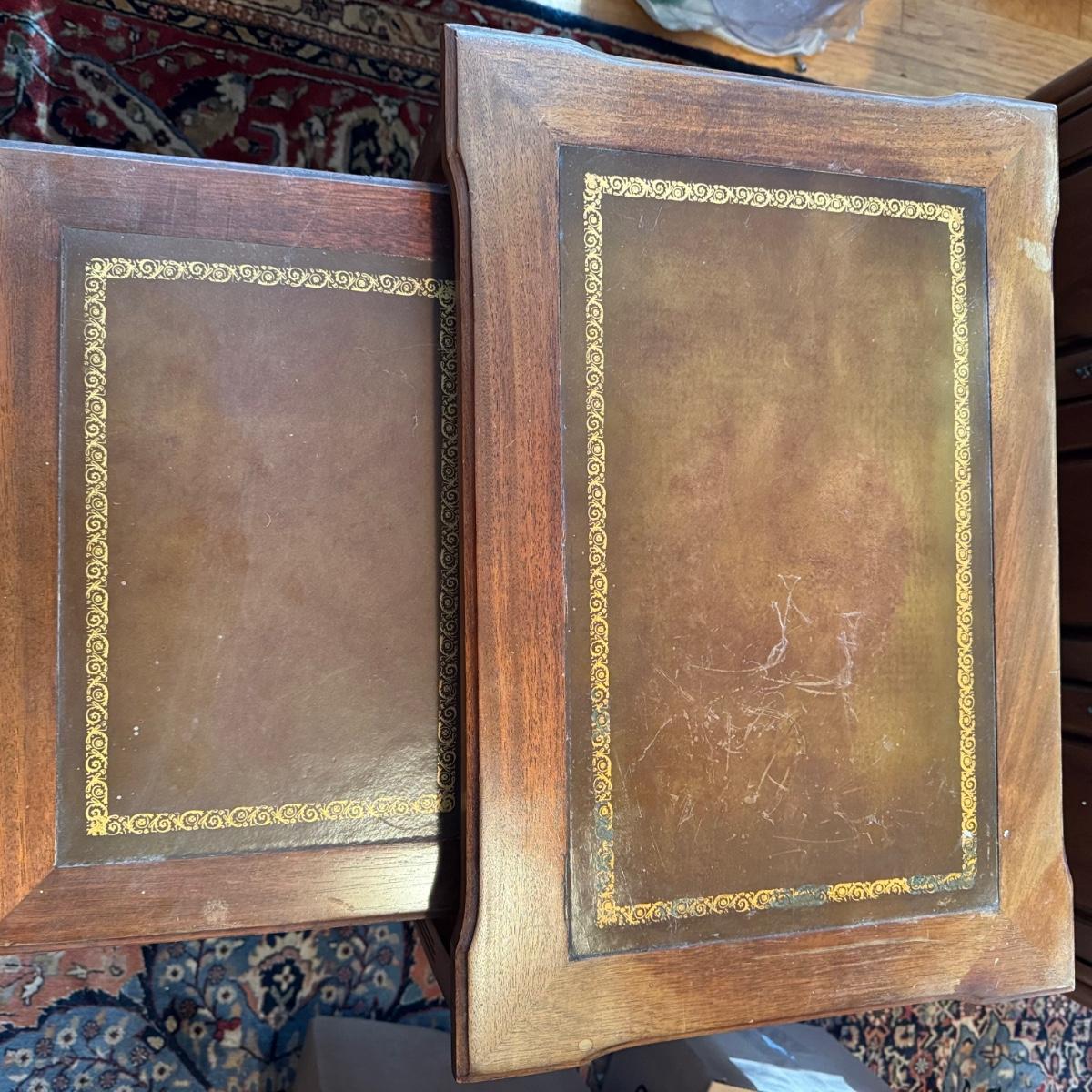 809 Pair of Vintage Leather Top Nesting Tables