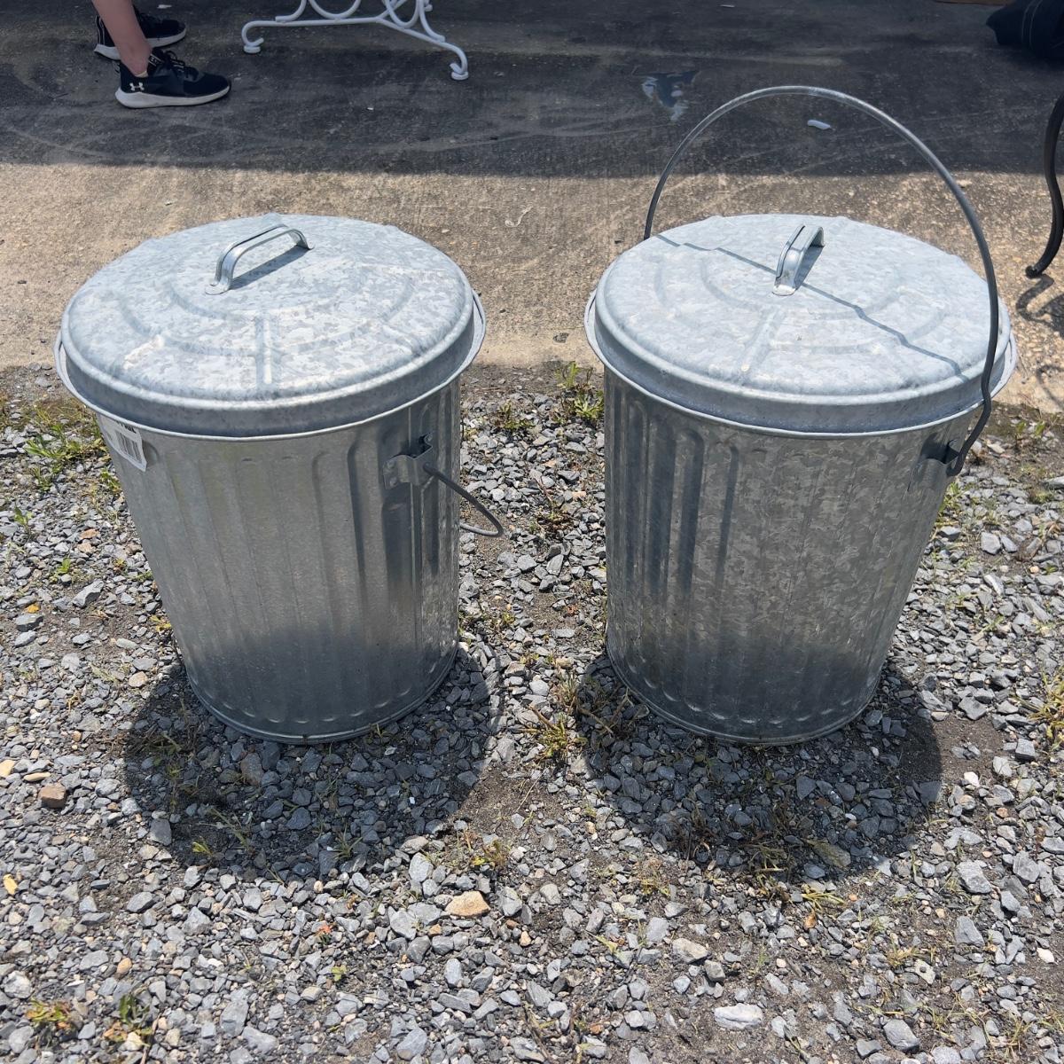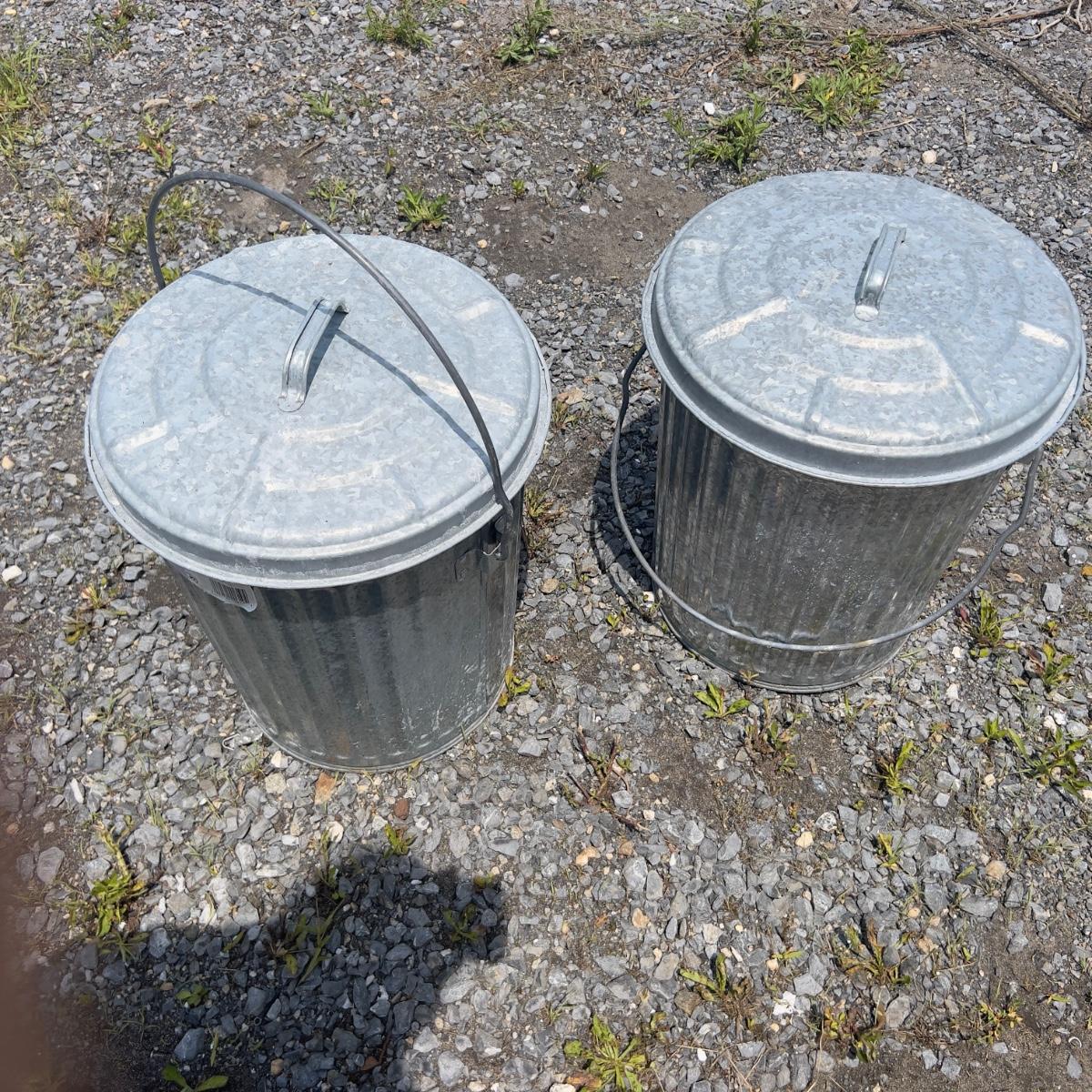809 TWO 10 gallon Galvanized Aluminum Metal Cans with Lids