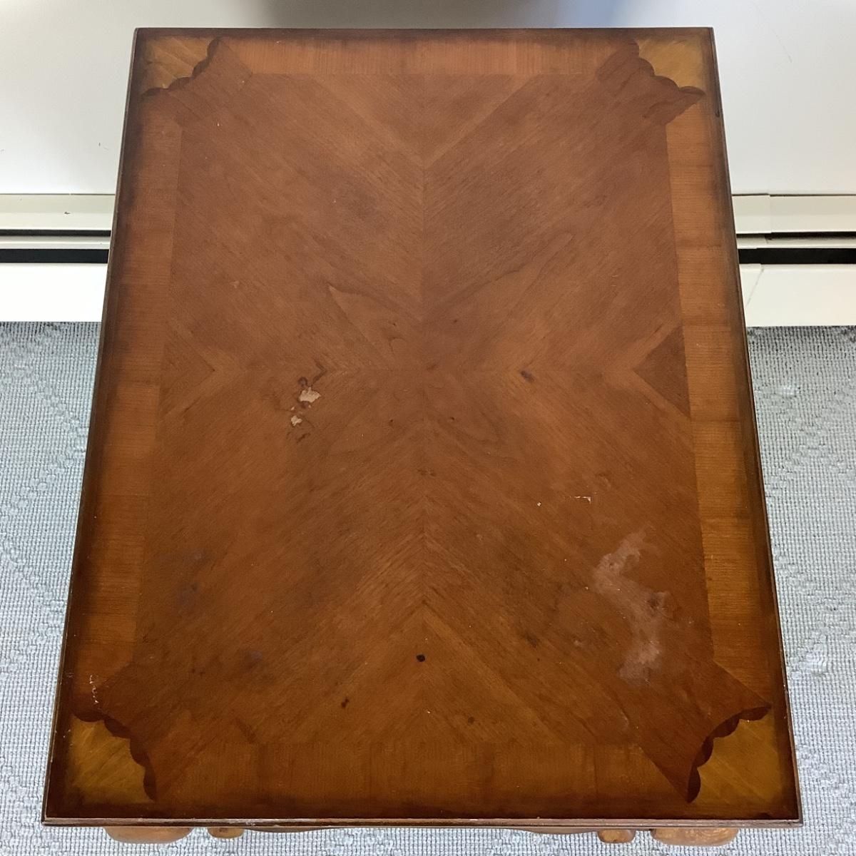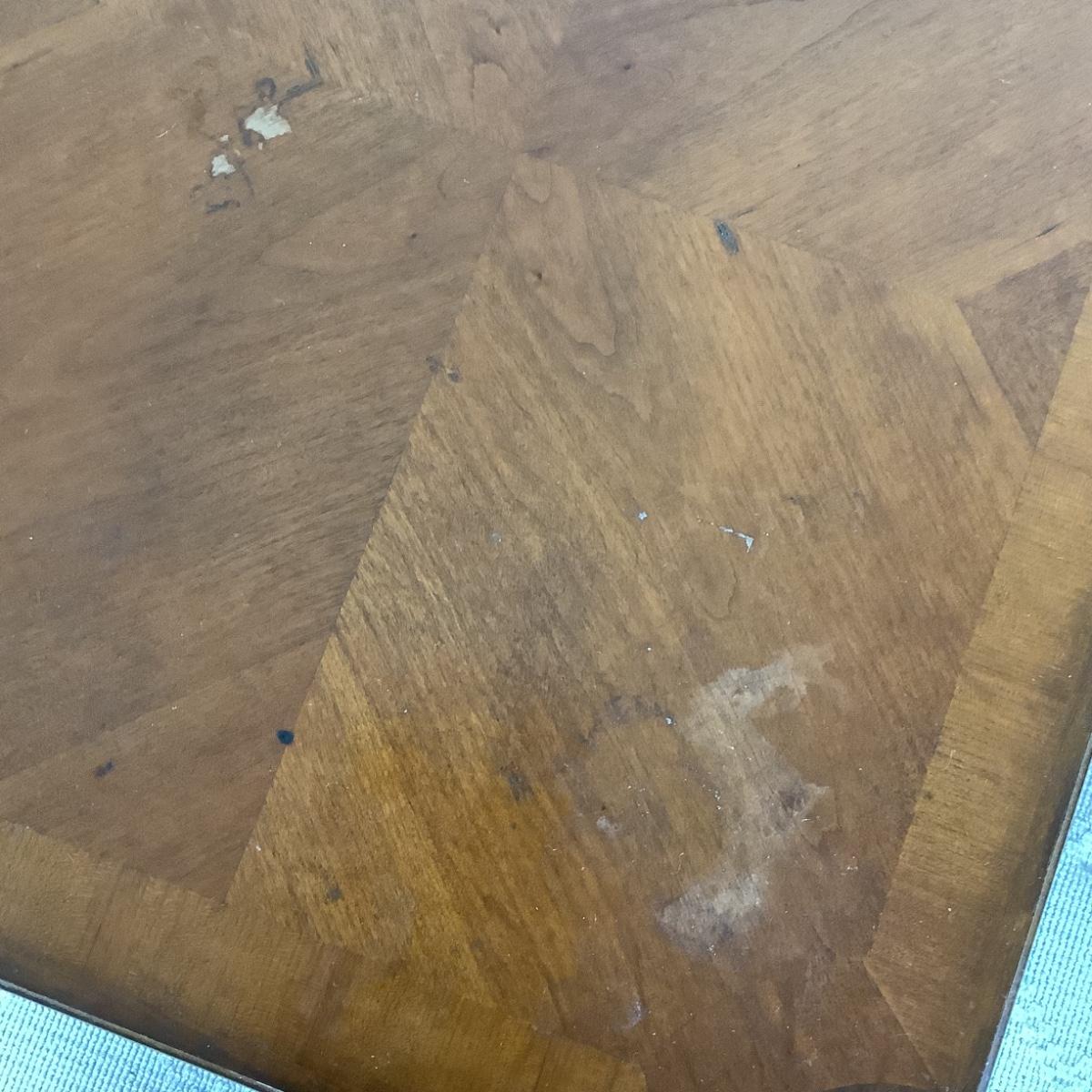 Inlay top with a few stains. Measuring 20"wide x 24" high x 26" deep