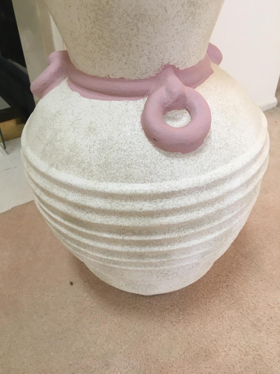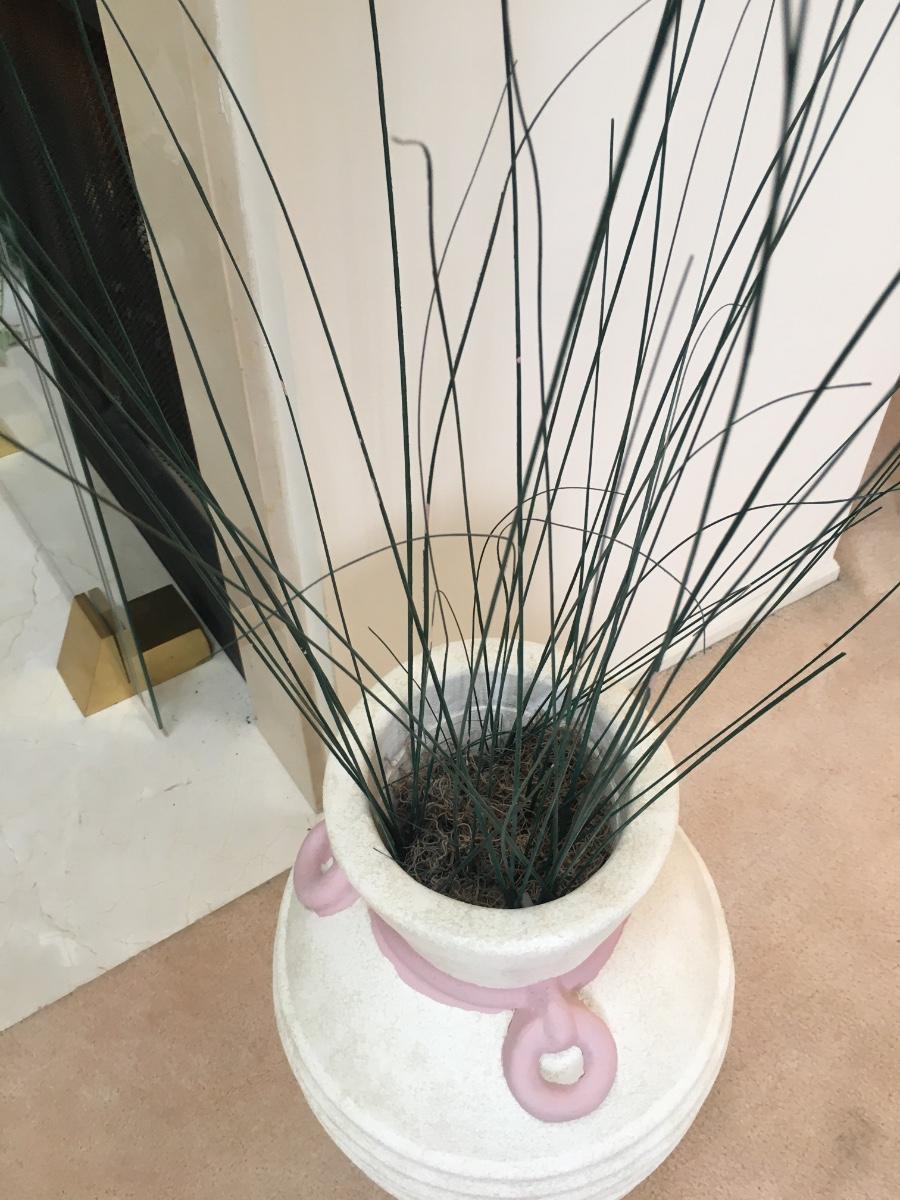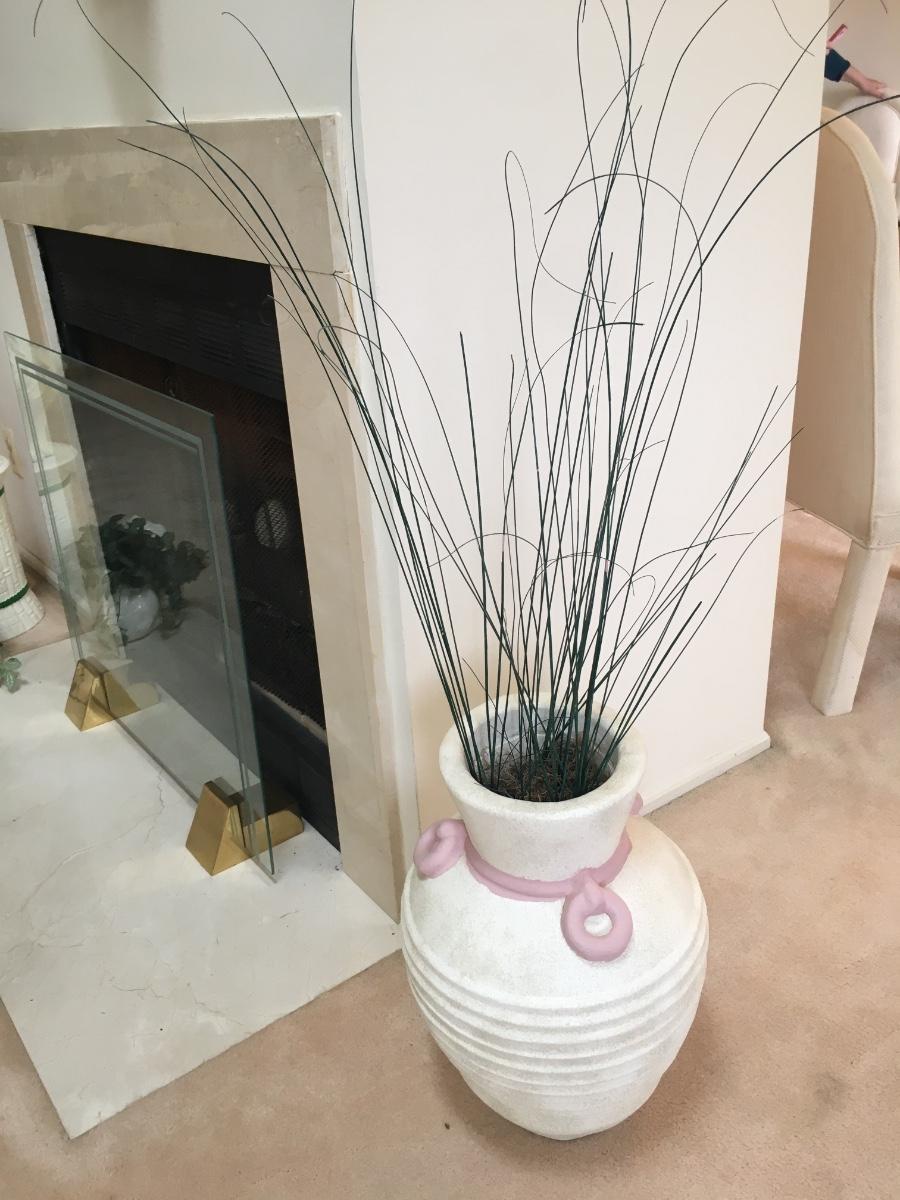 Ceramic floor vase with decorative trim, comes with decorative grasses.
