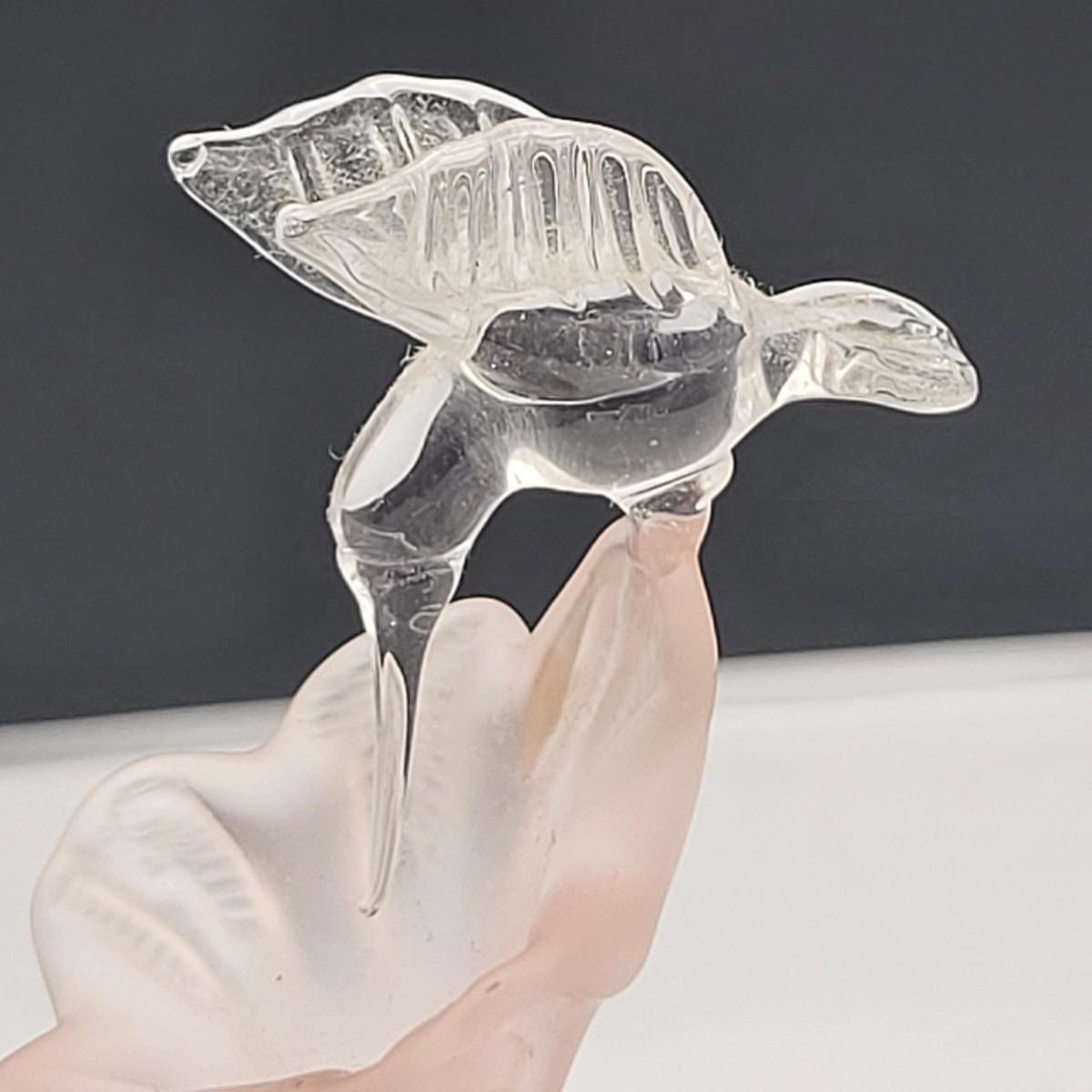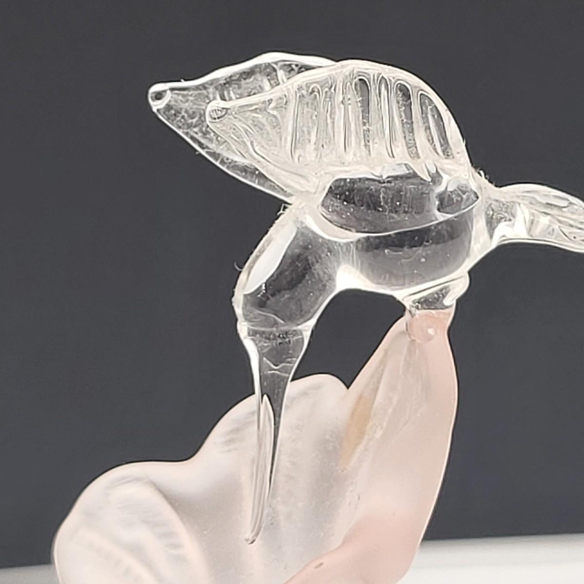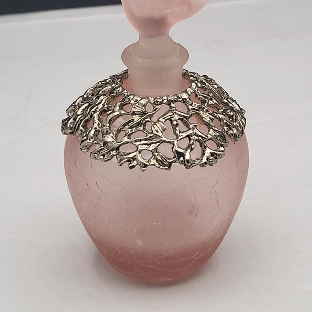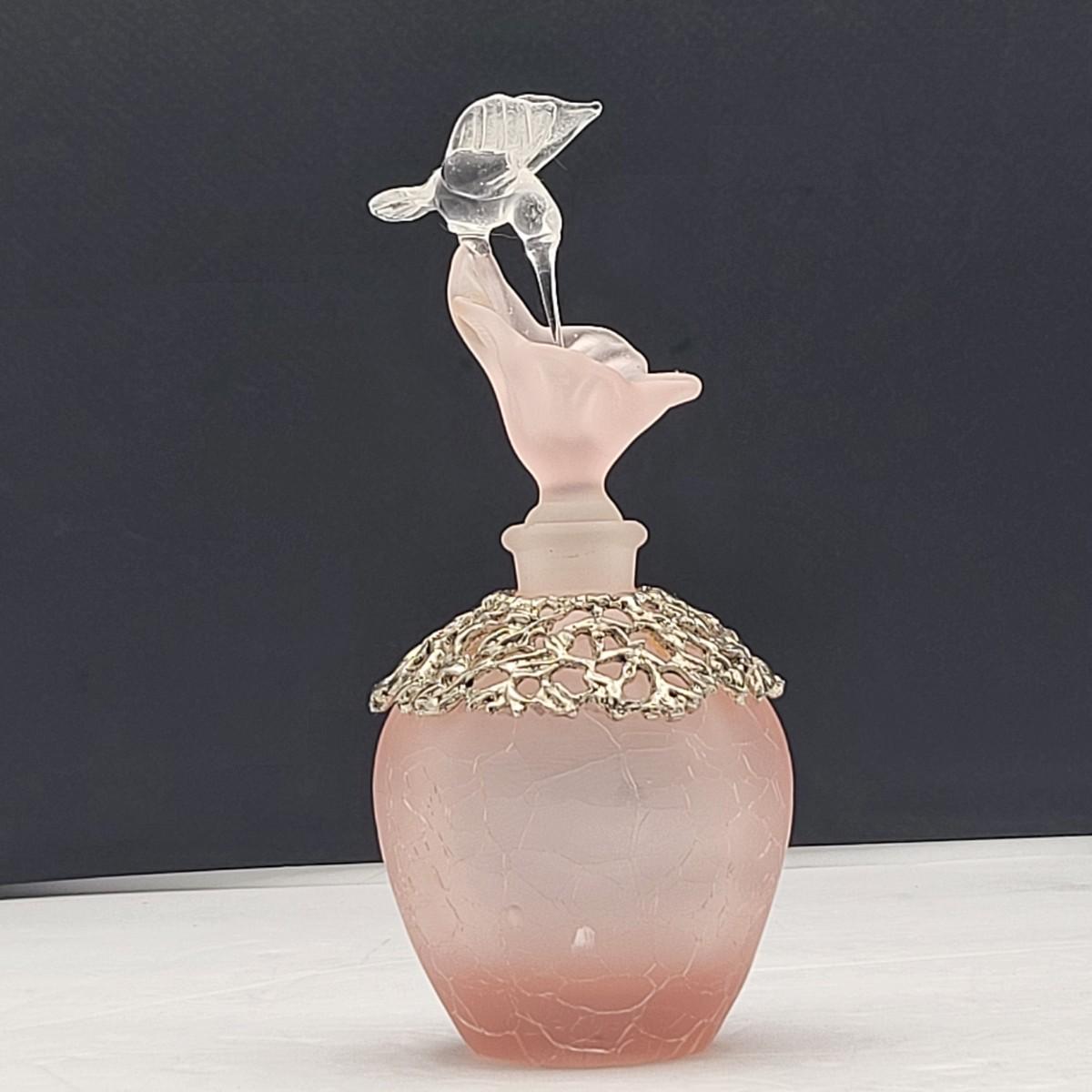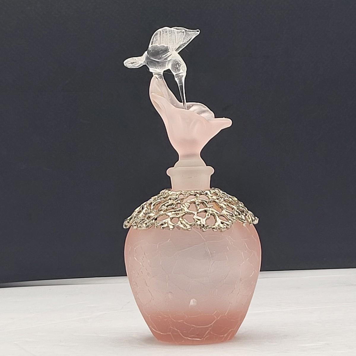 80's Frosted Pink Crackle Glass Hummingbird Perfume Bottle