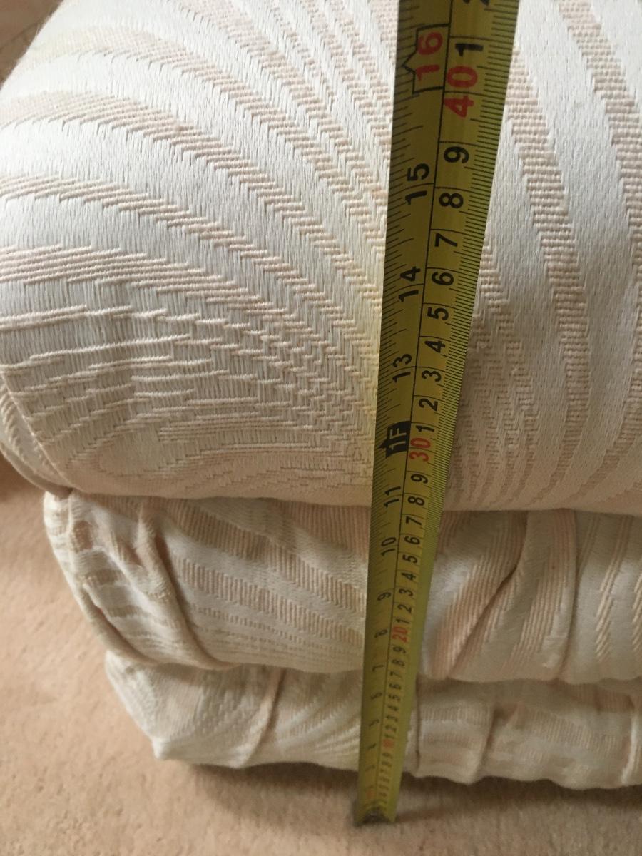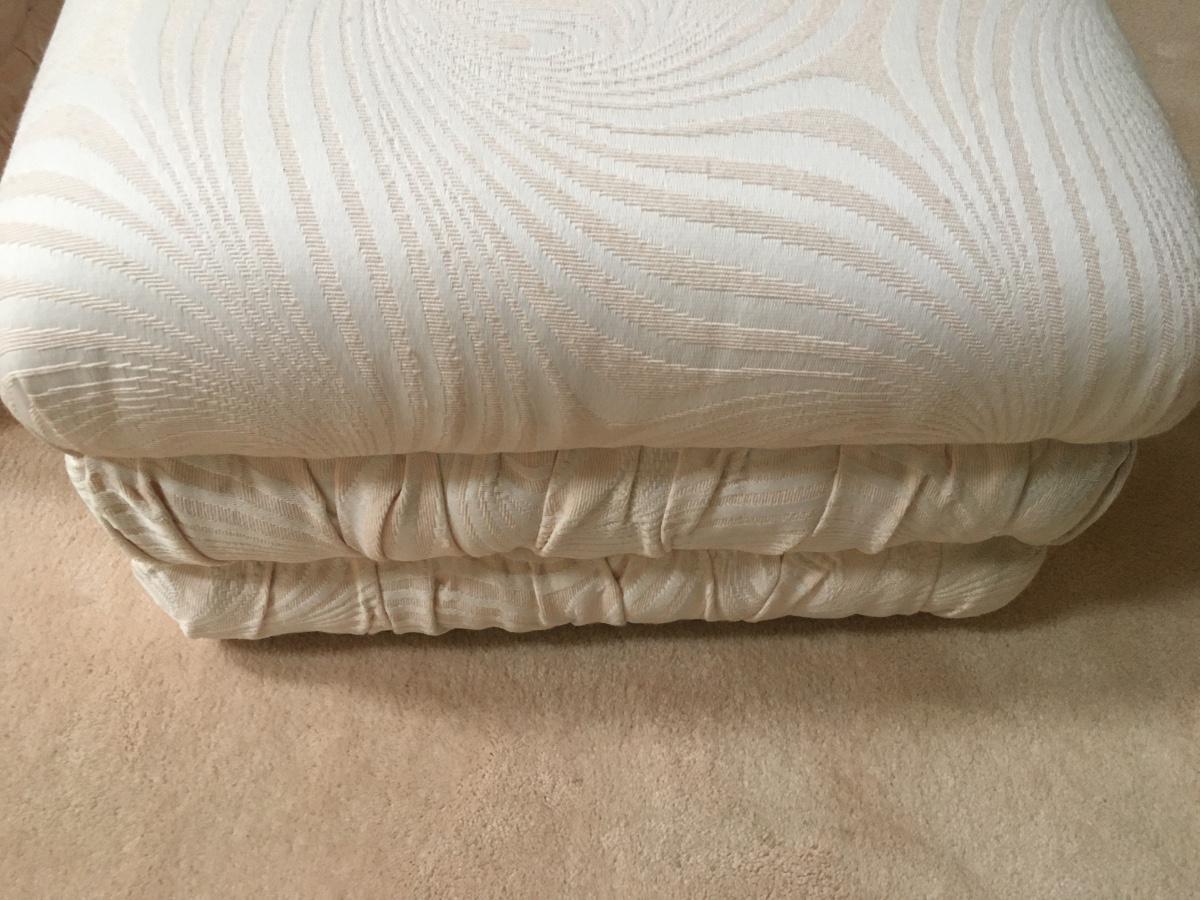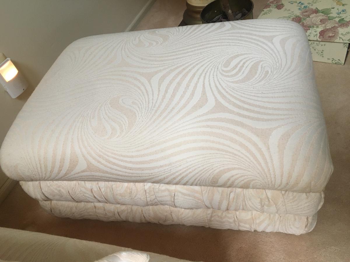 Stylized moire patterned cotton fabric ottoman/coffee table.