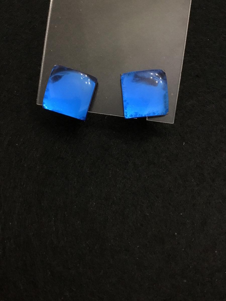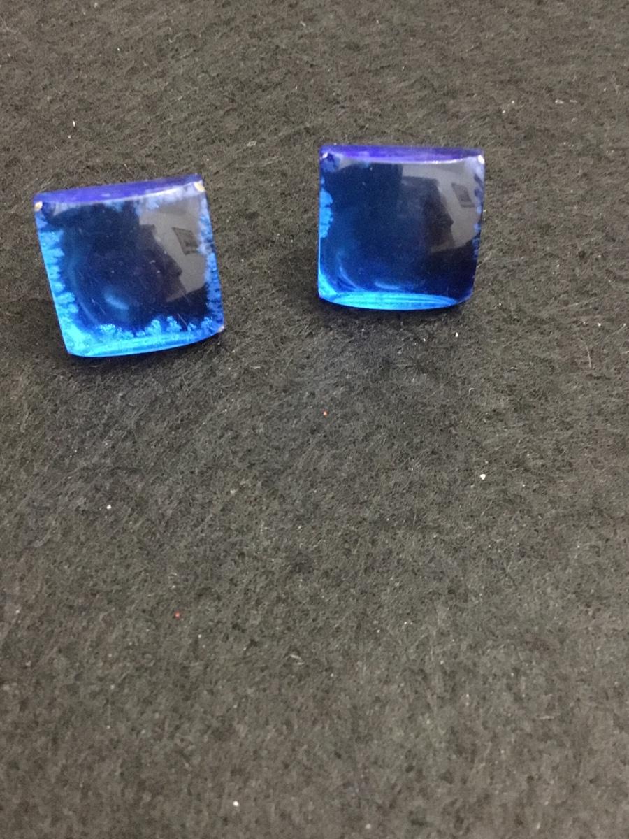 80s square mirror like blue stud earrings