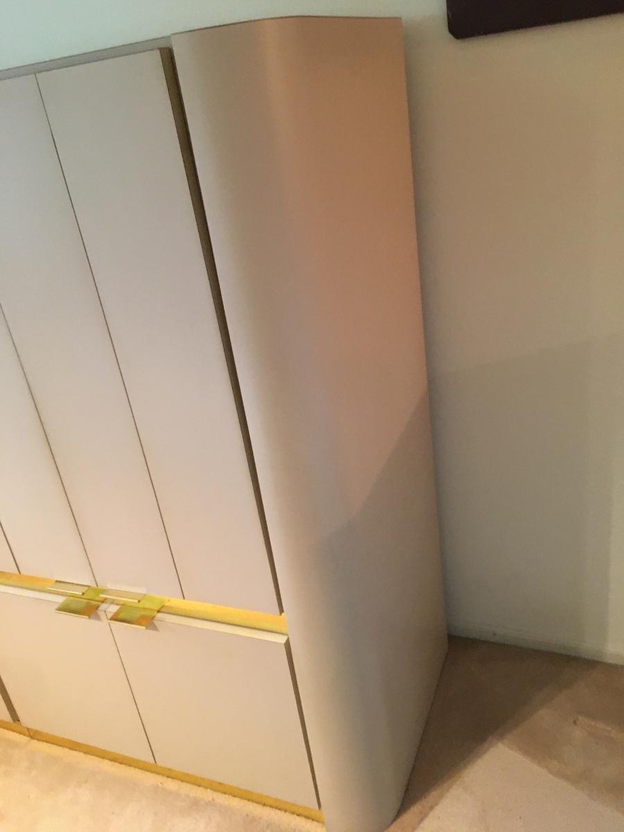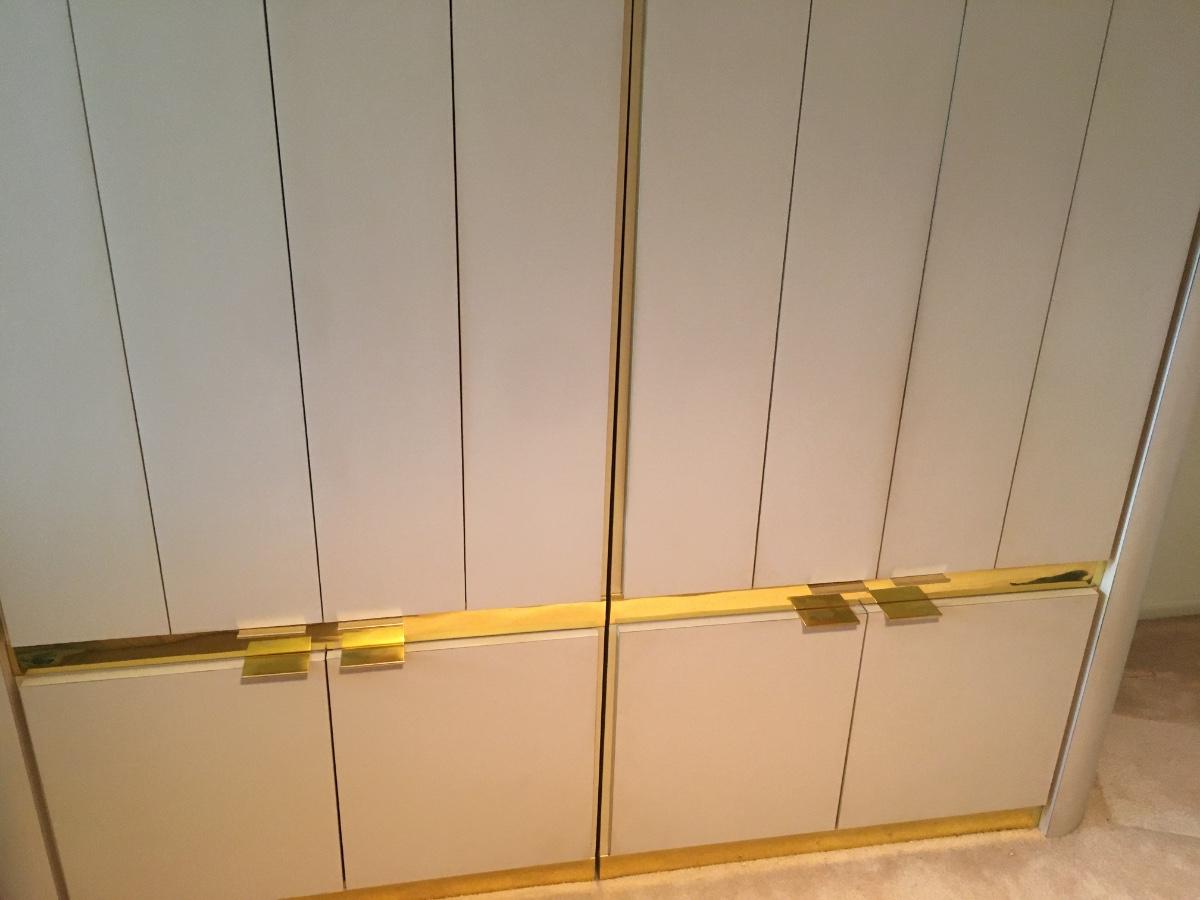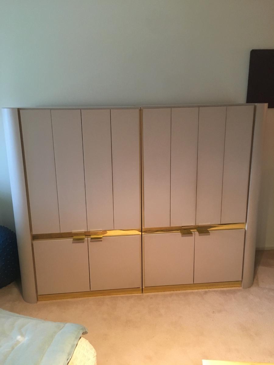 2 separate tv cabinets with top doors that fold. Bottom doors open for extra storage.