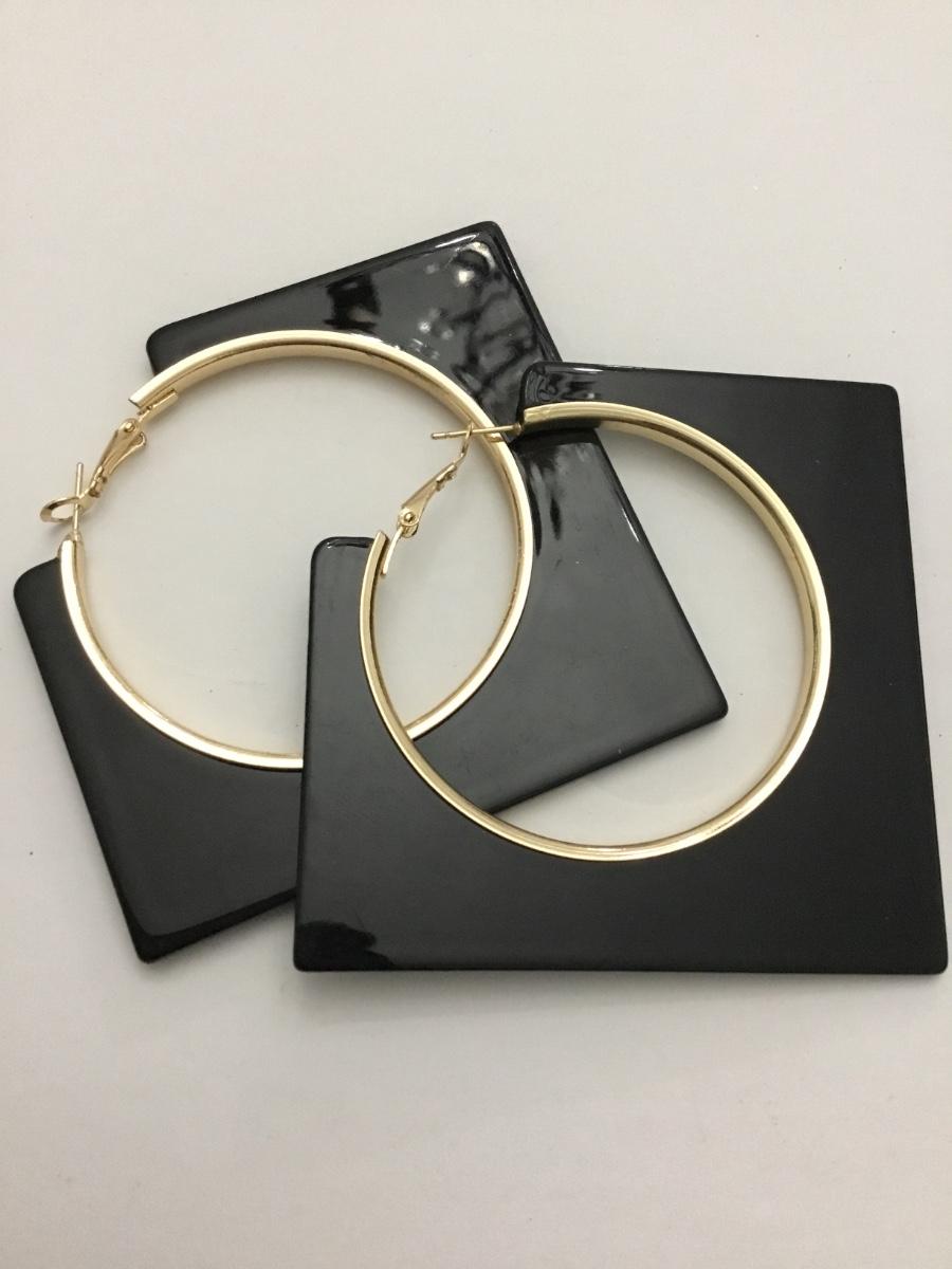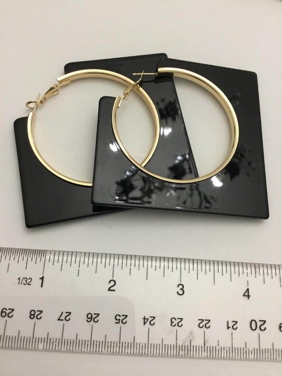 80s vintage gold tone, black square acrylic statement earrings