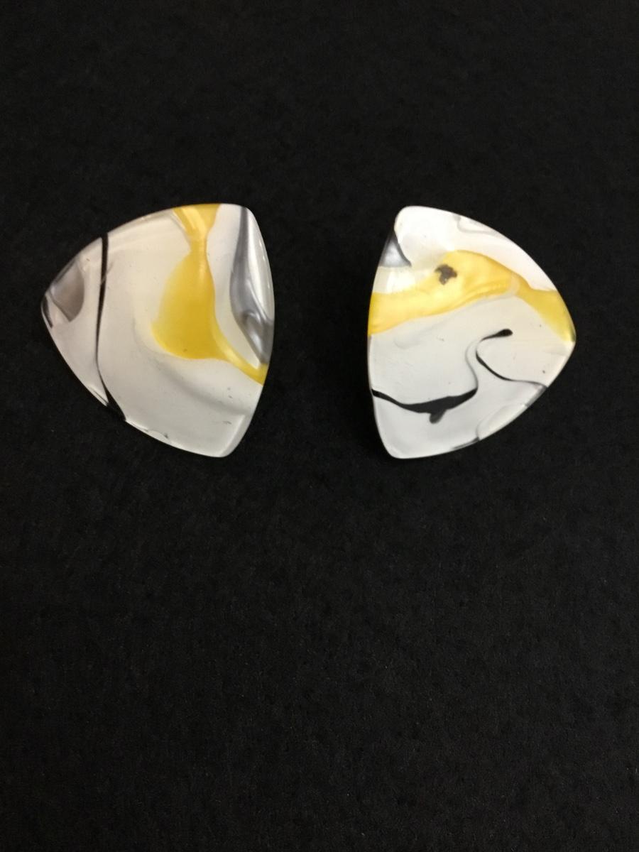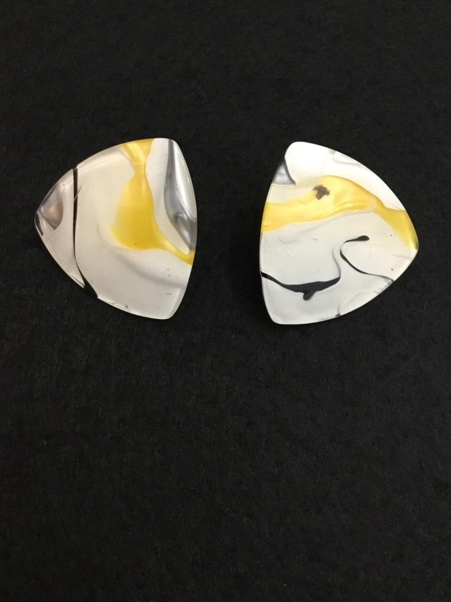 80s vintage, large, triangular shaped marbled plastic type fashion earrings