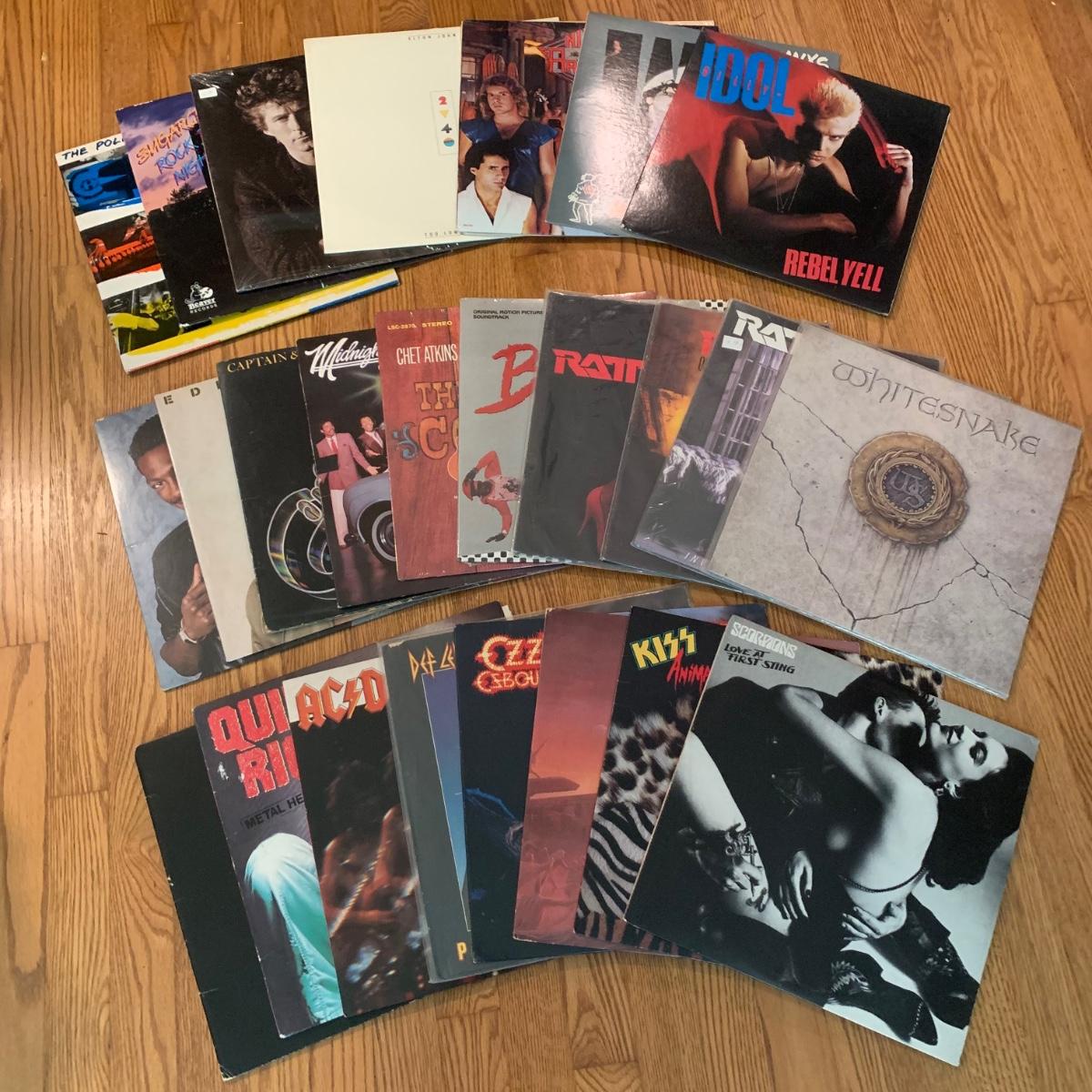 This lot includes a large variety of 80s and 90s top hits, metal, and rock. Some of these records include Kiss, AC/DC, Led Zeppelin, Def Leppard, and more. Included is a Physical Graffiti album by Led Zeppelin that appears to be a first edition. Also included is an Exit Stage Left album by Rush and a Led Zeppelin II album. These records appear to have minimal wear, if any. The other records appear to be in excellent to good shape. Shipping available.