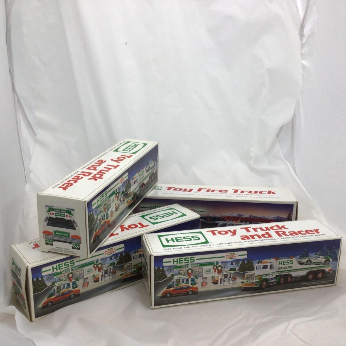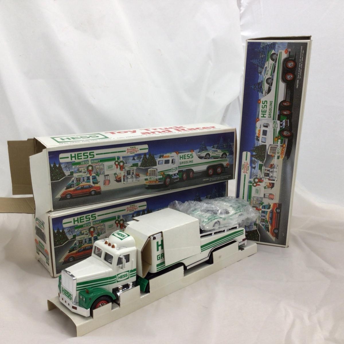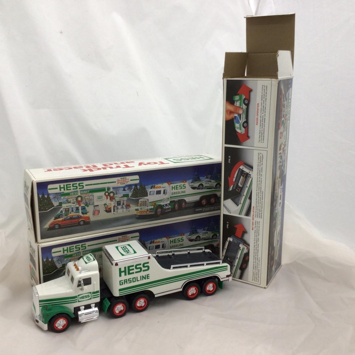 Four Hess boxes, three boxes have new with packaging Hess truck and racer sets. And one truck and racer set that is missing the racer. Please see photos for details and condition. ::: Shipping is available on this lot. If you require shipping you must let us know at the close of the auction. We will coordinate with you after the item has been won. Shipping fees will include insurance up to or exceeding the value of all items being mailed. If you have any questions regarding this lot please contact the auctioneer either via this website, by direct email or by phone. PICK UP TIMES and other important information can be found in the TERMS and DESCRIPTION of the auction. Please take a look for pertinent information. Thanks!