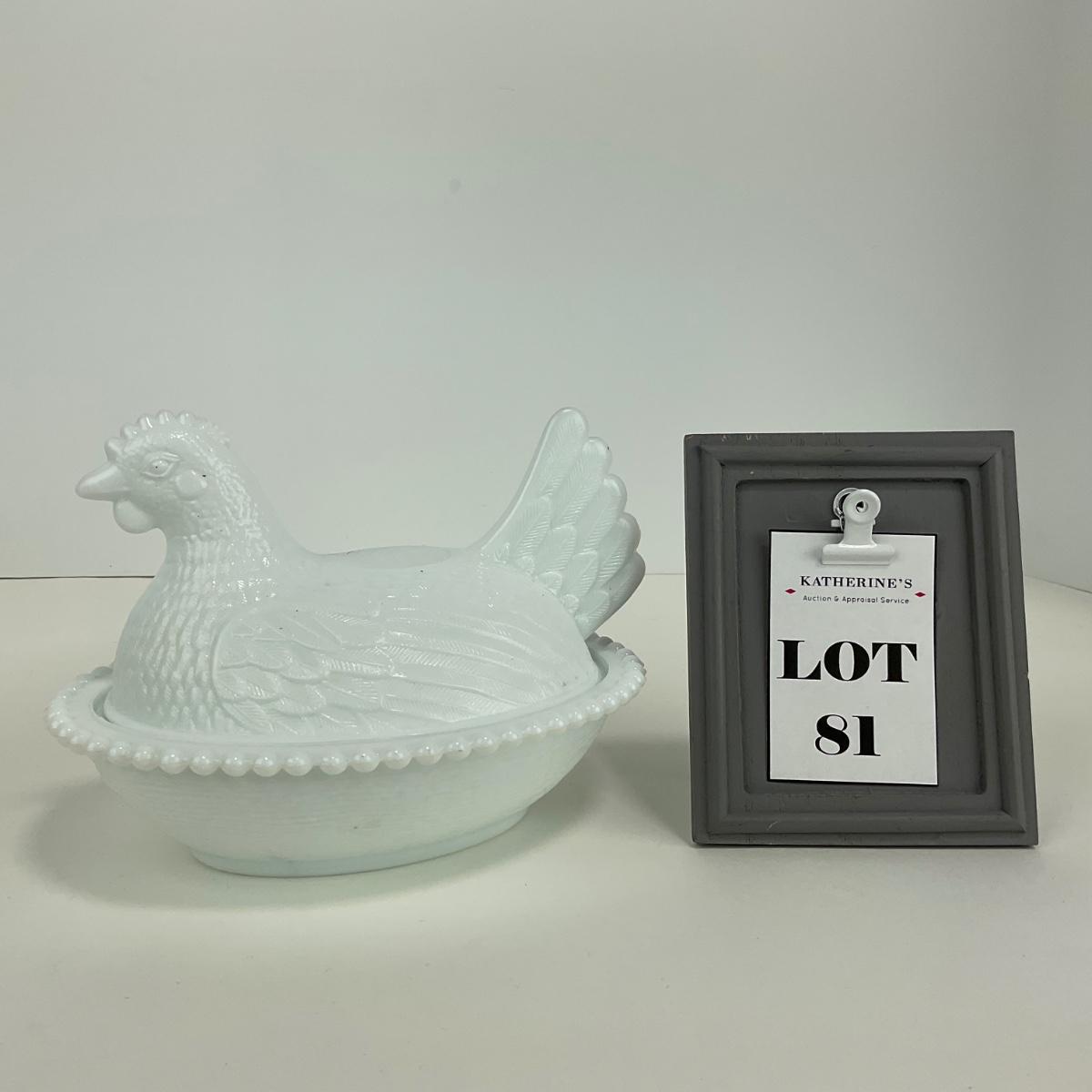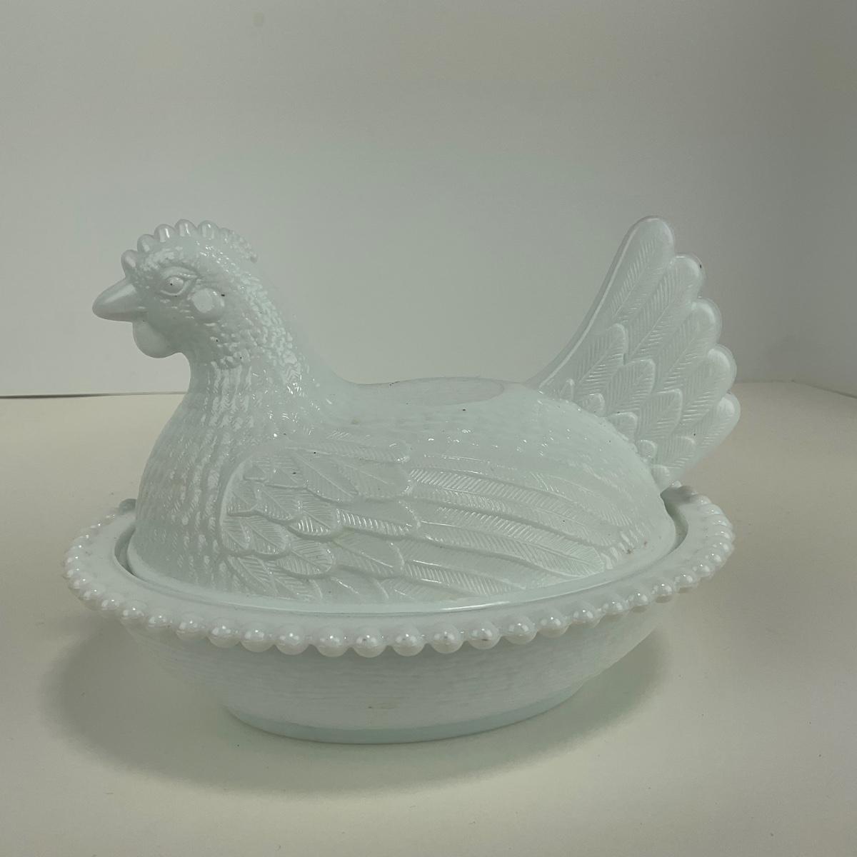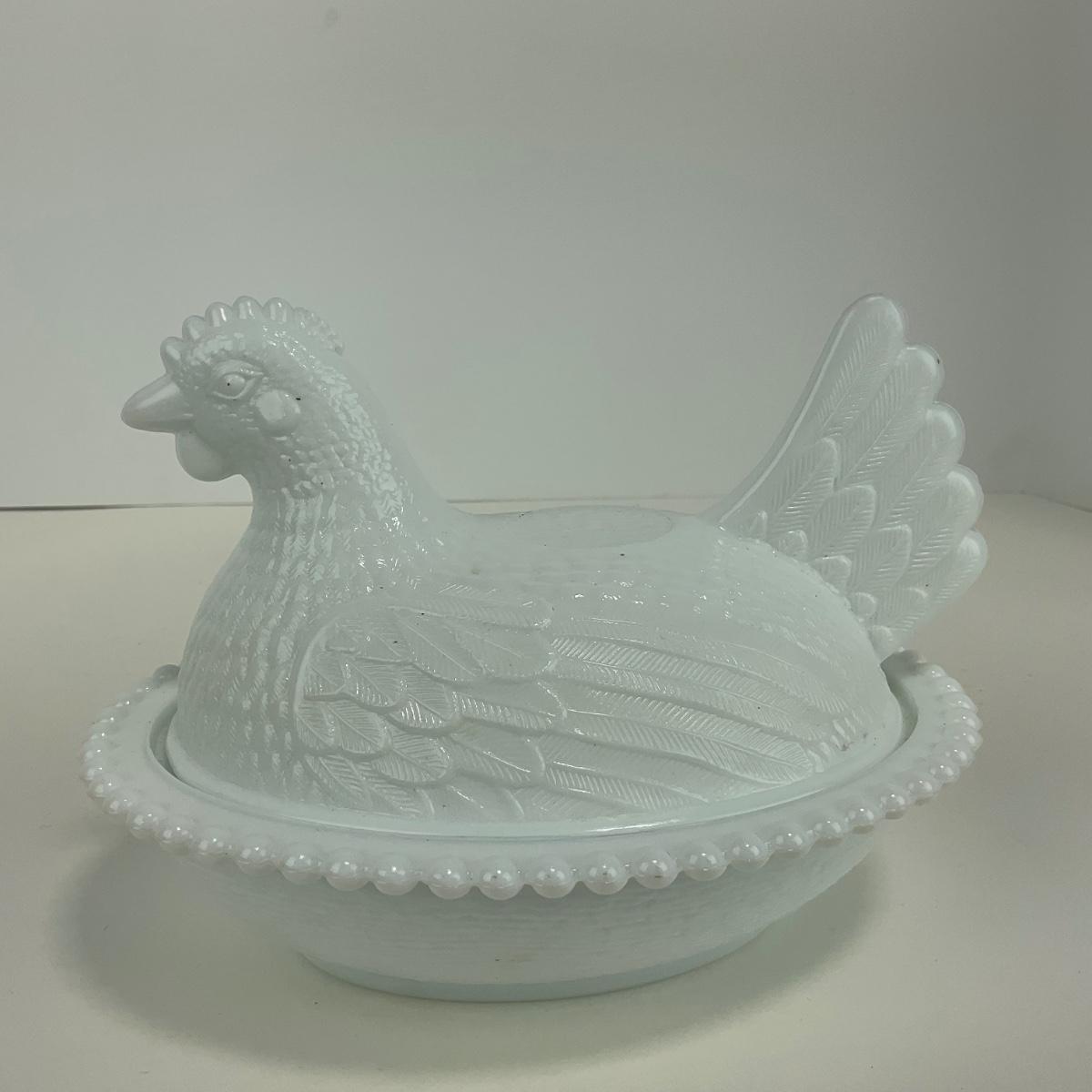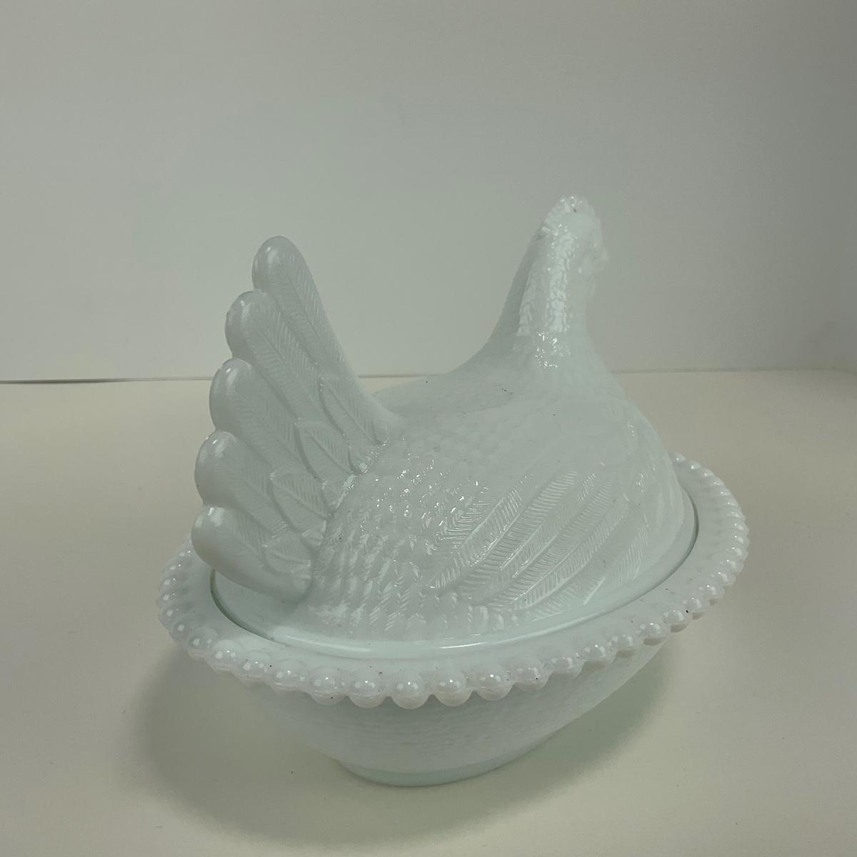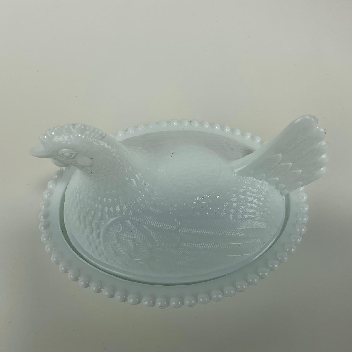 -81- INDIANA | White Milk Glass Chicken Hen On Nest | Covered Dish