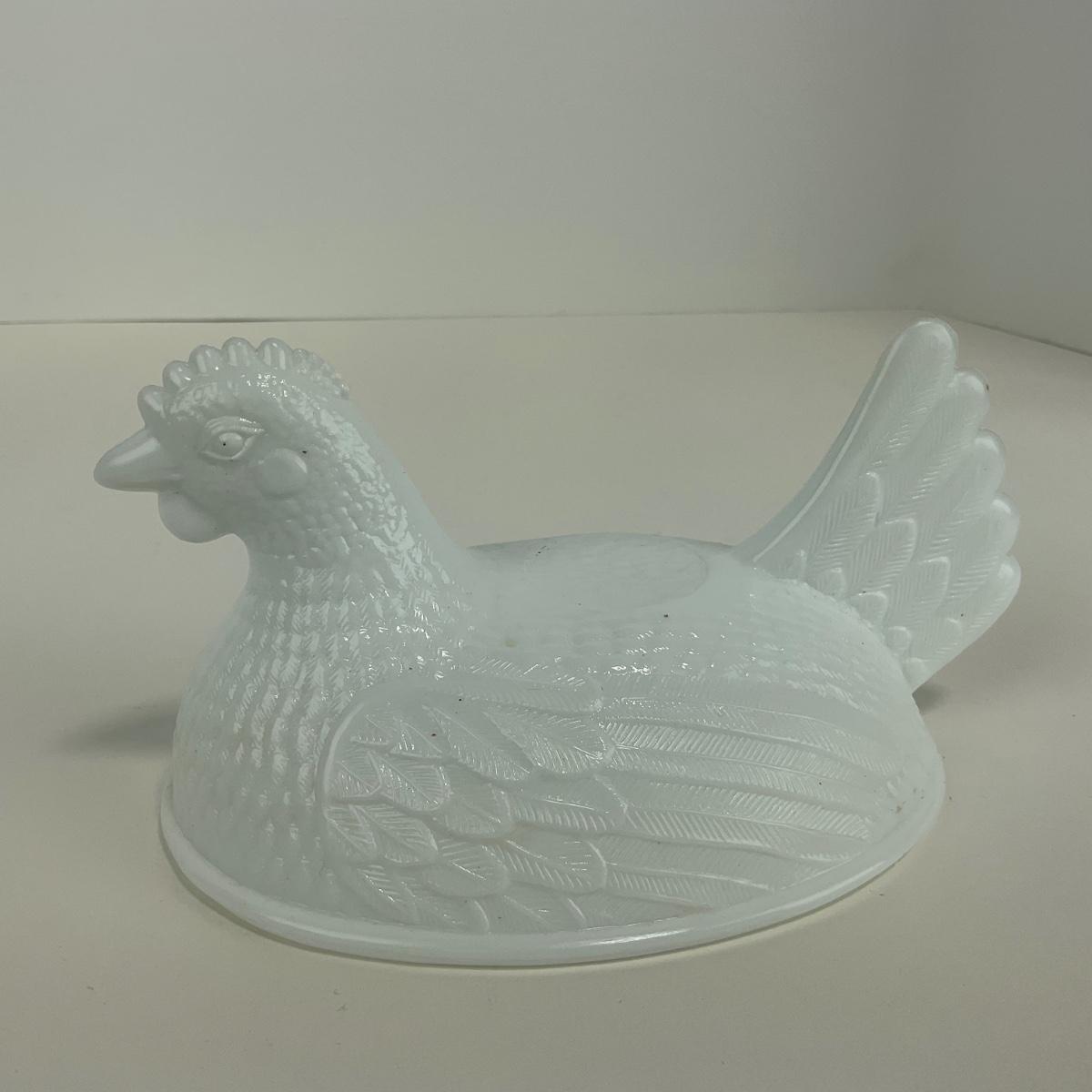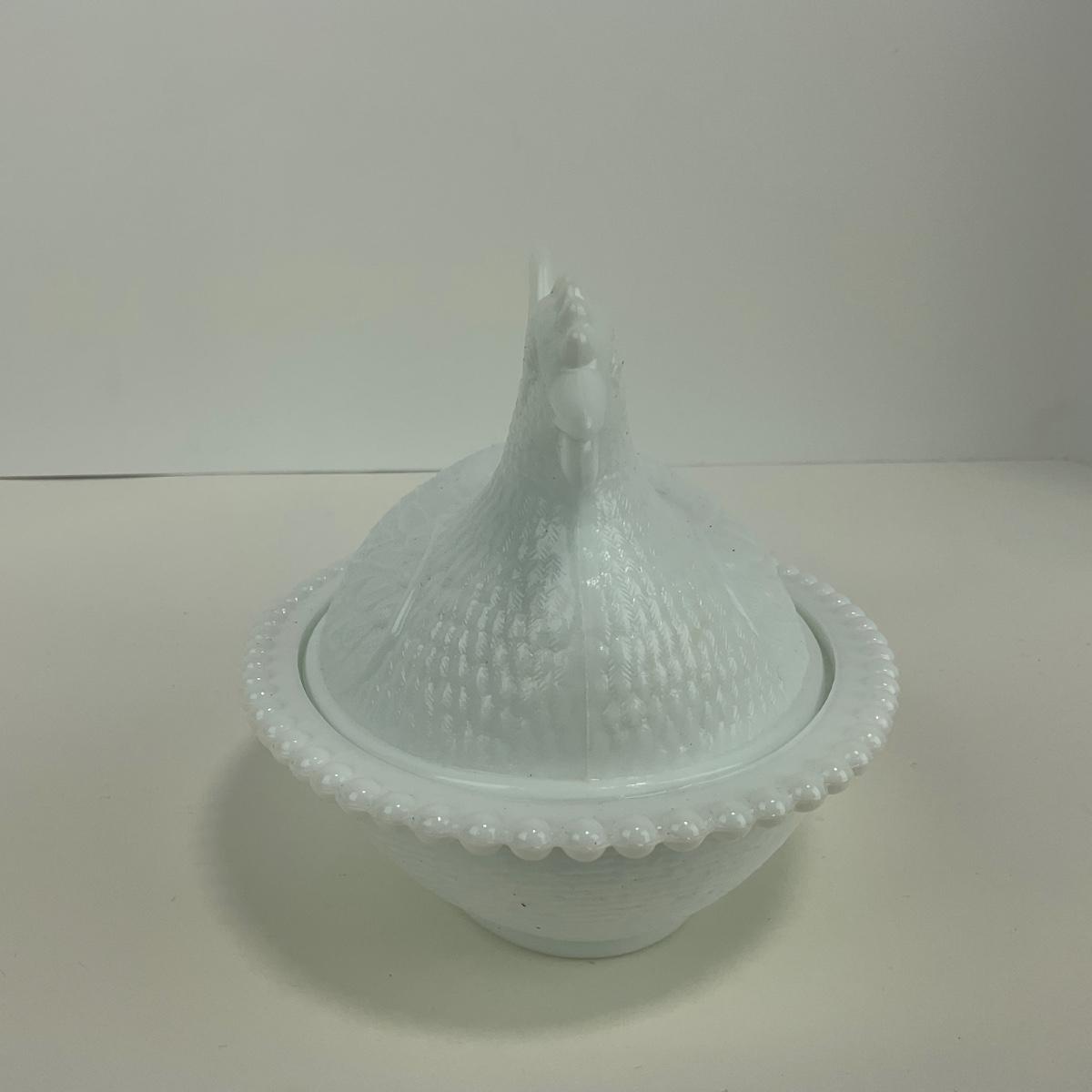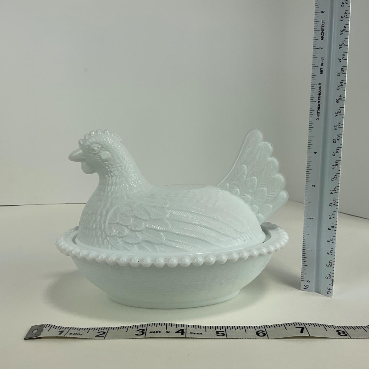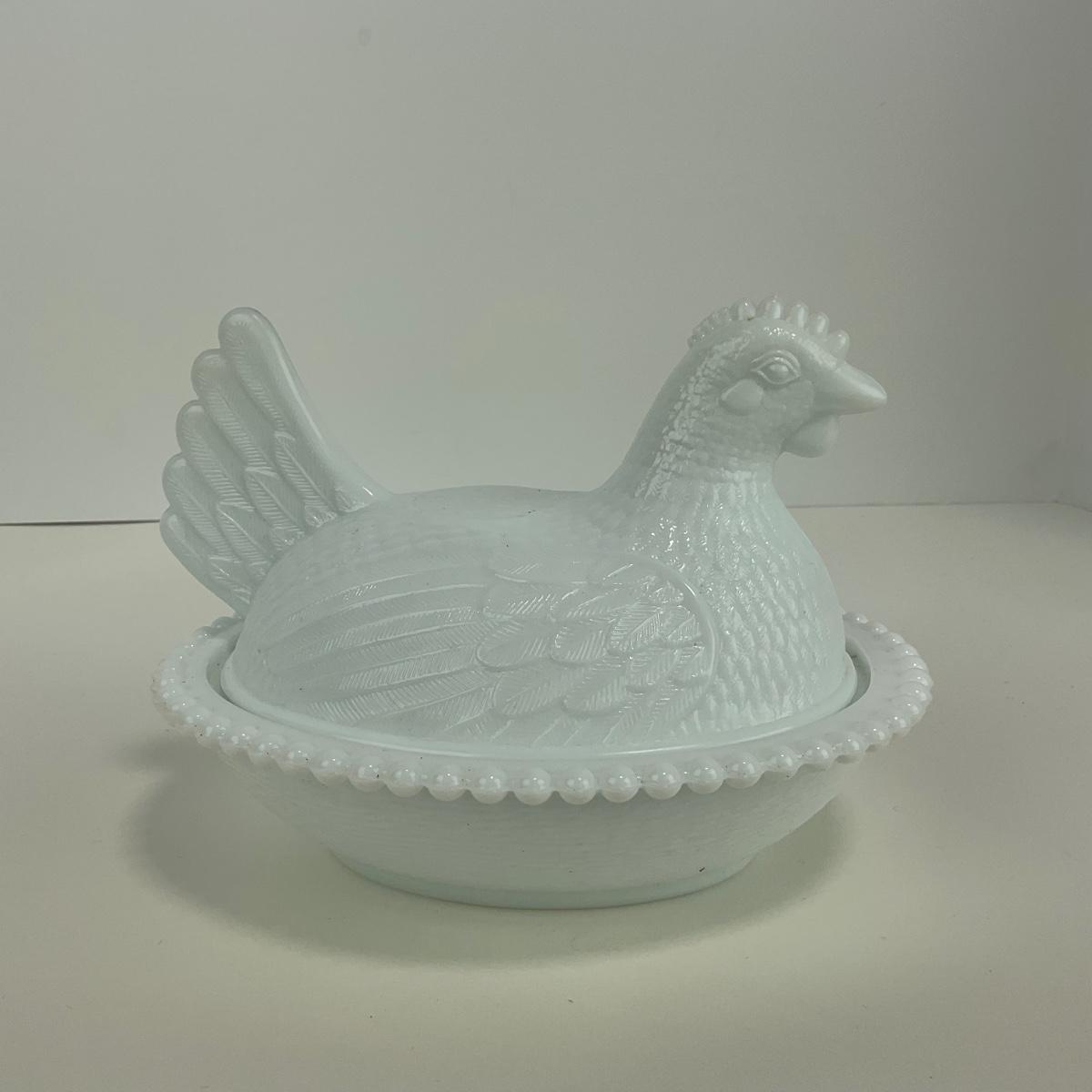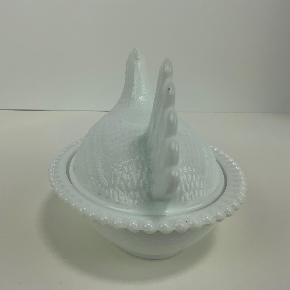 -81- INDIANA | White Milk Glass Chicken Hen On Nest | Covered Dish