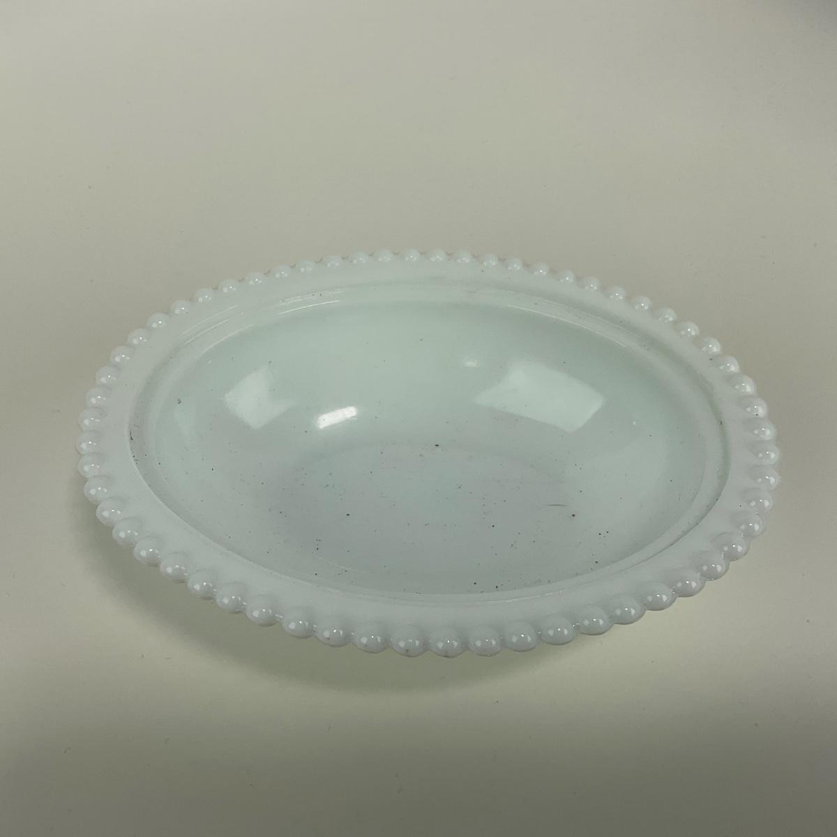 One vintage Indiana milk glass chicken hen on nest covered dish. This piece does have some scuffs, scratches, marks, or slight damage, but otherwise appears to be in great shape. Please see photos for details and condition. Any condition statement is given as a courtesy to a client, is an opinion, and should not be treated as a statement of fact. Reference to condition written, oral or within a condition report shall not be regarded as a full account of condition and may not include all defects, alterations, or restorations. Absence of a condition report does not imply a lot is flawless or lacking imperfections or damage. Katherine’s Auction & Appraisal Service shall have no responsibility for any error or omission. Returns shall not be accepted on the basis of condition. ::: Shipping is available on this lot. If you require shipping you must let us know at the close of the auction. We will coordinate with you after the item has been won. Shipping fees will include insurance up to or exceeding the value of all items being mailed. If you have any questions regarding this lot please contact the auctioneer either via this website, by direct email or by phone. PICK UP TIMES and other important information can be found in the TERMS and DESCRIPTION of the auction. Please take a look for pertinent information. Thanks!