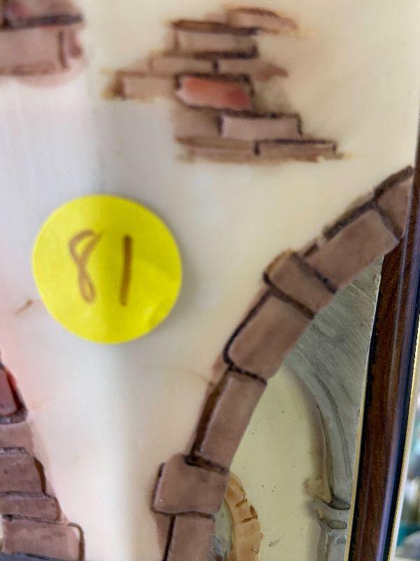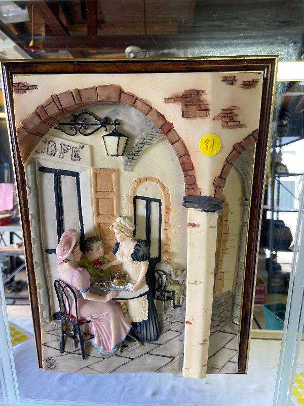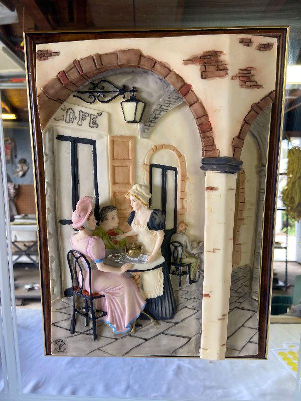 Cafe art on beautiful collectors mirror. *Please review all photos for condition and contents of lot.