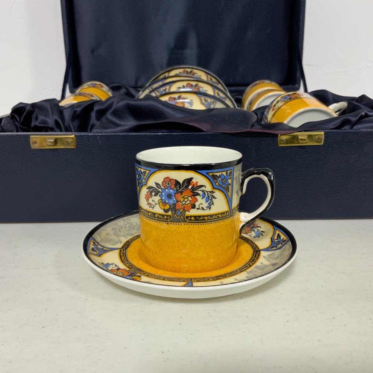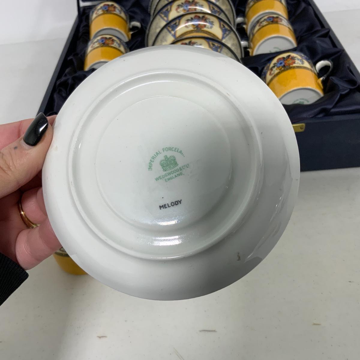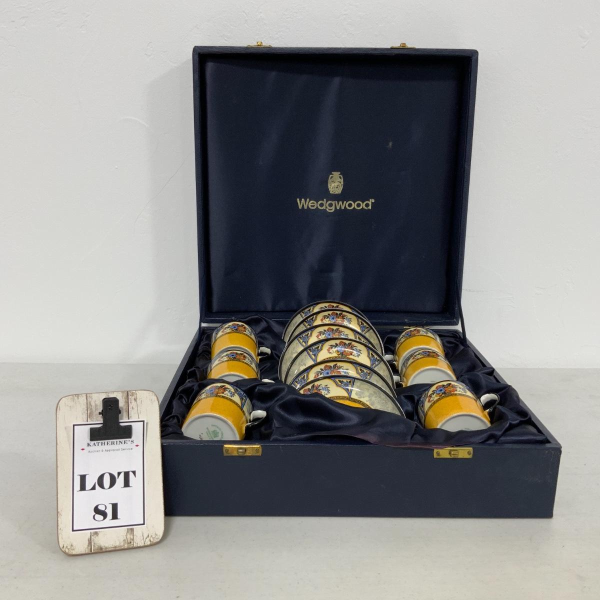 From the Estate of Peter and Alice Radovanovich: Nice Wedgwood Yellow Set in a presentation case. All cups and saucers are in good used condition. Please see photos for details and condition. ::: Shipping is NOT available on this lot. If you have any questions regarding this lot please contact the auctioneer either via this website, by direct email or by phone. PICK UP TIMES and other important information can be found in the TERMS and DESCRIPTION of the auction. Please take a look for pertinent information. Thanks!