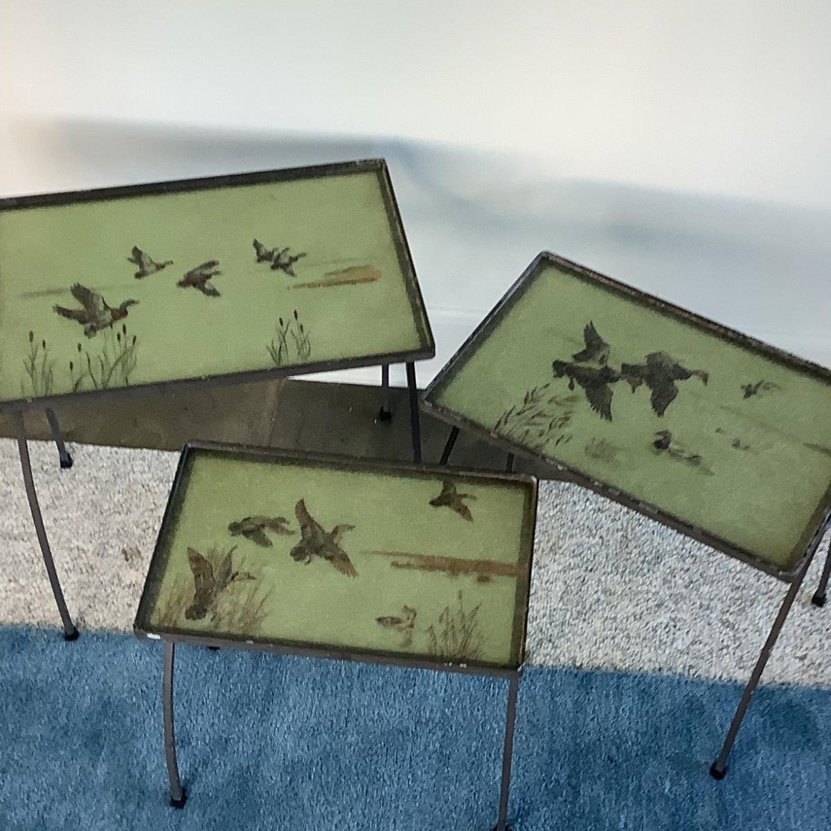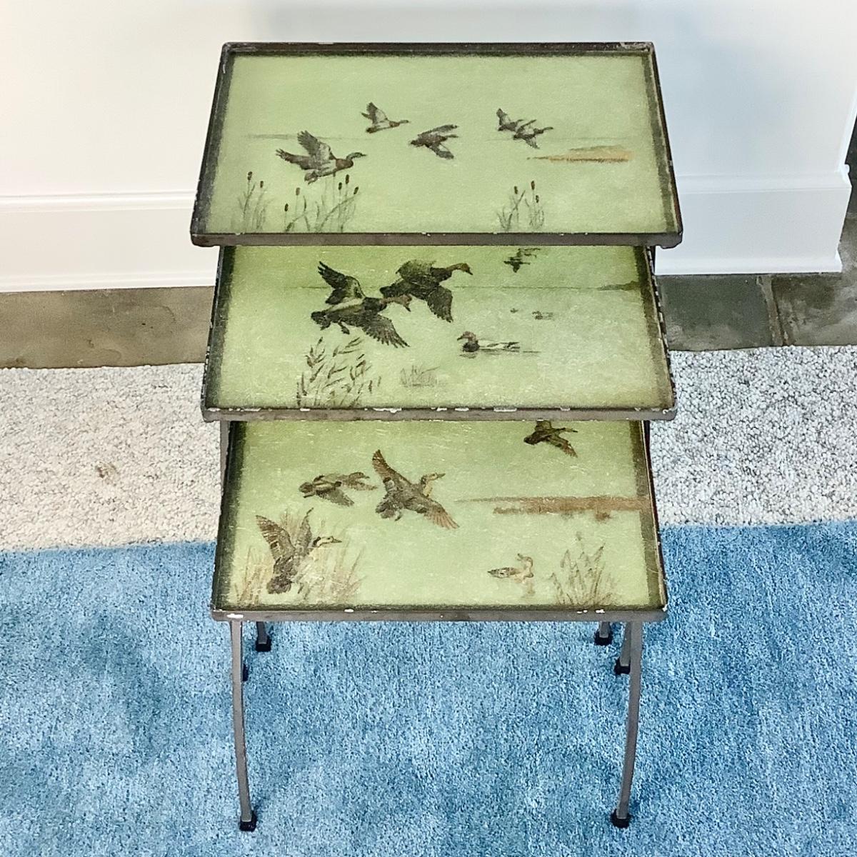 8103 Set of 3 Mid Century Metal Waterfowl Nesting Tables