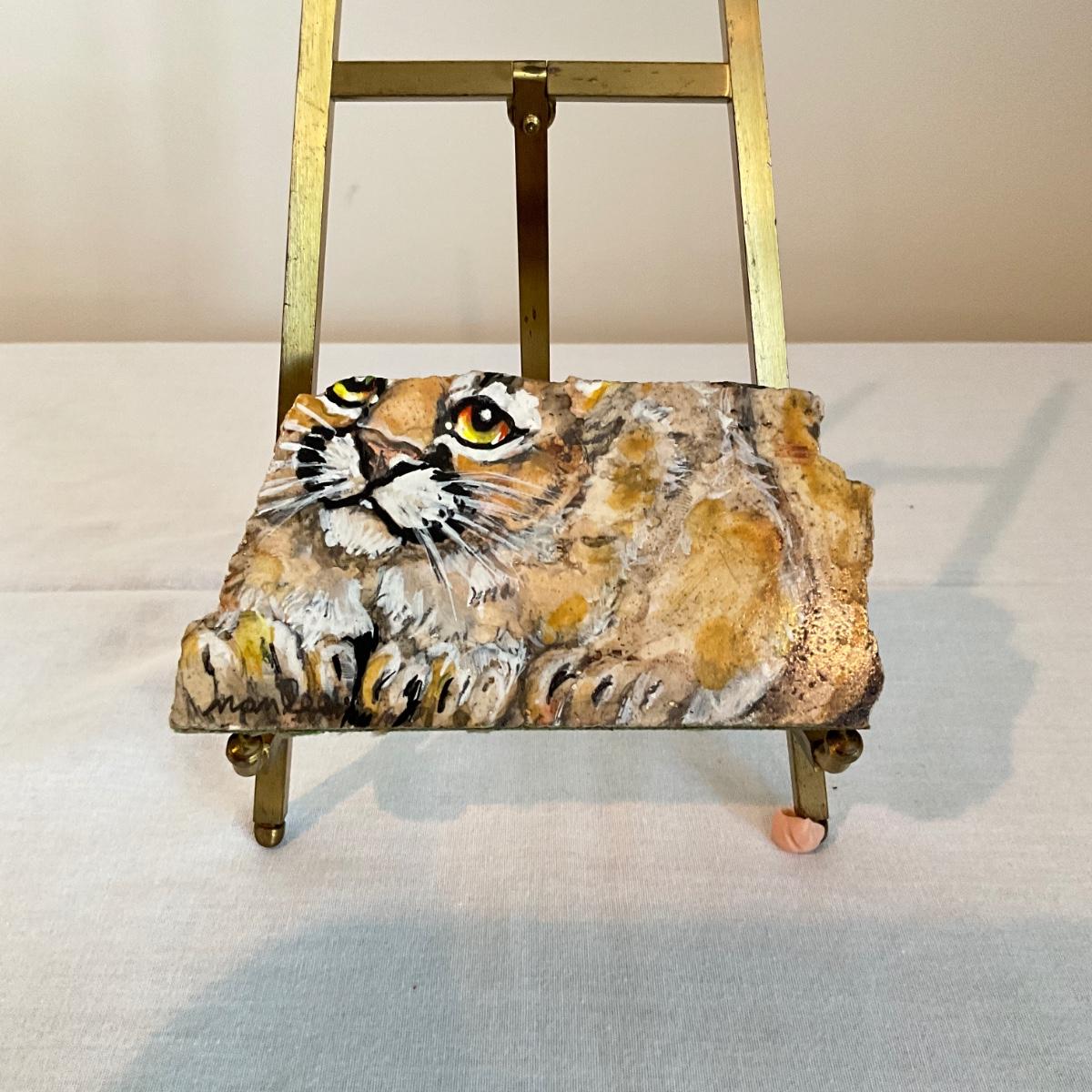 811 Cougar Cub Original Art on Tavertine Stone by Nan Lee