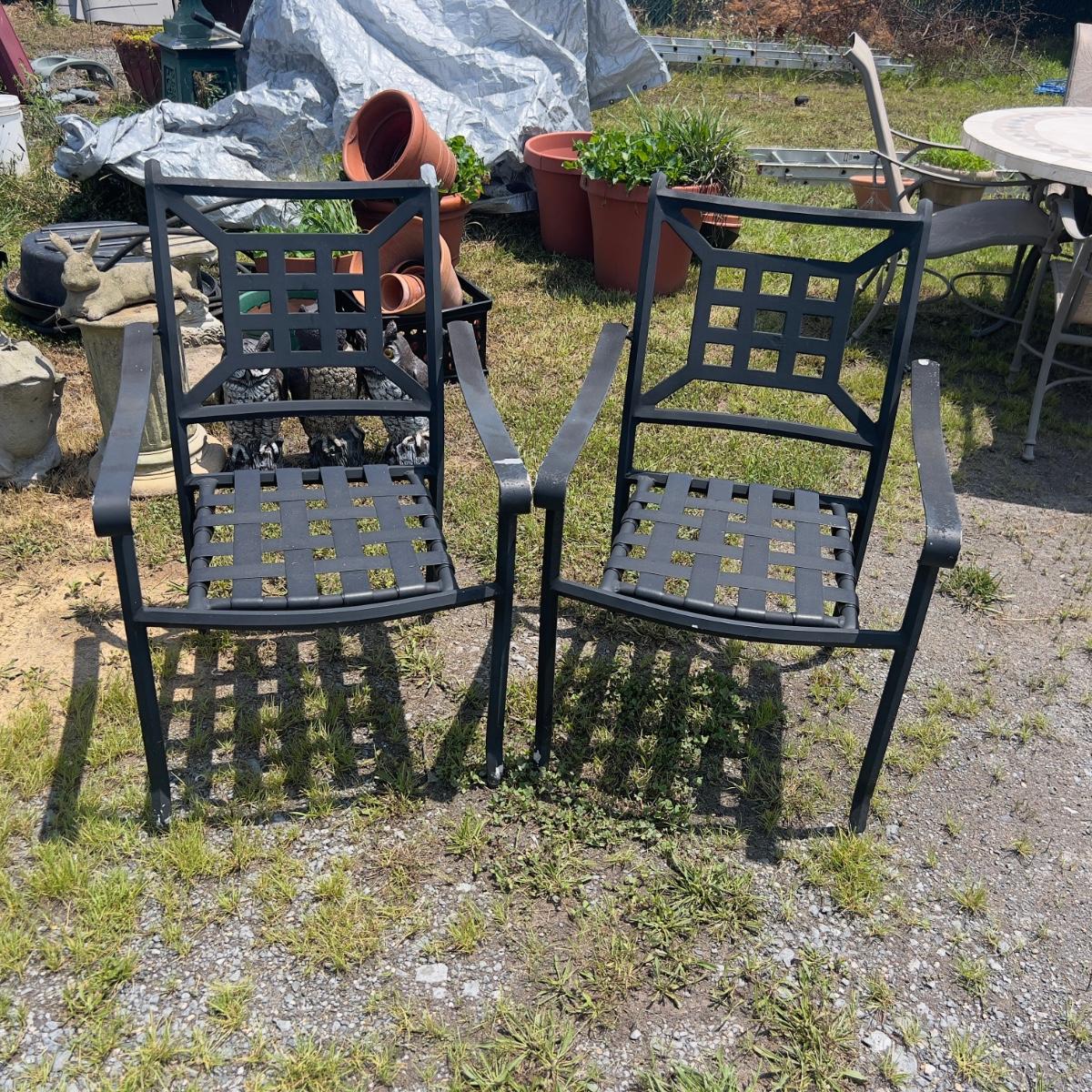 811 PAIR of Black Aluminum Outdoor Arm Chairs