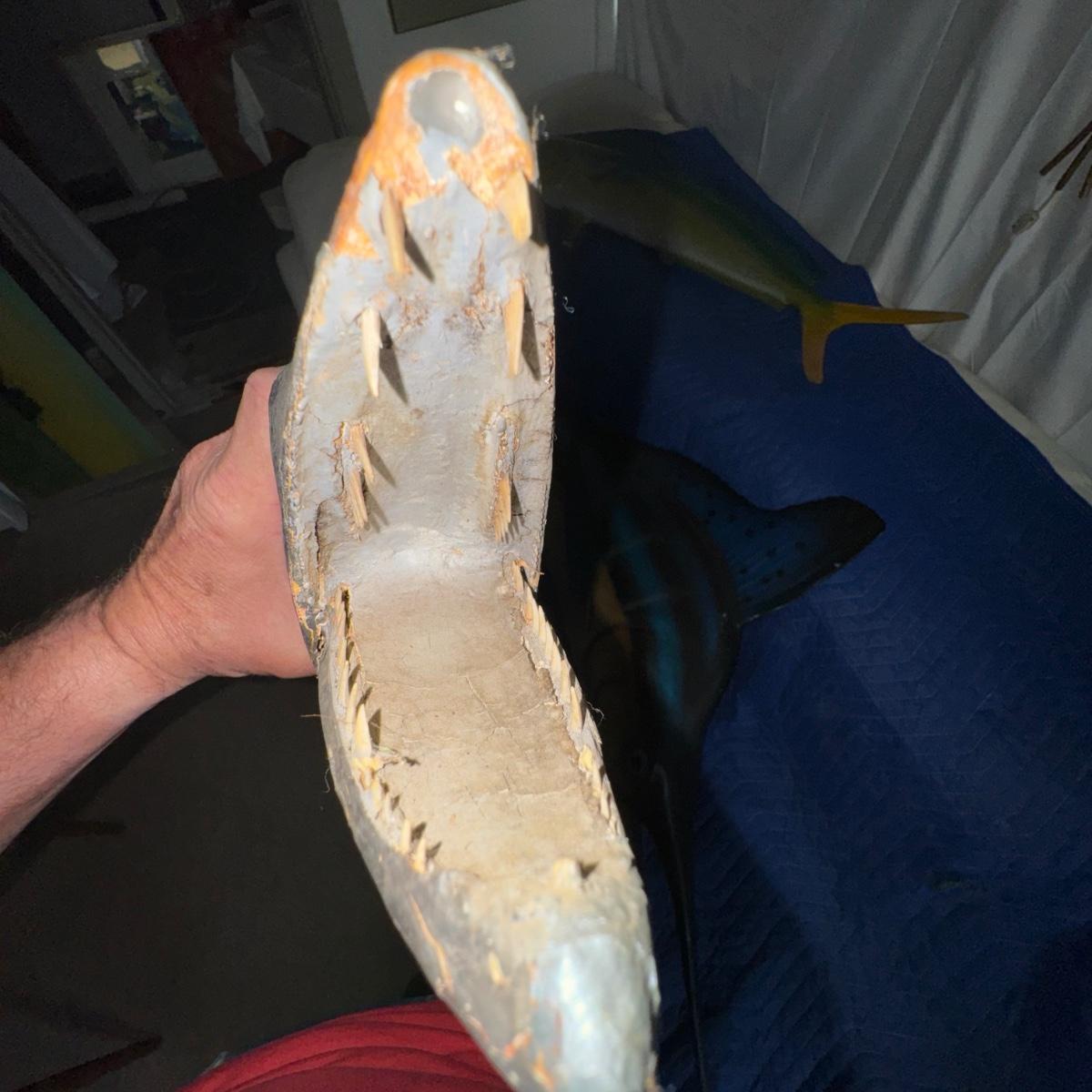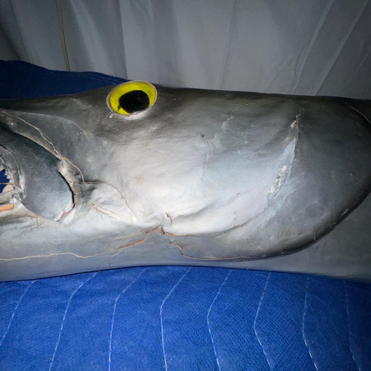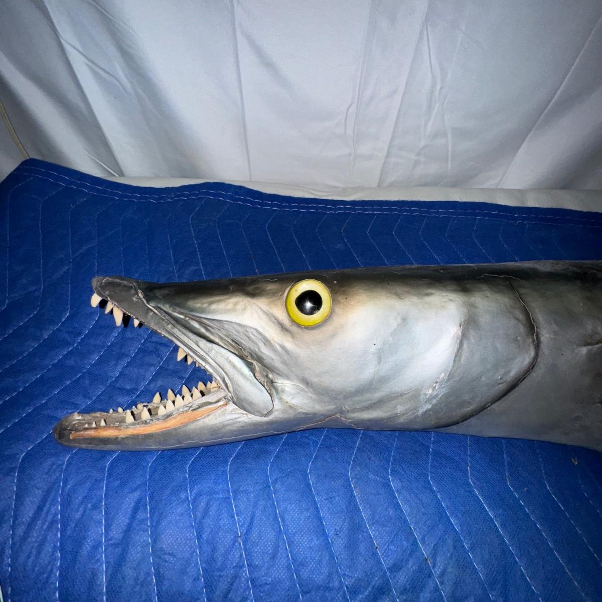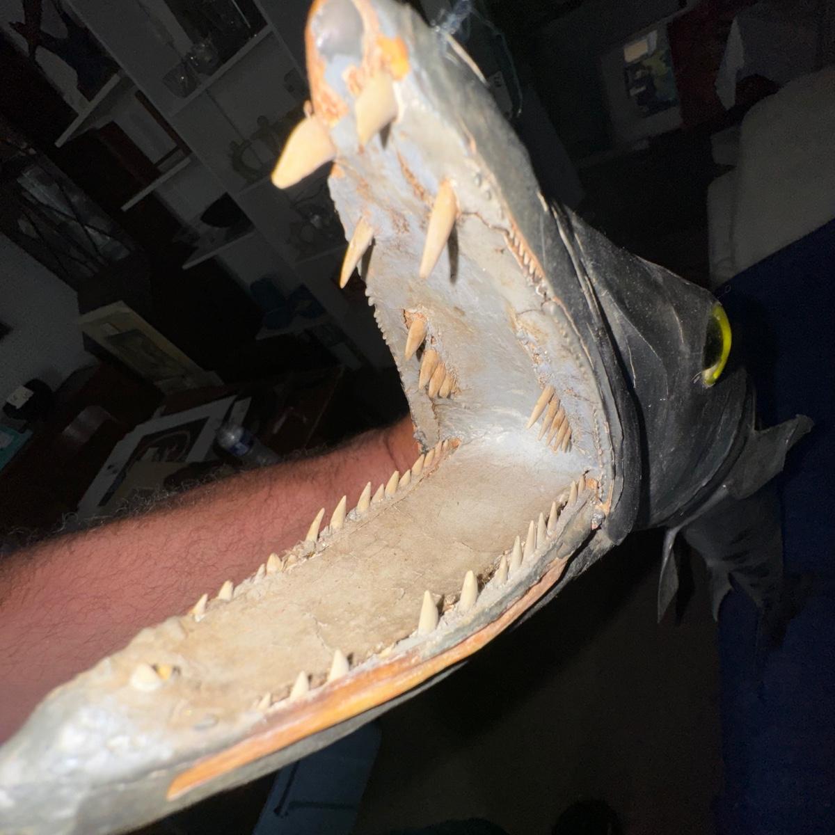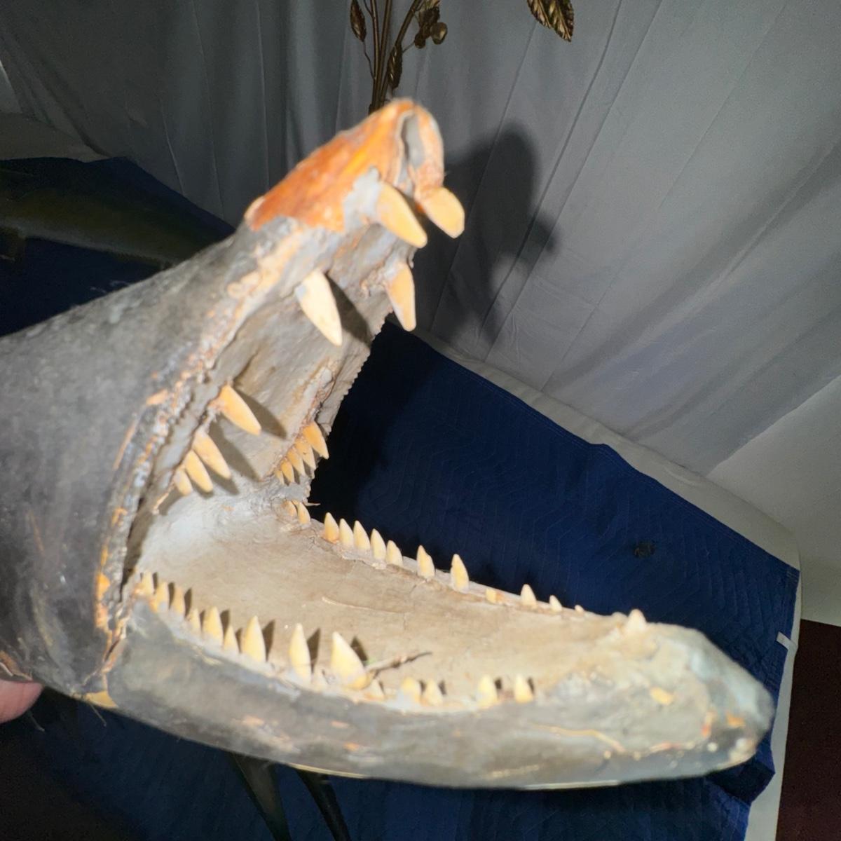 NOTE: The head, teeth and fins ATB from the original fish. The teeth appear to be real as well. Some teeth may be missing? Lower pectoral fin missing
