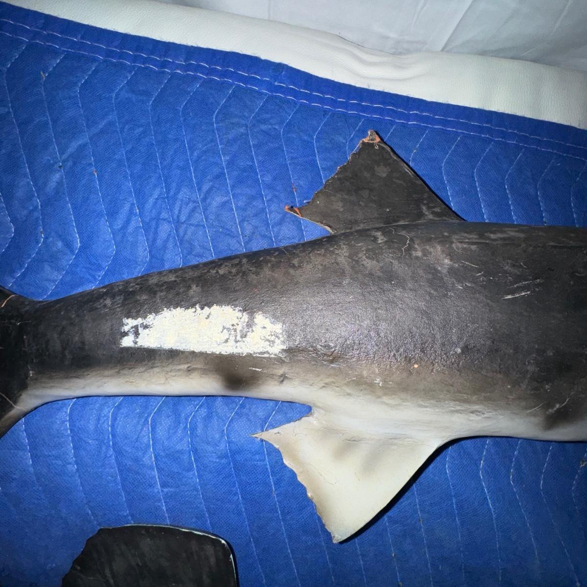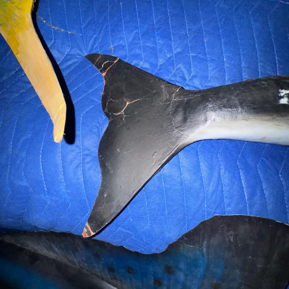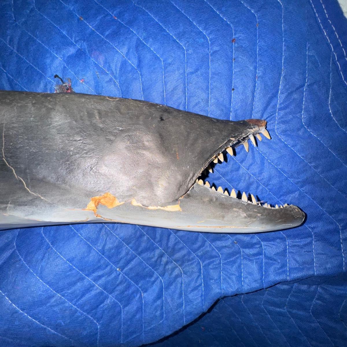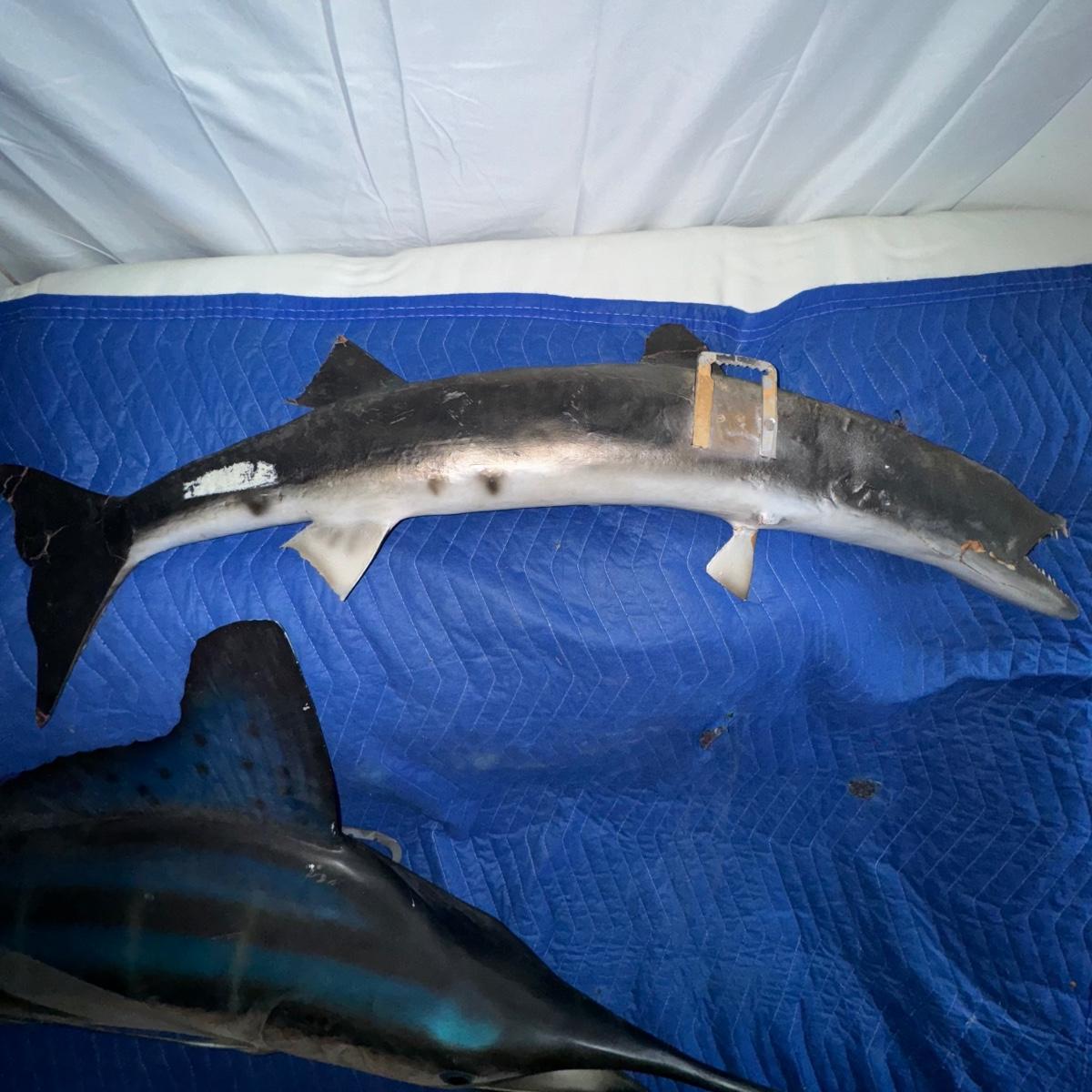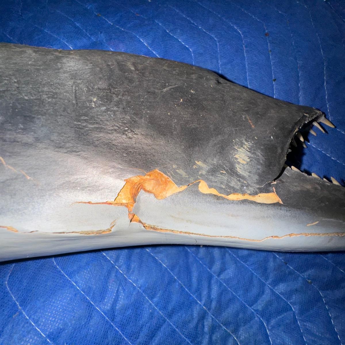 NOTE: The head, teeth and fins ATB from the original fish. The teeth appear to be real as well. Some teeth may be missing? Lower pectoral fin missing