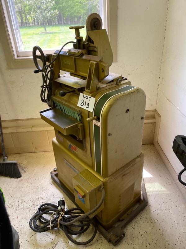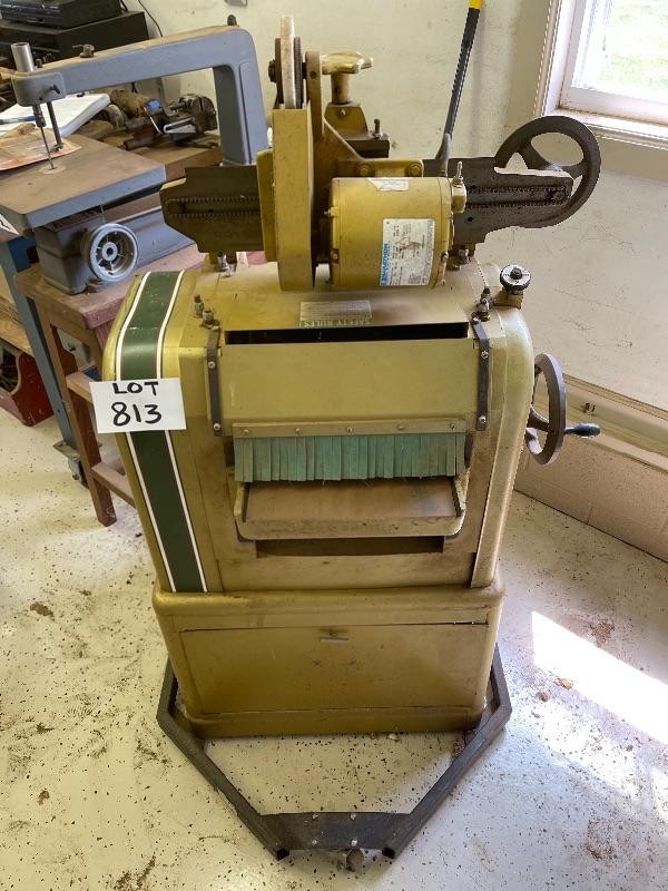 Heavy duty vintage planer mobile with add-on motorized sharpening/grinding fabricated stone wheel