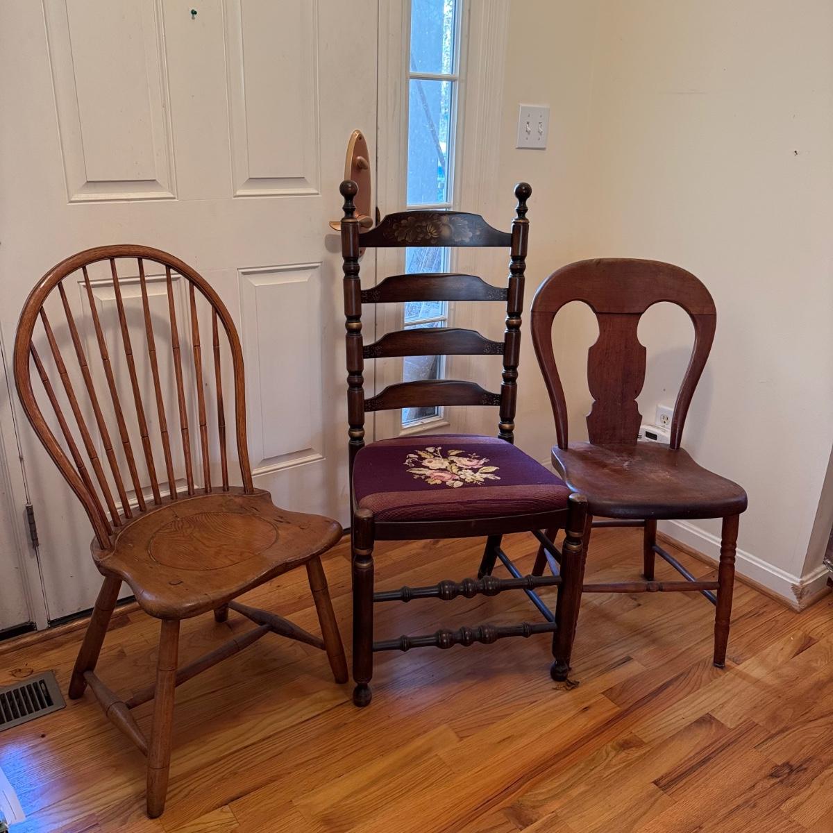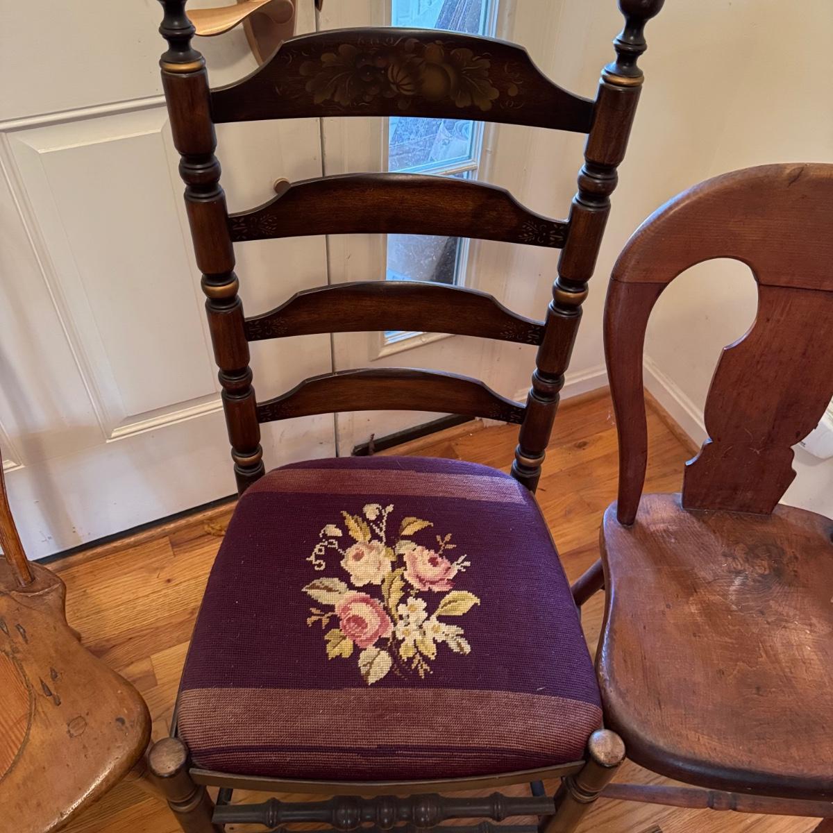 814 Vintage Hitchcock Ladderback Chair with 1 Windsor and 1 Fiddleback Chair